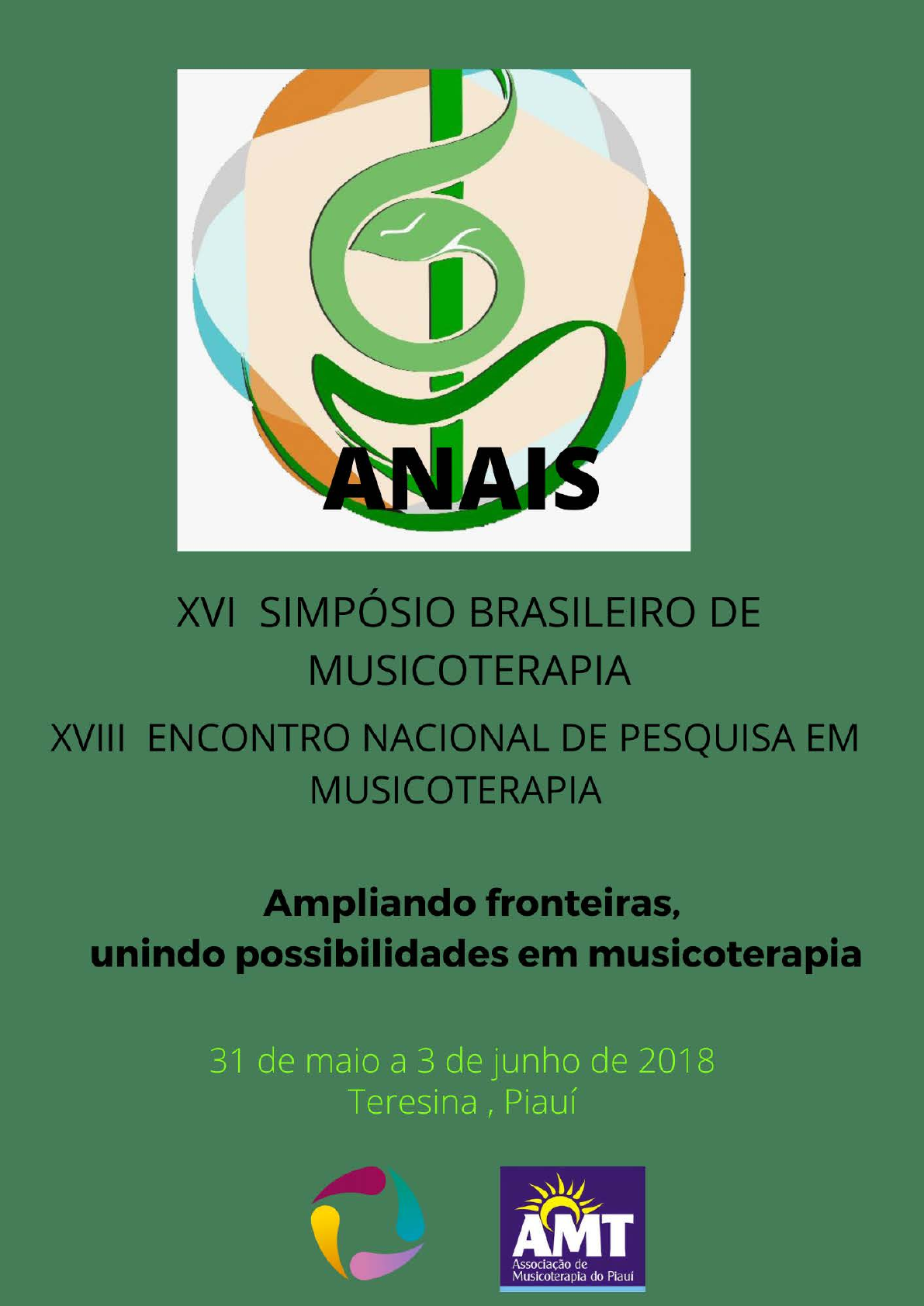 XVI SIMPOSIO BRASILERIO DE MUISCOTERAPIA XVIII ENCONTRO NACIONAL DE PESQIUISA EM MUSICOTERPIA Ampliando fronteiras Unindo possibilidades em Musicoterapia 1 de maio a 3 de junho AMTPI-UBAM Piauí Teresina 2018 Dados Internacionais de Catalogação na Publicação (CIP) Ficha Catalográfica elaborada pelo bibliotecário Henrique Araújo, CRB-1 – nº 3233 V658s Simpósio Brasileiro de Musicoterapia (16. : 2018 : Teresina, PI). Anais [recurso eletrônico] / 16º Simpósio Brasileiro de Musicoterapia e 18º Encontro Nacional de Pesquisa em Musicoterapia : ampliando fronteiras, unindo possibilidades em musicoterapia, de 31 de maio a 3 de junho de 2018. / Coordenação Geral: Alcides Valeriano de Oliveira; Comissão Organizadora: Karine da Silveira Jericó Vieira et al. – Rio de Janeiro: Musicoterapia Brasil Editora, 2022. 351 p. : Publicação Digital no formato pdf. ISBN: 978-85-94394-03-3 1. Musicoterapia. 2. Musicoterapia – maternidade. 3. Método Bonny. 4. Musicoterapia – Pesquisa interdisciplinar. 5. Musicoterapia – Mikhail Baktin. 6. Transtorno de Espectro Autista - Musicoterapia. 7. Musicoterapia Comportamental. 8. Saúde da Mulher - Musicoterapia. 9. Musicoterapia – Formação terapêutica. 10. Musicoterapia – Sistema Única de Saúde (SUS). 11. Associações de Musicoterapia. 12. Musicoterapia Hospitalar. 13. Canto – Recurso terapêutico. 13. Música – recurso terapêutico. 14. Composição Musicoterapêutica. 15. Individualized Music Therapy Assessment Profile. 16. Constituição Psíquica – sonoridade musical. 17. Musicoterapia – Violência Doméstica. 18. Musicoterapia Hospitalar Pediátrica. 19. Educação e Musicoterapia. 20. Musicoterapia e Síndrome de Silver-Russel. 21. Iniciação Científica. 22. Pesquisa Científica. 23. Simpósio. I. Oliveira, Alcides Valeriano de. II. Vieira, Karine da Silveira Jericó. III. Título. CDU 615.837 UBAM DIRETORIA Presidente Mt. Mariane N. Oselame (AMTRJ) Vice-Presidente Mt. Luciana Frias Guimarães (AMTPE) 1ª Secretária Mt Nathalya de Carvalho Avelino 2º Secretário Mt. Mauro Pereira Amoroso Anastácio Júnior (APEMESP) 1º Tesoureiro Mt Marcello Santos 2ª Tesoureira Mt Alessandra Lobato (AMTPA) AMT PIAUI DIRETORIA Presidente: Alcides Valeriano de Oliveira Vice-presidente: Karine da Silveira Jericó Vieira Secretaria: Rejane Batista e Silva Tesouraria: Simone Maria da Cruz Assunção Conselho Consultivo Olga Matias Marques Cavalcante Gustavo Lima Sales Comissão de Ética Nydia Cabral Coutinho do Rêgo Monteiro Patrícia Carvalho Moreira XIV Simpósio Brasileiro de Musicoterapia XVIII Encontro nacional de Pesquisa em Musicoterapia Coordenação Geral Mt. Alcides Valeriano de Oliveira (PI) Comissão científica Profa. Dra. Lia Rejane Mendes Barcellos (AMTRJ) Profa. Esp. Nydia Cabral Coutinho do Rêgo Monteiro (PI) Profa. Ms. Eliamar Fleury (GO) Prof. Dr. Renato Tocantins Sampaio (MG) Prof. Dr. José Davison da Silva Jr. (PE) Profa Ms. Camila Acosta Gonçalves (PR) Profa. Ms. Patrícia Carvalho Moreira (PI) Comissão Organizadora (AMTPI): Mt. Karine da Silveira Jericó Vieira Mt. Rejane Batista e Silva Mt. Olga Matias Marques Cavalcante Mt. Patrícia Carvalho Moreia Mt. Simone Maria da Cruz Assunção Mt. Kécia Silva Coutinho Mt. Gilson Fernandes Pereira Sousa Mt. Claudia César Ferraz de Paiva Mt. Nydia Cabral Coutinho do Rego Monterio Mt. Luis de Sousa Santos Mt. Denison D´Johnson Alves da Silva Mt. Danison D´Johnson Alves da Silva Mt. Naylo Cabral Coutinho Neto Mt. Luciana Saraiva e Silva Mt. Pablo de Pádua Leão e Silva Estudantes de Musicoterapia colaboradores (CENSUPEG) Edelane Carvalho Gomes Silvana Carla Nunes Nóbrega Jéssyca Cristina Gomes Nunes Ionara Illane da Conceição Monte Cavalcante Robertha de Melo Brandão Ronaldo Campos Chaves Tainá Ellen Pereira Santos Carla Karine de Jesus Noleto Virgínia Maria Magalhães de Jseus Noleto Doralice da Silva Veras Elias Alves Meneses Neto Captação de Recursos Silmara Castro dos Santos de Oliveira Comunicação e Marketing Pedro Júlio Santos de Oliveira Thalyta Cristine Arrais Furtado Araújo Gonçalves Confecção dos Anais Mt Camila Gonçãves Mt Nydia Cabral Mt Noemi Ansay XVI Simpósio Brasileiro de Musicoterapia XVIII Encontro Nacional de Pesquisa em Musicoterapia 31 de maio a 03 de junho de 2018 – Teresina, Piauí "Ampliando Fronteiras, Unindo Possibilidades em Musicoterapia" _______________________________________________________________________________________________ PROGRAMAÇÃO GERAL DO XVI SIMPÓSIO BRASILEIRO DE MUSICOTERAPIA QUINTA-FEIRA - 31/05 08:00-12:00 Credenciamento Local: Hall da Escola de Música Possidônio Queiroz 08:00-13:00 Minicurso Capacitação em Gestão de Entidades sem fins lucrativos - Formador: Consultor do SEBRAE-PI Gerenciamento de Mídias e Redes Sociais - Formadores: Pedro Júlio Santos e Thalyta Arrais Local: Sala José de Arimatéia 09:00-12:00 Minicursos Musicoterapia Neurológica - Formadora: Camila Pfeiffer (ARG) Local: Auditório da Escola de Música Percussão e Musicoterapia: os efeitos dos ritmos brasileiros na reabilitação - Formador: Gilson Fernandes Local: Auditório Mestre Dezinho Musicoterapia na reabilitação da fala e da linguagem - Formadora: Maria Helena Rockenbach Local: Sala José Rodrigues Memórias autobiográficas e música em idosos: interfaces entre musicoterapia e cognição musical - Formador: José Davison da Silva Júnior Local: Sala José Nunes 14:00-17:30 Credenciamento Local: Hall da Escola de Música 14:30-17:30 Minicursos Atividades Musicais como recursos para ampliar fronteiras e possibilidades - Formadora: Rita Dultra Local: Auditório da Escola de Música XVI Simpósio Brasileiro de Musicoterapia XVIII Encontro Nacional de Pesquisa em Musicoterapia 31 de maio a 03 de junho de 2018 – Teresina, Piauí "Ampliando Fronteiras, Unindo Possibilidades em Musicoterapia" _______________________________________________________________________________________________ Musicoterapia Nordo