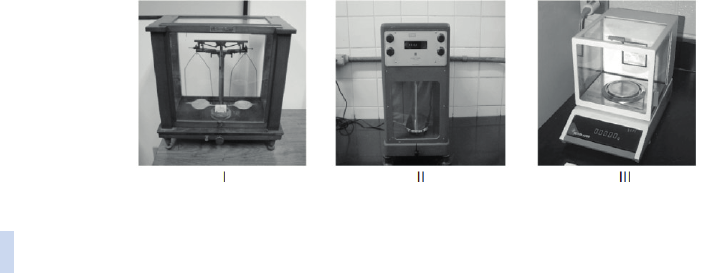 U1 - Princípios fundamentais da análise química 15 Outra prática importante dentro de um laboratório é garantir que todas as etapas e os resultados de uma determinada análise sejam anotados de forma apropriada. Isso possibilita que outras pessoas possam repetir o experimento, além de garantir que nenhum resultado seja perdido ou descartado indevidamente. Medidas de massa Certamente, a principal ferramenta analítica de medida utilizada em laboratórios de química é a balança analítica, já que dela depende a grande maioria dos resultados analíticos. As balanças analíticas são utilizadas na determinação de massas e possuem capacidade máxima que varia de 1 g a alguns quilogramas. Balanças analíticas modernas podem chegar à precisão de leitura da ordem de 0,1 µg. As primeiras balanças continham dois pratos e um braço no centro, sendo que em um prato era colocado o objeto a ser medido e no outro padrões suficientes para reposicionar o braço em sua posição original (Figura 1.2 – I). Em 1946, surgiu a balança analítica mecânica de prato único que rapidamente substituiu a primeira (Figura 1.2 – II). Com o advento da eletrônica, os sistemas de medição foram aperfeiçoados e surgiu então a balança analítica eletrônica (Figura 1.2 – III). Fonte: adaptada de Afonso e Silva (2004, p. 1027). Disponível em: . Acesso em: 17 out. 2017. Figura 1.2 | A evolução das balanças analíticas: I: uma balança analítica de dois pratos; II: balança analítica de um prato; III: balança analítica eletrônica Na balança analítica eletrônica, a operação é realizada em uma única etapa e permite a leitura da massa do objeto em um visor digital. Essas balanças possuem o recurso da tara, que permite eliminar a massa do recipiente utilizado para a medida da massa. No Quadro 1.1, temos os principais tipos de balanças analíticas e suas principais características. Além dessas, existem também as semianalíticas, nas quais a precisão fica em torno de 1 mg.