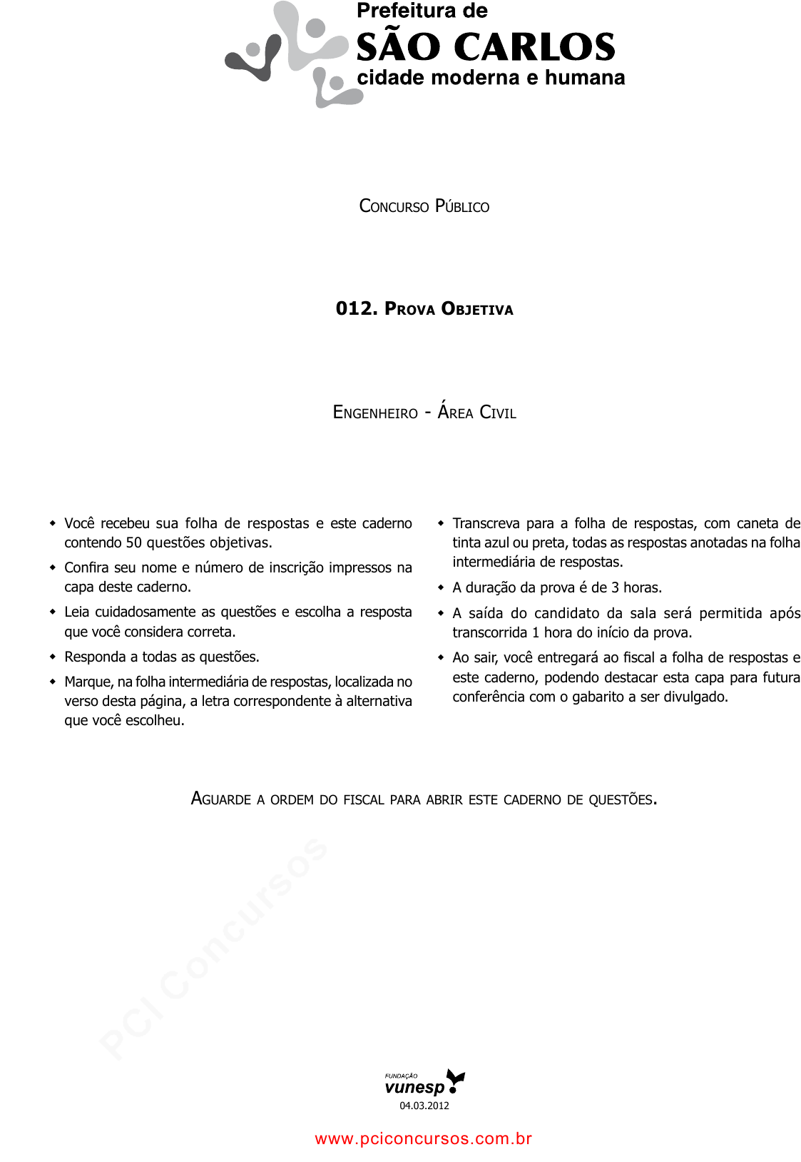pcimarkpci MjgwNDowODY4OmQwNDc6MWQ2Yjo3NDg2OmM1MWU6YWVlNDo3MGQy:VGh1LCAxNiBKYW4gMjAyNSAxODoxMzowNSAtMDMwMA== www.pciconcursos.com.br ConCurso PúbliCo 012. Prova objetiva EngEnhEiro - ÁrEa Civil Você recebeu sua folha de respostas e este caderno contendo 50 questões objetivas. Conira seu nome e número de inscrição impressos na capa deste caderno. Leia cuidadosamente as questões e escolha a resposta que você considera correta. Responda a todas as questões. Marque, na folha intermediária de respostas, localizada no verso desta página, a letra correspondente à alternativa que você escolheu. Transcreva para a folha de respostas, com caneta de tinta azul ou preta, todas as respostas anotadas na folha intermediária de respostas. A duração da prova é de 3 horas. A saída do candidato da sala será permitida após transcorrida 1 hora do início da prova. Ao sair, você entregará ao iscal a folha de respostas e este caderno, podendo destacar esta capa para futura conferência com o gabarito a ser divulgado. aguardE a ordEm do fisCal Para abrir EstE CadErno dE quEstõEs. 04.03.2012 www.pciconcursos.com.br pcimarkpci MjgwNDowODY4OmQwNDc6MWQ2Yjo3NDg2OmM1MWU6YWVlNDo3MGQy:VGh1LCAxNiBKYW4gMjAyNSAxODoxMzowNSAtMDMwMA== www.pciconcursos.com.br Folha intermediária de resPostas www.pciconcursos.com.br pcimarkpci MjgwNDowODY4OmQwNDc6MWQ2Yjo3NDg2OmM1MWU6YWVlNDo3MGQy:VGh1LCAxNiBKYW4gMjAyNSAxODoxMzowNSAtMDMwMA== www.pciconcursos.com.br 3 PMSC1104/012-Engenheiro-ÁreaCivil Língua Portuguesa 01. Leia a charge. (www.culturadigital.br, acesso em 04.01.2012) Analise as afirmações. I. A forma verbal importa concorda com o sujeito da oração: “eu”. II. A palavra se, em – Não me importa se 57%... –, está empregada da mesma forma que na frase: “Ele não se importa com a opinião alheia”. III. Na expressão dele, o pronome refere-se ao bebê do casal, que ainda não nasceu. Está correto o que se afirma em (A) I, apenas. (B) III, apenas. (C) I e II, apenas. (D) II e III, apenas. (E) I, II e III. Leia o texto para responder às questões de números 02 a 05. Galileu – O que é a bolha de filtros? Eli Pariser – Costumamos ver a internet como uma enorme biblioteca em que os sites de busca nos dão o mapa a ser seguido. Na verdade, não é o que acontece. Não só o Google, mas também redes sociais como Facebook e portais de notícias, como Yahoo! News e o NYTimes, estão cada vez mais personalizados. Eles filtram as informações para mostrar para cada pessoa o que elas acreditam querer ver – e que pode ser bem diferente do que elas precisariam ver. Esses filtros acabam criando uma bolha, um universo único e pessoal de informações que pode viciar nossas ideias. O excesso de personalização enfraquece a proposta original da internet, de ser um espaço aberto e democrático. Deixa-nos em um mundo isolado com nossa própria voz ecoando. (Trecho da entrevista do ativista político americano Eli Pariser, Galileu, junho de 2011) 02. É correto afirmar que as considerações de Eli Pariser (A) contestam a ideia de que os sites de busca e de notícias manipulem as informações. (B) jogam luz para os benefícios alcançados no mundo atual com a internet. (C) ironizam o fato de as informações na internet circularem sem censura prévia. (D) mostram que a personalização das informações garante a segurança individual. (E) desconstroem a ideia de que a internet seja um espaço aberto e democrático. 03. De acordo com o texto, a “bolha de filtros” (A) reforça os ideais em que se fundamenta a proposta da internet. (B) promove a personalização e a interação entre as pessoas na rede. (C) desestimula a personalização e reforça as relações inter- pessoais. (D) cria a personalização e limita o acesso das pessoas às informações. (E) expõe em rede as preferências e fragilidades de cada pessoa. 04. No trecho – Não só o Google, mas também redes sociais como Facebook e portais de notícias, como Yahoo! News e o NYTimes, estão cada vez mais personalizados. – o sentido expresso pelas expressões “Não só… mas também” é o mesmo que se identifica em: (A) Todos estiveram presentes à inauguração e renderam suas homenagens ao dono do estabelecimento. (B) Noite muito quente de verão, ar parado: ele estava deitado há horas e não conseguia dormir. (C) As especulações sobre a venda da empresa eram muitas, porém ninguém ousava uma pergunta direta. (D) Estava sem dinheiro, o livro era caro. O melhor era, pois, esperar o próximo pagamento. (E) Tinha certeza de que sua mulher o estaria esperando, pois ambos adoravam ir juntos à praia. 05. No período – Eles filtram as informações para mostrar para cada pessoa o que elas acreditam querer ver – e que pode ser bem diferente do que elas precisariam ver. – o pronome em destaque refere-se a quem (A) busca as informações na rede. (B) condena a utilização da bolha de filtros na rede. (C) controla a circulação de informações na rede. (D) pratica ativismo político na rede. (E) denuncia o uso da bolha de filtros na rede. www.pciconcursos.com.br pcimarkpci MjgwNDowODY4OmQwNDc6MWQ2Yjo3NDg2OmM1MWU6YWVlNDo3MGQy:VGh1LCAxNiBKYW4gMjAyNSAxODoxMzowNSAtMDMwMA== www.pciconcursos.com.br 4PMSC1104/012-Engenheiro-ÁreaCivil Leia o texto para responder às questões de números 06 a 09. No auge da bolha da internet do fim dos anos 90, empresas virtuais sem plano de negócio e sem nenhum lucro chegaram a valer bilhões de dólares nas bolsas de valores. A bolha estourou. Sobrou uma de cada mil daquelas arapucas digitais. Agora, mais uma vez, estão de novo efervescentes as promessas de multi- plicação bilionária do capital com ações de empresas de alta tecnologia dos Estados Unidos. Alguns analistas estão farejando na atual súbita valorização das empresas de internet a mesma “exuberância irracional”, expressão com a qual o economista Alan Greenspan, então presidente do Fed, o banco central americano, des