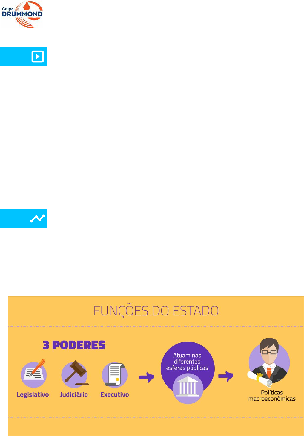 Funções do Estado APRESENTAÇÃO Nesta Unidade de Aprendizagem você vai conhecer as funções do Estado, além de identificar al guns pontos relevantes que o auxiliam para a condução do equilíbrio macroeconômico, tendo e m vista os propósitos coletivos. Bons estudos. Ao final desta Unidade de Aprendizagem, você deve apresentar os seguintes aprendizados: Identificar as principais funções do Estado.• Indicar as políticas macroeconômicas que atendem à função do Estado.• Apontar as ferramentas macroeconômicas utilizadas para o equilíbrio da economia.• INFOGRÁFICO O infográfico destaca os Poderes Legislativo, Executivo e Judiciário, os quais estabelecem ações orientadas na busca do atendimento à coletividade por meio da aplicação dos instrumentos de po líticas macroeconômicas, a fim de estabilizar a economia, distribuir renda e assegurar a manuten ção das relações com o comércio internacional. CONTEÚDO DO LIVRO Aprofunde seus conhecimentos lendo o capítulo Funções do Estado, do livro Elaboração e Impl ementação de Políticas Públicas, base teórica para esta Unidade de Aprendizagem. Boa leitura! ELABORAÇÃO E IMPLEMENTAÇÃO DE POLÍTICAS PÚBLICAS Vanessa Ramos Teixeira Revisão técnica: Luciana Bernadete de Oliveira Graduada em Ciências Políticas e Econômicas Especialista em Administração Financeira Mestre em Desenvolvimento Regional Catalogação na publicação: Poliana Sanchez de Araujo – CRB 10/2094 E37 Elaboração e implementação de políticas públicas / Guilherme Corrêa Gonçalves ... [et al.] ; [revisão técnica: Luciana Bernadete de Oliveira]. – Porto Alegre : SAGAH, 2017. 324 p. il. ; 22,5 cm. ISBN 978-85-9502-194-5 1. Políticas públicas. I. Gonçalves, Guilherme Corrêa. CDU 304 Funções do Estado Objetivos de aprendizagem Ao final deste texto, você deve apresentar os seguintes aprendizados: Identi� car as principais funções do Estado. Indicar as políticas macroeconômicas que atendem à função do Estado. Apontar as ferramentas macroeconômicas utilizadas para o equilíbrio da economia. Introdução Neste texto, você irá conhecer as funções do Estado, além de identificar alguns pontos relevantes que o auxiliam na condução do equilíbrio macroeconômico, tendo em vista os propósitos coletivos. Funções do Estado Você já se perguntou por que estado ou Estado? Um com a letra “e” em mi- núsculo e o outro em maiúsculo? Qual a diferença? Esse ponto é de grande importância e as diferenças estão além do que uma simples letra. Para ajudar a esclarecer essa questão, vamos recorrer ao nosso conhecido companheiro, o Dicionário do Aurélio (FERREIRA, 1988), que apresenta: Modo de ser ou estar. Modo de existir na sociedade; situação profissional ou social; condição. Conjunto das condições físicas ou morais de uma pes- soa. O conjunto dos poderes políticos de uma nação; governo. Organismo político administrativo que, como nação soberana ou divisão territorial, ocupa um território determinado, é dirigido por governo próprio e se constitui pessoa jurídica de direito público, internacionalmente conhecido. Você pode perceber que a definição desta palavra é ampla, portanto, torna- -se necessário alguma forma de distinção. Nesse caso, com a letra minúscula, estamos nos referindo, por exemplo, aos estados físicos da água, o estado de alguém após um acidente ou aos 26 estados da federação brasileira. Quando nos referimos àquela instituição que deve zelar pela nossa segurança pública, que codifica as leis e possui autodeterminação político-administrativa, gra- famos Estado. Agora que você já sabe, o Estado é uma entidade com poder soberano para governar um povo dentro de uma área territorial delimitada. Suas características são o exercício da soberania sobre um território delimitado por fronteiras e população específica, guardado pelas Forças Armadas e mantido por uma burocracia administrativa em esferas de poder. Devido ao fato do Estado brasileiro não ser unitário, suas atribuições são descentralizadas entre várias pessoas políticas, que são os entes da federação: União, Estados, Distrito Federal (Brasília) e Municípios. Conforme previsto em nossa Constituição Federal, de 1988, o Brasil adotou como forma de Estado o federado, que integram diferentes centros de poder político (BRASIL, 1988). Nessa definição, temos um poder político central (União), os poderes políticos regionais (Estados) e os poderes políticos locais (Municípios), além do Distrito Federal apesar de conter vedação constitucional a sua divisão em municípios, acumula poderes regionais e locais, como prevê em seu art. 32. O Estado federado tem como característica ser um modelo de descentrali- zação política, a partir da repartição constitucional de competências entre as entidades federadas autônomas que o integram. Com isso, o poder político, em vez de permanecer concentrado na entidade central, é dividido entre as diferentes entidades federadas dotadas de autonomia. É relevante ressaltar que, não há subordinação hierárquica entre as entidades políticas que compõem o Estado federado. Todos elas se concentram no mesmo patamar hierárquico, para o exercício autônomo das competências que lhe são atribuídas pela Constituição Federal (PEREIRA, 1998). Observe a divisão estatal no Quadro 1. Funções do Estado122 Esfera de poder Principais funções Nível Federal Estadual Municipal Legislativo Sua função principal é a elaboração de leis (função normativa) Congresso Nacional (Câmara dos deputados – Deputados Federais e Senado Federal – senadores) Assembleia Legislativa (Deputados Estaduais) Câmara Municipal (Vereadores) Executivo Sua função principal é a conversão da lei em ato individual e concreto (função administrativa) Presidente da República, Vice-Presidente e Ministros Governador, Vice- -Governador e Secretários Pr