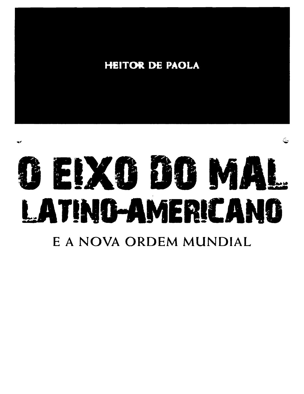 O EIXO DO MAL LATINO-AMERICANO E A NOVA ORDEM MUNDIAL Heitor de Paola PREFÁCIO Olavo de Carvalho Se o jornal eletrônico Mídia Sem Máscara não servisse para mais nada, só o ter revelado aos leitores brasileiros o analista político Heitor de Paola já bastaria para justificar sua existência e torná-la mesmo indispensável. O homem, de fato, não tem equivalente na "grande mídia" nem – até onde posso enxergar – nas cátedras universitárias, tal a amplitude do horizonte de informações com que lida em seus comentários e tal a claridade do olhar que ele lança sobre o vasto, complexo e móvel panorama da transição revolucionária latino-americana, reduzindo a sequências causais coerentes a variedade dos fatos em que seus colegas – digamos que o sejam – não enxergam senão um caos fortuito ou a imagem projetada de seus próprios sonhos, desejos, preconceitos e temores. Na pequena e valente equipe de colaboradores da publicação, remunerados a leite de pato (sim, nós, os cães-de-guarda do capital, não temos capital nenhum, ao contrário dos pobres e oprimidos que nadam em dinheiro dos ministérios e das fundações estrangeiras), as felizes coincidências acabaram por produzir uma divisão de trabalho na qual ninguém tinha pensado de início: se os demais redatores sondam em profundidade certos aspectos especiais, ou investigam para trazer ao conhecimento do público fatos que a mídia comprometida ignora por malícia ou por inépcia genuína, no fim vem o Heitor de Paola e articula tudo em grandes esquematizações diagnosticas que resumem o sentido do jornal inteiro e das quais o jornal inteiro, por sua vez, fornece as provas detalhadas. E uma grande alegria para mim ter sido o pai de um órgão brasileiro de mídia que, malgrado todas as suas limitações que ninguém nega, permanece o único onde as notícias não desmentem as análises e as análises não saem voando para longe das notícias. Na verdade o jornal revelou Heitor de Paola ao próprio Heitor de Paula, roubando-o em parte aos clientes do seu consultório de médico e psicanalista e colocando-o diante do caso clínico mais dramático e desesperador que já passou pelo divã de um discípulo (não muito fiel) do Dr. Freud: um continente neurotizado por um intenso tiroteio cruzado de ações camufladas e mentiras ostensivas que ultrapassa imensuravelmente a capacidade de compreensão da inteligência popular e a engolfa num abismo de esperanças ilusórias, terrores sem objeto e ódios sem sentido. Neurose, dizia um outro ás da clínica psicológica, o meu falecido amigo Juan Alfredo César Müller, é uma mentira esquecida na qual você ainda acredita. Não é só uma figura de linguagem. E o resumo compacto de uma ordem causai que a observação clínica confirma todos os dias. O processo tem três etapas: mentir, ocultar a mentira de si próprio e, por fim, entregar- se à produção compulsiva de pretextos, fingimentos e racionalizações sem fim, os mais postiços e contraditórios, para poder continuar agindo com base naquilo que se nega e ao mesmo tempo defender-se desesperadamente da revelação dos motivos iniciais verdadeiros que determinaram o curso inteiro da mutação patológica. Aplicado ao estudo dos processos histórico-políticos, o conceito tem de ser ajustado para dar conta de várias sequuências neurotizantes simultâneas e sucessivas, que, ao entremesclar-se num caleidoscópio de falsificações, tornam a forma geral do processo totalmente invisível à massa de suas vítimas, ao mesmo tempo dão visibilidade hipnótica a aspectos isolados e inconexos, artificialmente dramatizados como "problemas urgentes", fazendo com que do mero caos mental se passe às ações arbitrárias e desesperadas que complicam o quadro da vida real até à alucinação completa. Diversamente do que acontece na neurose individual, onde o autor e a vítima da mentira são a mesma pessoa, as neuroses coletivas são produzidas desde fora, por grupos de estrategistas e engenheiros sociais que, ao menos num primeiro momento, imaginam poder controlá- las em proveito próprio, mas que em geral acabam sendo eles mesmos arrebatados pelo movimento de destruição que geraram: nunca houve grupo de líderes revolucionários que não acabasse sendo dizimado pela própria revolução. No meio desse turbilhão, alguns indivíduos privilegiados conseguem manter-se à tona no mar de destroços e enxergar, mais ou menos, a direção do abismo para onde vai a corrente. Não por coincidência, esses observadores realistas são habitualmente recrutados entre aqueles que definitivamente não gostam do curso presente das coisas, mas que, por absoluta falta de vocação política, ou por estarem em minoria infinitesimal sem possibilidade de interferir na situação, reagem para dentro, intelectualmente, e não produzem planos de ação, mas diagnósticos da realidade, sem os quais a simples intenção de agir já seria apenas uma contribuição a mais para a loucura geral. Heitor de Paola é um desses. Não é só a experiência clínica que o qualifica especialmente para a função. A inteligência analítica da qual ele dá algumas amostras notáveis neste livro deve algo à militância revolucionária de juventude que o torna a seus próprios olhos um pouco culpado por aquilo que na época não podia prever mas hoje é obrigado a ver. Tanto melhor. Only tbe wounded can beal, diz um provérbio inglês. Richmond, VA, 29 de maio de 2008 INTRODUÇÃO “O bem estar do povo tem sido particularmente um álibi para tiranos.” Albert Camus Tendo sido comunista no passado e pertencido a uma das organizações clandestinas, a Ação Popular (AP), entre os anos de 1963 e 1968, que abandonei por não concordar com o desencadeamento da "luta armada contra a ditadura", inicialmente exultei com o tão propalado "fim do comunismo" com a queda do Muro de Berlin e a derrocada da União Soviética. Mas, conhecedor do sistema por dentro, 