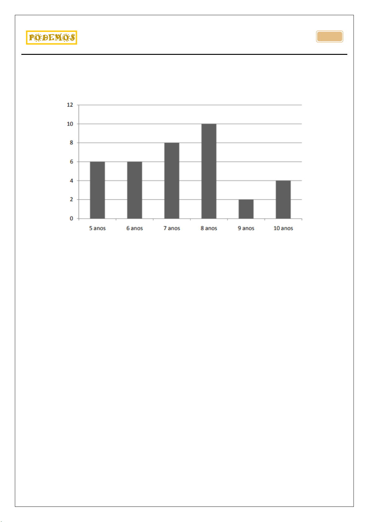 UFJF: PISM, Vestibulares e Concursos Prof. Otávio Luciano Camargo Sales de Magalhães . 546 8)(Concurso Público da UFJF - MG - Técnico-Administrativo em Educação TAE Juiz de Fora e Governador Valadares – Edital 22 / Ensino Superior – 2016 - Banca COPESE/FGV) O gráfico a seguir apresenta a frequência absoluta das idades das crianças de 5 a 10 anos atendidas em um posto de saúde certa manhã. Comparando o valor da média, da mediana e da moda da distribuição das idades dessas crianças, pode-se afirmar que: a) Média