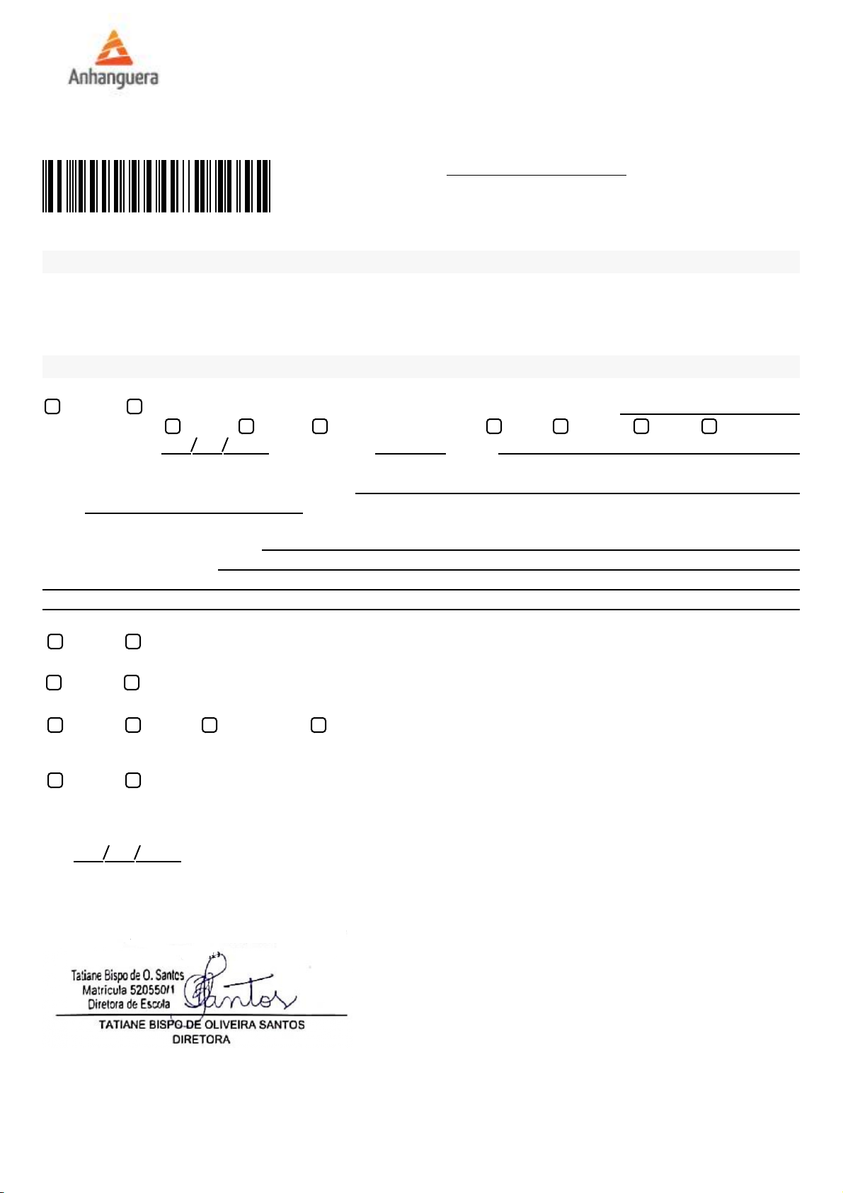 Centro Universitário Anhanguera Pitágoras Unopar de Campo Grande CADASTRO DA EMPRESA (A SER PREENCHIDO PELA CONCEDENTE, PARA FINS DE AVALIAÇÃO DE ESTÁGIO, CONFORME 3394522404034149 INFORMAÇÕES DO ESTAGIÁRIO Aluno ROSELI DOS SANTOS SIQUEIRA NASCIMENTO Curso PEDAGOGIA - LICENCIATURA Semestre 4º SEMESTRE Turno Noturno Matrícula 3394522404 Fone - Email rosenasique2911@gmail.com APRESENTAÇÃO DA CONCEDENTE DE ESTÁGIO Razão Social 0002227189 - ASSOCIACAO AMIGOS DA ESCOLA DA EMEF PROF. POSSIDONIO SALLES Matriz Filial CNPJ 15466051000180 Área ocupada pela empresa (m²) Tipo de empresa Pública Privada Outra Porte da empresa Micro Pequena Média Grande Data de fundação Nº de funcionários Site Endereço R BENEDITO ERAS Número S/N Telefone (12)3902-7392 Email Bairro Cidade Representante legal Cargo Setor ou Área que será realizado o estágio Ramo de atuação da Concedente SÃO JOSÉ DOS CAMPOS - SP CEP 12225-100 A Empresa tem condições de atender as necessidades do estagiário, conforme consta no Termo de Compromisso? Sim Não Os equipamentos, condições físicas, materiais e o ambiente são favoráveis para o desempenho do estágio? NãoSim Tem condições de orientar e avaliar o desempenho do estagiário? Sim Não Data De acordo: Polo SAO JOSE DOS CAMPOS/SP - III(15809660)A Em implantaçãoParcialmente DIRETORA Tatiane Bispo de Oliveira Santos Tatiane Bispo de Oliveira Santos DIRETORA Tem condições para designar supervisor de campo, nos termos do artigo 9º, inciso III, da Lei 11.788/2008, que pertença ao seu quadro de pessoal, nos termos especificados? NãoSim 3394522404034149Código do Documento: x x 102 https://www.escol.as/218402-possidonio-salles-professor emefpossidoniosalles@sjc.sp.gov.br Jardim Americano Educação Ensino Fundamental x x x x 14 03 2025