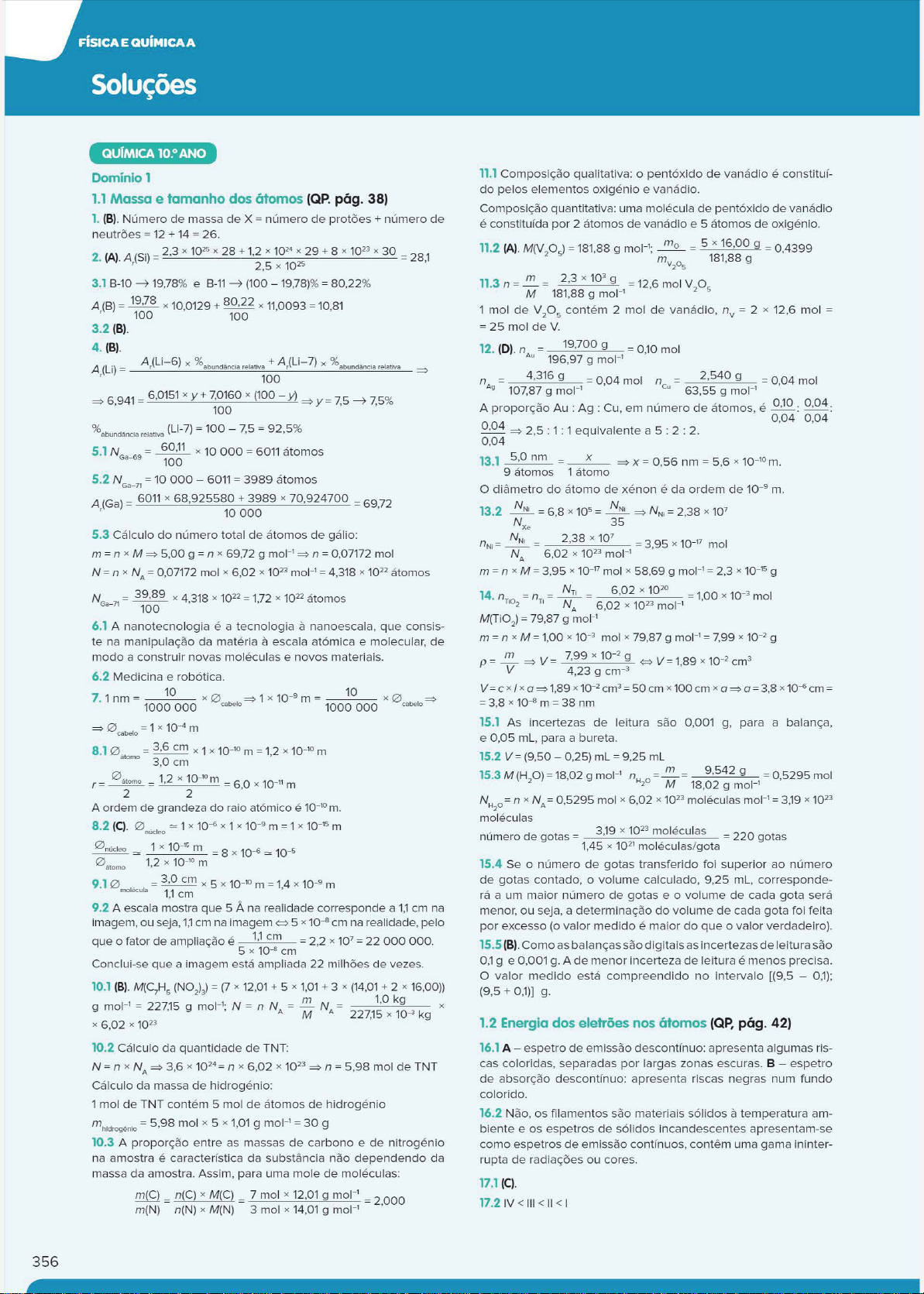 1.1 Massa e tamanho dos átomos (QP. pág. 38)
