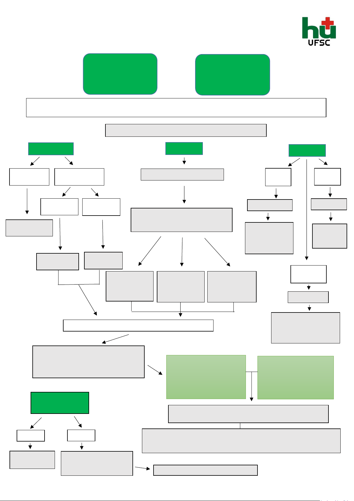 HOSPITAL UNIVERSITÁRIO POLYDORO ERNANI DE SÃO THIAGO – UFSC SERVIÇO DE EMERGÊNCIA CLÍNICA PROTOCOLO DE ATENDIMENTO DE CETOACIDOSE DIABÉTICA (CAD) E ESTADO HIPEROSMOLAR HIPERGLICÊMICO (EHH) Critérios diagnósticos CAD: - Glicemia > 250 mg/dL -pH arterial ≤ 7,3 - Bicarbonato ≤ 15mmol/L - Cetonemia ou cetonúria Fluidos IV KCl 19,1% 1 amp IV em 500ml SF em 1 h, medir K⁺ após infusão Não administrar bicarbonato 100 mEq (100ml) de bicarbonato em 400ml AD, infusão em 2 h Pode ser repetido a cada 2 h até pH ≥ 7,0 Insulina Potássio Hipotensão leve/normotensão Choque hipovolêmico SF 0,9% 1L/h até estabilização Insulina regular bolus 0,1UI/kg IV Insulina regular em BIC IV: 0,1UI/kg/h (100UI em 100ml SF0,9%: 1UI/ml) Redução glicemia 70mg/dl/h: Reduzir a infusão em 50% Critérios para suspender insulina em BIC na CAD - Glicemia 7,3 - Bicarbonato > 15 - Paciente alerta e aceitando VO Critérios para suspender insulina em BIC no EHH - Glicemia ≤250mg/dL - Osmolaridade sérica efetiva 5,2 mEq/L Não dar insulina Dar insulina Dar insulina Não dar K⁺; medir de 2/2h 1 amp KCl 19.1% em cada L de soro infundido, manter entre 4,0 e 5,0 mEq/L; Checar K⁺ de 4/4h pH ≥ 6,9 pH 600mg/dL - ph arterial > 7,30 - Osmolaridade sérica efetiva > 320 mOsm/kg Avaliação inicial completa: história e exame físico, Na, K, Ur, Cr, hemograma, glicemia, gasometria arterial, PU, Rx tórax, culturas Controles: HGT 1/1h, gasometria venosa e eletrólitos (Na⁺ e K⁺) de 2/2 a 4/4h, balanço hídrico Reposição de Bicarbonato