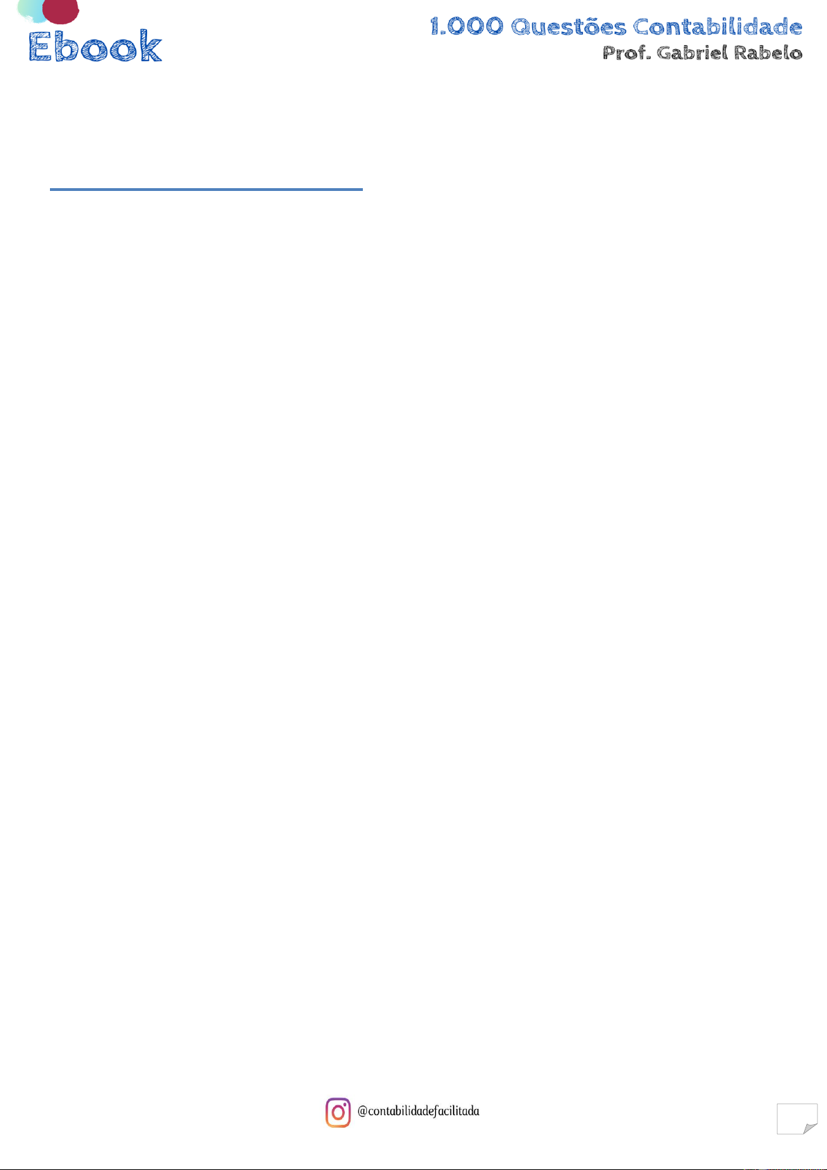 Ebook 1.000 Questões Contabilidade Prof. Gabriel Rabelo 63 D) aumenta o Passivo e a Despesa. E) aumenta o Passivo e diminui a Receita. Banca Cesgranrio 183. (CESGRANRIO/CEFET-RJ/Técnico em Contabilidade/2014) A empresa comercial Q, que compra e vende máquinas e equipamentos, comprou a prazo uma máquina para revenda, conforme nota fiscal da empresa vendedora, apresentada a seguir: Valor da máquina R$10.000,00 IPI R$1.000,00 ICMS destacado R$1.800,00 Considerando-se exclusivamente as informações da nota fiscal e as normas contábeis vigentes, o lançamento dessa operação, em reais, feito pela empresa comercial Q, desconsiderando-se data e histórico, é o seguinte: a) Mercadorias 10.000,00 a Fornecedores 10.000,00 b) Máquinas 10.000,00 a Contas a Pagar 10.000,00 c) Diversos a Fornecedores 10.000,00 Mercadorias 8.200,00 ICMS a Recuperar 1.800,00 d) Diversos a Fornecedores 11.000,00 Mercadorias 9.200,00 ICMS a Recuperar 1.800,00 e) Diversos a Diversos Mercadorias 9.200,00 ICMS a Recuperar 1.800,00 a Fornecedores 10.000,00 a IPI a Recolher 1.000,00 184. (CESGRANRIO/CEFET-RJ/Técnico em Contabilidade/2014) Analise a seguinte transação (fato administrativo) ocorrida na empresa Comercial U Quitação, através de débito em conta corrente bancária, de uma Duplicata, com o aceite quando da operação inicial com mercadorias compradas a prazo no valor de R$ 1.000,00, e com juros de mora de R$ 100,00, por ser feita fora do vencimento. Considerando exclusivamente as informações recebidas, as normas contábeis em vigor e a
