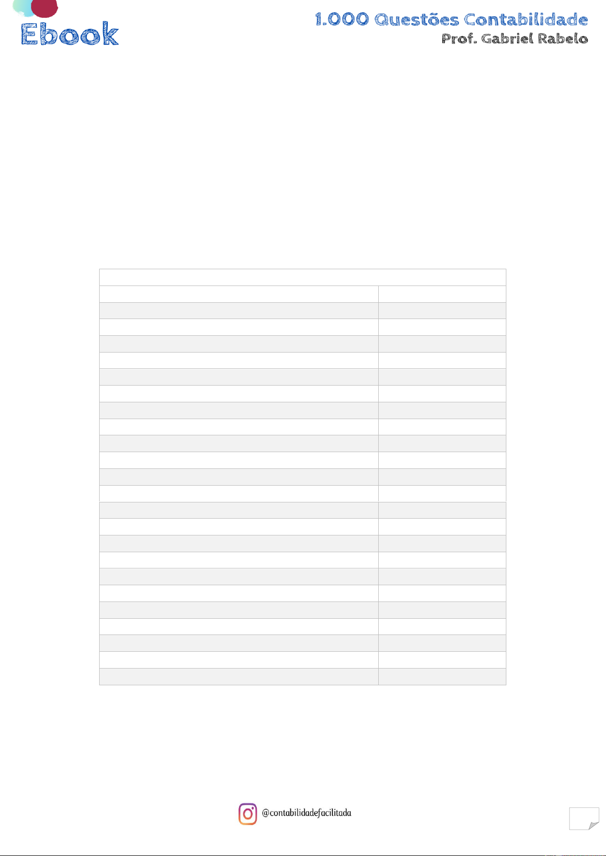 Ebook 1.000 Questões Contabilidade Prof. Gabriel Rabelo 136 a) ativo circulante; passivo não circulante; ativo intangível. b) passivo circulante; passivo não circulante; ativo intangível. c) passivo circulante; passivo circulante; ativo realizável a longo prazo. d) ativo circulante; passivo circulante; ativo realizável a longo prazo. e) passivo circulante; passivo não circulante; ativo imobilizado. 375. (VUNESP/Câmara Municipal de Olímpia/Contábil Legislativo/2018) Considerando as regras preconizadas nas normas técnicas contábeis, relativas à apresentação das demonstrações contábeis, utilize o balancete de verificação, levantado em 31 de agosto de 2018, da empresa Pão de Milho Ltda., para responder à questão. Note que a demonstração do resultado do período deverá ser encerrada. Balancete Contábil em 31.08.2018 Descrição REAIS Reserva de Lucros -R$ 50.000,00 Adiantamento a fornecedores R$ 14.000,00 Empréstimos e financiamentos (LP) -R$ 140.000,00 Demais contas a receber R$ 6.800,00 Fornecedores -R$ 80.000,00 Empréstimos e financiamentos -R$ 80.000,00 Ajuste para créditos de liquidação duvidosa -R$ 19.000,00 Mútuos a receber de longo prazo R$ 20.000,00 Estoques R$ 90.000,00 Investimentos R$ 20.000,00 Impostos a recolher -R$ 38.000,00 Contas a pagar -R$ 3.800,00 Contas a pagar de longo prazo -R$ 4.000,00 Ativos intangíveis R$ 30.000,00 Lucro líquido do período -R$ 82.000,00 Ajustes de avaliação patrimonial -R$ 30.000,00 Caixa e equivalentes de caixa R$ 25.000,00 Títulos a receber de LP R$ 5.000,00 Salários a pagar -R$ 24.000,00 Capital integralizado -R$ 40.000,00 Contas a receber de clientes R$ 160.000,00 Imobilizado R$ 240.000,00 Reservas de capital -R$ 20.000,00 O valor do passivo circulante, em reais, é: a) 144.000,00. b) 222.000,00. c) 225.800,00.
