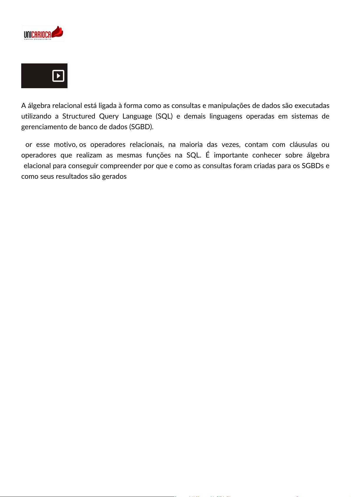 a este vídeo, que aborda linguagem de consulta e conceitos de álgebra relacional.
