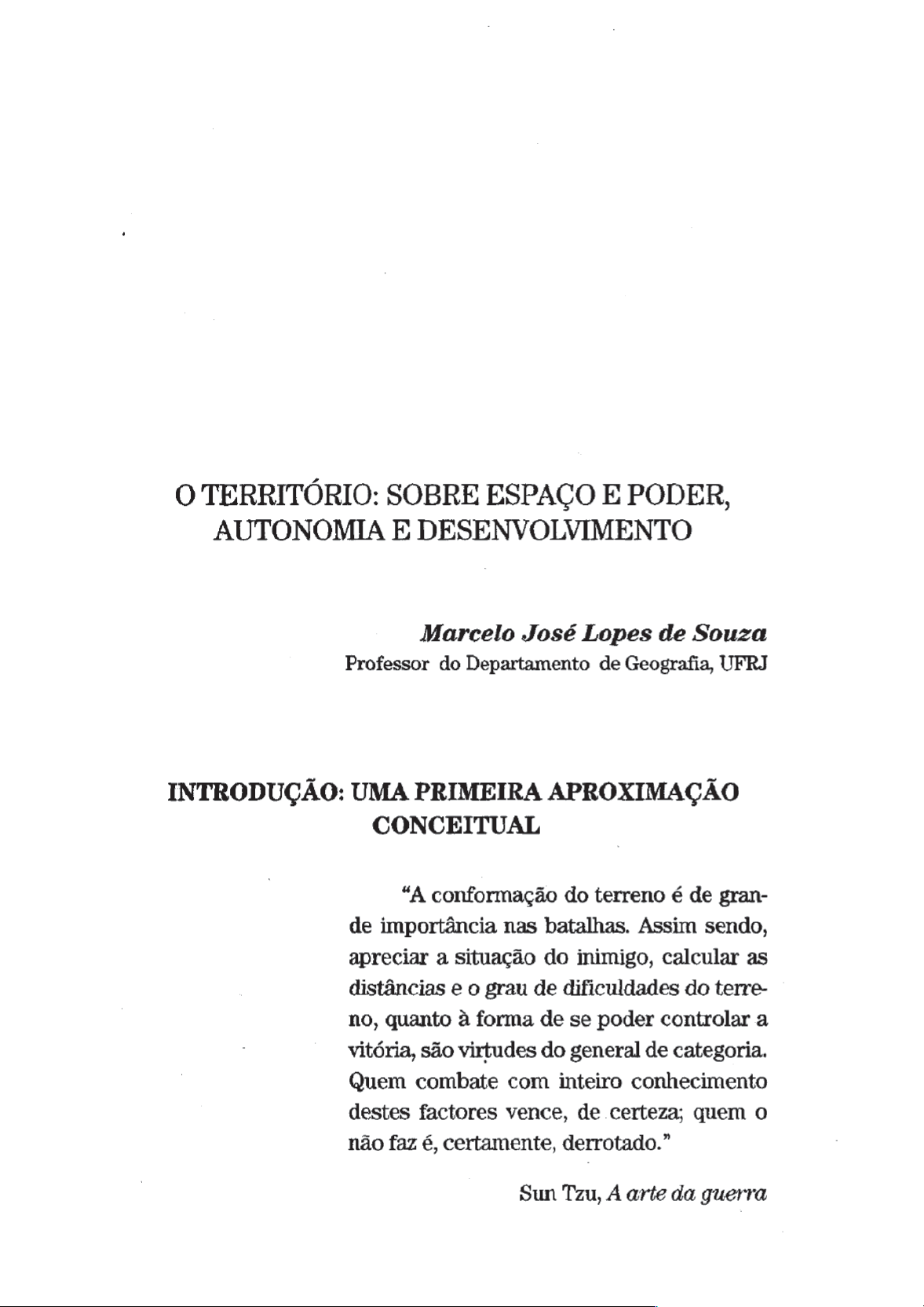 O TERRITÓRIO: SOBRE ESPAÇO E PODER, AUTONOMIA E DESENVOLVIMENTO Marcelo José Lopes de Souza Professor do Departamento de Geografia, UFRJ INTRODUÇÃO: UMA PRIMEIRA APROXIMAÇÃO CONCEITUAL “A conformação do terreno é de gran- de importância nas batalhas. Assim sendo, apreciar a situação do inimigo, calcular as distâncias e o grau de dificuldades do terre- no, quanto à forma de se poder controlar a vitória, são virtudes do general de categoria. Quem combate com inteiro conhecimento destes factores vence, de certeza; quem o não faz é, certamente, derrotado.” Sun Tzu, À arte da querra 7 GEOGRAFIA: CONCEITOS E TEMAS A epígrafe acima, extraída do décimo capítulo do livro A arte da guerra, escrito cinco séculos antes de Cristo pelo chinês Sun Tzu, nos mostra que o reconhecimento, não apenas intuitivo, mas até mesmo teórico, da importância capital do espaço enquanto instrumento de manutenção, conquista e exercício de poder, é algo muitíssimo antigo. A guerra, enquanto “prolongamento da política por outros meios”, para usar a célebre fórmula de outro estudioso que reconheceu plenamente a importância essencial do espaço para a atividade guerreira, o general prussiano Carl von Clausewitz,' constitui, ela própria, enquanto uma ferramenta da política, todavia apenas uma situação-limite; o seu valor instru- mental para a guerra, para esse “ato de força para impor a nossa vontade ao adversario” (CLAUSEWITZ, 1983:9), não esgota o signifi- cado politico do espaço. Na verdade, consoante o pensamento de Hannah Arendt, parece mesmo que a guerra, ou a violéncia em geral, é inclusive varias vezes um sintoma de perda de poder: “(...) toda diminuicdo de poder é um convite à violéncia — quando pouco porque aqueles que detém o poder e o sentem escorregar por entre as maos, sejam eles o governo ou os governados, encon- traram sempre dificuldade em resistir 4 tentação de substitui-lo pela violéncia” (ARENDT, 1985:49). O territorio, objeto deste ensaio, é fundamentalmente um espago definido e delimitado por e a partir de relações de poder. A questão primordial, aqui, não é, na realidade, quais sdo as ca- ractertsticas geoecoldgicas e 0s recursos naturais de uma certa drea, 0 que se produz ou quem produz em um dado espago, ou ainda quais as ligações afetivas e de identidade entre um grupo social e seu espago. Estes aspectos podem ser de crucial impor- tancia para a compreensio da génese de um territério ou do inte- resse por toma-lo ou manté-lo, como exemplificam as palavras de Wguerra não é simplesmente um ato politico, mas sim um verdadeiro instrumento político, uma continuação da atividade política, uma realização da mesma por outros meios” (CLAUSEWITZ, 1983:24). O TERRITÓRIO 7 Sun Tzu a propésito da conformação do terreno, mas o verdadei- ro Leitmotiv é o seguinte: quem domina ou influencia e como domina ou influencia esse espago? Este Leitmotiv traz embutida, ao menos de um ponto de vista não interessado em escamotear conflitos e contradi¢des sociais, a seguinte questão inseparavel, uma vez que o territério é essencialmente um instrumento de exercicio de poder: quem domina ou influencia quem nesse espago, e como? Detenhamo-nos, assim, um pouco no conceito de poder em si, antes de voltarmos a discorrer sobre o territério. : Tanto na linguagem cotidiana quanto mesmo nas teorias polf- ticas é possível constatar superposições entre as noções ou os con- ceitos de poder, violéncia, dominação, autoridade e competéncia (MALUSCHKE, 1991:354). Tais superposi¢ées — e confusdes — foram profundamente lamentadas por Hannah ARENDT (1985:23). Segundo Arendt, ha, “por tras da confusão aparente e a cuja luz todas as dis- tingdes seriam, na melhor das hipéteses, de pequena importéncia, a convicção de que a questão politica mais crucial é, e sempre foi, a questdo de: Quem governa quem? Poder, forga, autoridade, violéncia — nada mais 830 do que palavras a indicar os meios pelos quais o homem governa o homem; são elas consideradas sinô- nimos por terem a mesma fungzo. É apenas depois que se cessa de reduzir as questdes públicas ao problema da dominação, que as informagdes originais na esfera dos problemas humanos deverão aparecer, ou antes reapa- recer, em sua genuina diversidade” (ARENDT, 1985:23-4). Sobre o poder, assim sintetizou Hannah Arendt o seu conceito: 80 GEOGRAFIA: CONCEITOS E TEMAS “O ‘poder’ corresponde 2 habilidade humana de não apenas agir, mas de agir em uníssono, em comum acordo. O poder jamais é propriedade de um indivíduo; pertence ele a um grupo e existe apenas enquanto o grupo se mantiver unido. Quando dizemos que alguém está no poder' estamos na realidade nos referindo ao fato de encontrar-se esta pessoa investida de poder, por um certo número de pessoas, para atuar em seu nome. No momento em que o grupo, de onde originara- se o poder (potestas in populo, sem um povo ou um grupo não há poder), desaparece, ‘o seu poder’ também desaparece” (ARENDT, 1985:24). . A conceituação acima resumida é, como se verá mais adiante na seção 2, de um interesse especial para o presente artigo, por ampliar a idéia de poder e simultaneamente libertá-la da confusão com a violência e da restrição à dominação, permitindo assim con- jugar as idéias de poder — e, por extensão, território — e autono- mia. No que diz respeito à violência, ela se distinguiria, segundo Hannah Arendt, por seu “cariter instrumental”. “Do ponto de vista fenomenol6gico”, esclarece a autora (ARENDT, 1985:25), a violén- cia estaria préxima do vigor (que designa uma qualidade inerente a uma pessoa ou um objeto e que independe de sua manifestacio em relacao a outras pessoas ou objetos), “uma vez que os instru- mentos da violéncia, como todos os demais, são concebidos e usa- dos para o propésito da multiplicacdo do vigor natural até que, no último estagio de desenvo