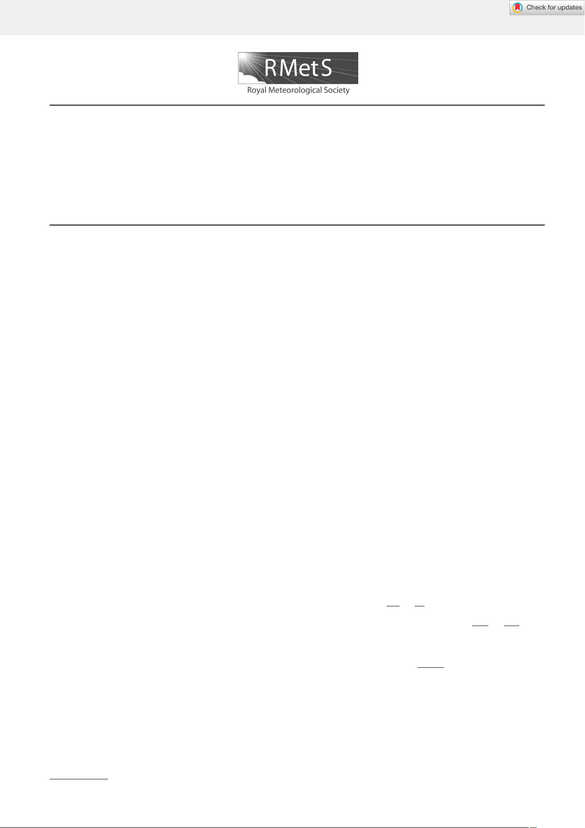 Quarterly Journal of the Royal Meteorological Society Q. J. R. Meteorol. Soc. 141: 1191–1197, April 2015 B DOI:10.1002/qj.2426 Flux-profile relation with roughness sublayer correction J. Arnqvist* and H. Bergström Department of Earth Sciences, Uppsala University, Sweden *Correspondence to: J. Arnqvist, Department of Earth Sciences, Uppsala University, Villavägen 16, 75236 Uppsala, Sweden. E-mail: johan.arnqvist@geo.uu.se Calculation of momentum flux using Monin–Obukhov similarity theory over forested areas is well known to underestimate the flux. Several suggestions of corrections to the standard flux-profile expression have been proposed in order to increase the magnitude of turbulent flux. The aim of this article is to find a simple, analytical representation for the characteristics of the flow within the canopy layer and the surface layer, including the roughness sublayer. A new form of the roughness sublayer correction is proposed, based on the desire to connect the shape of the roughness sublayer correction to forest characteristics. The new flux-profile relation can be used to find the flux or the wind profile whenever simple and fast estimations are needed, as for mesoscale modelling, scalar transport models, or sound propagation models. Key Words: roughness sublayer; wind profile; dimensionless gradient; stability expressions Received 24 February 2014; Revised 13 June 2014; Accepted 7 July 2014; Published online in Wiley Online Library 26 August 2014 1. Introduction When estimating wind profiles and momentum fluxes over any surface Monin–Obukhov scaling (hereafter MO scaling) provides a robust relation between surface characteristics and vertical profiles. However it is a well-documented fact that MO scaling underpredicts the momentum flux over forests (Thom et al., 1975; Garratt, 1980; Högström et al., 1989; Finnigan, 2000). The part of the surface layer where the flow deviates from the surface-layer approximations by the effect of the roughness elements is defined as the roughness sublayer. It is still an open question whether this is due to a direct influence of the roughness elements or by flow regimes created by the high roughness. The most prevalent idea for the cause of the roughness sublayer is the mixing-layer analogy, first put forward in detail in Raupach et al. (1996). The mixing-layer analogy ascribes flow characteristics of the roughness sublayer to vortices which are created at the canopy top, as a result of the inflection point instability in the wind profile. Reports in the literature gives height of the roughness sublayer to be approximately 3h∗ where h is the height of the trees (Raupach et al., 1991; Kaimal and Finnigan, 1994; Wenzel et al., 1997). MO scaling underestimates the flux in the roughness sublayer and, with large areas of the Earth covered by forests, this is problematic on all ranges of atmospheric modelling that use first-order closure for the surface layer. Physick and Garratt (1995) developed corrections to increase the flux in a mesoscale model and improved the diurnal variation of scalar profiles. However, as pointed out by Harman and Finnigan (2007) their correction did not produce a continuous profile and lacked a wind profile within the canopy. For scalar flux estimations in ∗All variables are defined in the Appendix. various models and noise-level estimations in sound propagation models, the wind profile within the forest needs to be known. The need for simple and fast calculation will exclude the use of more sophisticated higher-order models for many purposes. An analytical profile that is continuous from the ground to the top of the surface layer is therefore important. The profile of Harman and Finnigan (2007) was successful in predicting the mean flow but there is no analytical solution to their flux-gradient expression. De Ridder (2010) proposed an approximation to enable analytical integration which resulted in an error of maximum 4% compared to numerical integration. However the profile of De Ridder (2010) does not include an expression for the wind within the forest. Without a roughness sublayer, assuming a constant-flux layer, the wind gradient can be described by ∂U ∂z = u∗ κz φm(z/L), (1) where u∗ is the scaling velocity, defined as (u′w′2 + v′w′2)−1/4. The Obukhov length L is defined as L = −u2∗T0 κgθ∗ . (2) Stability expressions for φm have been thoroughly examined, and we shall adopt the expressions of Högström (1996), repeated here for convenience: φm = { (1 − 19z/L)−1/4 for z/Lfound a slight variation of d with stability. The mean value of d was found to be 22 m for Site 2 in the selected sector and is reported to be 15 m for Site 1 (Högström et al., 1989). This corresponds to 0.75h for Site 1 and 0.88h for Site 2. In canopy flows, h is a natural choice of length-scale central to the flow dynamics. However at some distance above the canopy d becomes more important than h, and thus it is convenient to follow Harman and Finnigan (2007) and define the variable dt = h − d as it takes into account both heights. In the following derivation of the mathematical expressions dt will be a central length-scale. 3. Theory 3.1. Mixing-layer theory The mixing-layer analogy as responsible for the enhanced momentum transport is an attractive idea, as it offers an explanation to the origin of the large organized structures found above canopies. In a plane mixing layer, large horizontal rolls are formed from a flow instability due to the different wind speeds in the two layers. Even a thick ideal forest does not resemble a plane mixing layer, but the inflection point in the wind profile is present and that is a necessary (but not sufficient) condition for the instability to form (Drazin, 2002). Drag forces and diabatic stability might stabilize the flow so that in stable diabatic conditions evanescent waves are formed instead. However, in a fully developed flow, with moderate to high wind 