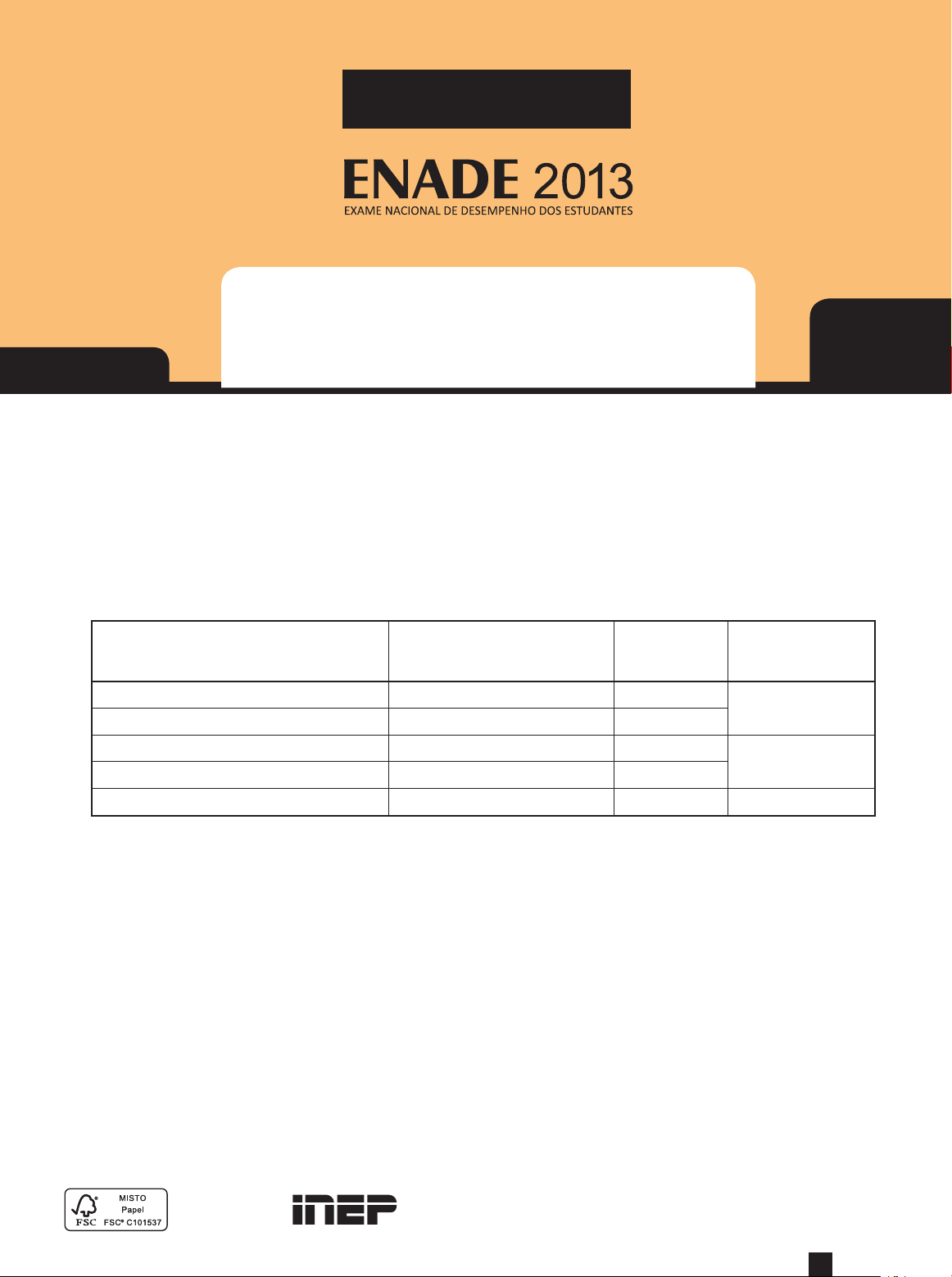 NUTRIÇÃO 10Novembro/2013 SINAES Sistema Nacional de Avaliação da Educação Superior Ministério da Educação LEIA COM ATENÇÃO AS INSTRUÇÕES ABAIXO. 1. Verifique se, além deste caderno, você recebeu o Caderno de Respostas, destinado à transcrição das respostas das questões de múltipla escolha (objetivas), das questões discursivas e do questionário de percepção da prova. 2. Confira se este caderno contém as questões de múltipla escolha (objetivas), as discursivas de formação geral e do componente específico da área e as relativas à sua percepção da prova. As questões estão assim distribuídas: Partes Número das questões Peso das questões Peso dos componentes Formação Geral/Objetivas 1 a 8 60% 25% Formação Geral/Discursivas Discursiva 1 e Discursiva 2 40% Componente Específico/Objetivas 9 a 35 85% 75% Componente Específico/Discursivas Discursiva 3 a Discursiva 5 15% Questionário de Percepção da Prova 1 a 9 - - 3. Verifique se a prova está completa e se o seu nome está correto no Caderno de Respostas. Caso contrário, avise imediatamente um dos responsáveis pela aplicação da prova. Você deve assinar o Caderno de Respostas no espaço próprio, com caneta esferográfica de tinta preta. 4. Observe as instruções sobre a marcação das respostas das questões de múltipla escolha (apenas uma resposta por questão), expressas no Caderno de Respostas. 5. Use caneta esferográfica de tinta preta, tanto para marcar as respostas das questões objetivas quanto para escrever as respostas das questões discursivas. 6. Não use calculadora; não se comunique com os demais estudantes nem troque material com eles; não consulte material bibliográfico, cadernos ou anotações de qualquer espécie. 7. Você terá quatro horas para responder às questões de múltipla escolha e discursivas e ao questionário de percepção da prova. 8. Quando terminar, entregue ao Aplicador ou Fiscal o seu Caderno de Respostas. 9. Atenção! Você deverá permanecer, no mínimo, por uma hora, na sala de aplicação das provas e só poderá levar este Caderno de Prova após decorridas três horas do início do Exame. *A1020131*