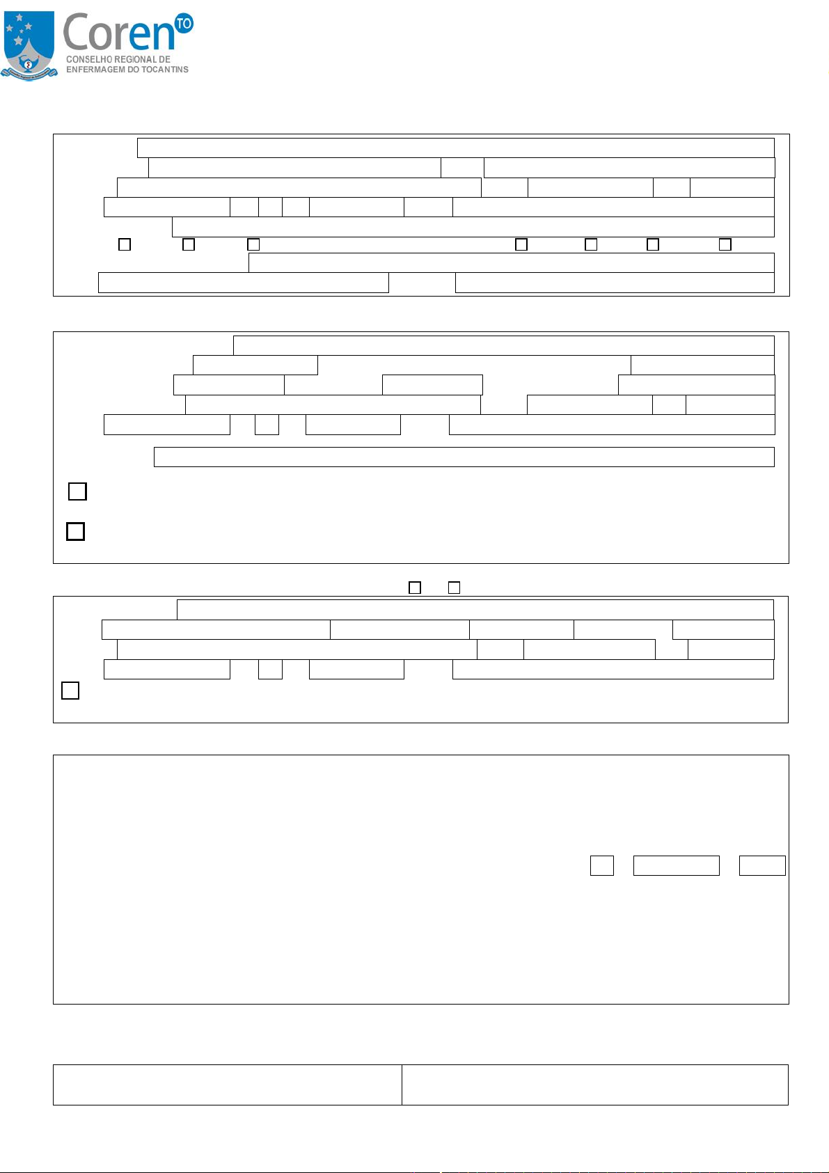 REQUERIMENTO DE REGISTRO DE RESPONSABILIDADE TÉCNICA 1. Empresa/Instituição (inserir neste campo os dados do contratante): Razão Social: Nome Fantasia: CNPJ: Endereço: Bairro: CEP: Cidade: UF: Tel. E-mail: Ramo de Atividade: Natureza: Pública Privada Filantrópica Horário de Funcionamento: 24 horas Diurno Noturno Outros Nome do(a) Representante Legal: Cargo: Formação: 2. Responsabilidade Técnica (inserir neste campo os dados do RT): Nome do(a) Enfermeiro(a) RT: Inscrição no Coren-TO: Data da validade da Cédula de Identidade Profissional: Horário de trabalho: Dias da semana: Carga horária semanal: Endereço Residencial: Bairro: CEP: Cidade: UF: Tel. E-mail: Área de atuação: (Neste campo indique o principal foco de atuação. Exemplo: hospitalar, saúde mental, atenção básica, serviços móveis, endoscopia, etc): Declaro para todos os fins que estou quite com as obrigações eleitorais, bem como com as anuidades em todas as categorias em que tenho inscrição. Sou o(a) único(a) profissional de enfermagem atuante na empresa/instituição supracitada, comprometendo-me a informar ao Coren-TO sobre o aumento do quadro de profissionais de enfermagem sob minha responsabilidade. 3. Outros vínculos profissionais - Possui outro vínculo profissional? Não Sim Obs: Caso marque sim, preencha os campos abaixo: Nome da Instituição: Função: Carga horária semanal : Dias da semana: Endereço: Bairro: CEP: Cidade: UF: Tel. E-mail: Declaro para todos os fins que não há coincidência de horário de trabalho nas empresas/instituições, as quais estou vinculado(a) como profissional de enfermagem. 4. Representante legal da empresa/instituição ou Responsável pelo local de atuação do RT Eu, representante legal da empresa/instituição acima identificada, por meio deste instrumento, declaro que o enfermeiro supracitado neste termo, está designado a assumir as funções de responsabilidade técnica pelo serviço de enfermagem desta empresa/instituição ou setor de trabalho apontado. Declaramos, sob as penas da lei, que as informações aqui prestadas são verdadeiras. Termos em que, pedimos deferimento. Palmas, de de ______________________________ ____________________________ assinatura e carimbo do Enfermeiro(a) assinatura e carimbo do Representante Legal Importante: Esse requerimento não deve conter rasuras e não deverá ser preenchido à mão. Anotação ( ) Renovação ( ) Nº da CRT: ___________. Protocolo nº _________ Data ____/_____/______. Exclusivo do Coren-TO:________________________________. Caixa de texto 1: RESIDENCIA LAR FELIZ IDADE LTDA Caixa de texto 1_2: LAR FELIZ IDADE Caixa de texto 1_3: 208 SUL, ALAMEDA 3, LOTE 44-46 Caixa de texto 1_4: SUL Caixa de texto 1_5: PALMAS Caixa de texto 1_6: 63984589439 Caixa de texto 1_7: MIRSANDRA3471@GMAIL.COM Caixa de texto 1_8: INSTITUCIONES DE LONGA PERMANENCIA PARA IDOSOS Caixa de sele#C3#A7#C3#A3o 1: Yes Caixa de sele#C3#A7#C3#A3o 1_2: Off Caixa de texto 1_9: Caixa de texto 1_10: Caixa de texto 1_11: Caixa de texto 1_12: Caixa de texto 1_13: Caixa de texto 1_14: Caixa de texto 1_15: Caixa de texto 1_16: Caixa de texto 1_17: Caixa de texto 1_18: Caixa de texto 1_19: 19 Caixa de texto 1_20: julho Caixa de texto 1_21: 2024 Caixa de texto 1_22: 77020556 Caixa de texto 1_23: TO Caixa de texto 1_24: 251598200001-51 Caixa de texto 1_25: VICENTE GOMEZ MONTERO Caixa de texto 1_26: PROPRIETARIO Caixa de texto 1_27: Ensino Médio Completo Caixa de texto 1_28: 08:00 às 10:00 Caixa de texto 1_29: Segunda a Sexta Caixa de texto 1_30: 20h semamais Caixa de texto 1_31: Letícia Mesquita Ferreira Barros Caixa de texto 1_32: 664.057 Caixa de texto 1_33: 04/03/2027 Caixa de sele#C3#A7#C3#A3o 1_3: Yes Caixa de sele#C3#A7#C3#A3o 1_4: Off Caixa de sele#C3#A7#C3#A3o 1_5: Off Caixa de sele#C3#A7#C3#A3o 1_6: Off Caixa de sele#C3#A7#C3#A3o 1_7: Off Caixa de texto 1_34: Palmas Caixa de texto 1_35: TO Caixa de texto 1_36: 63992655296 Caixa de texto 1_37: leticia.iflh@gmail.com Caixa de texto 1_38: Quadra 110 norte, Arne 14, alameda 21, nº 67 Caixa de texto 1_39: Plano Diretor Norte Caixa de texto 1_40: 77006-142 Caixa de sele#C3#A7#C3#A3o 2: Yes Caixa de sele#C3#A7#C3#A3o 2_2: Yes Caixa de texto 1_41: Caixa de sele#C3#A7#C3#A3o 1_8: Off Caixa de sele#C3#A7#C3#A3o 1_9: Off Caixa de sele#C3#A7#C3#A3o 2_3: Off Caixa de texto 1_42: Geriatria