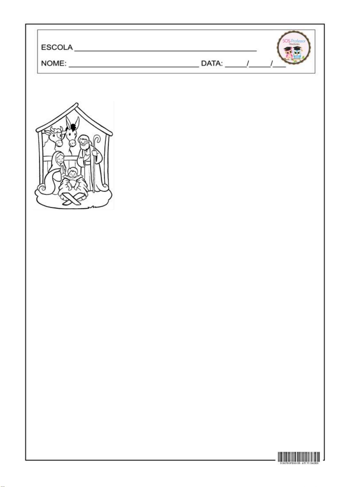 A história do nascimento de Jesus Havia uma moça chamada Maria, que morava na cidade de Nazaré. Certa noite, apareceu-lhe um anjo, dizendo: __Não tenha medo, Maria. Você foi agraciada por Deus! Você ficará grávida e dará à luz um filho. Porás o seu nome Jesus, porque Ele será chamado o filho do altíssimo. Maria, porém, perguntou: __Mas como será isto, se estou prometida em casamento a José e ainda não nos casamos? O anjo lhe respondeu: __O Espírito Santo virá sobre você, e o poder do Altíssimo a cobrirá com a sua sombra. Assim, aquele que há de nascer será chamado Santo, Filho de Deus. Respondeu Maria: "Sou serva do Senhor; que aconteça comigo conforme a tua palavra". Então o anjo a deixou. E achando-se Maria grávida do Espírito Santo, um anjo apareceu a José e disse: __José, não temas receber Maria por sua mulher, pois o que nela está gerado é fruto do Espírito Santo. Ela dará à luz um filho, e você deverá dar-lhe o nome de Jesus, porque ele salvará o seu povo dos seus pecados. Então, como não havia para eles espaço nas hospedarias, que estavam cheias devido ao alistamento, José e Maria foram a um estábulo. E ali nasceu Jesus, sendo colocado numa manjedoura. Alguns pastores guardavam seus rebanhos ali perto. E o anjo apareceu a eles e disse: ___Não tenham medo, porque trago novas de grande alegria: hoje na cidade de Davi vos nasceu o Salvador, que é Cristo, o Senhor. Achareis o menino envolto em panos e deitado numa manjedoura. De repente, surgiu nos céus uma grande multidão de anjos, que cantava: “Glória a Deus nas alturas, paz na terra e boa vontade para com os homens...” E alguns magos, que vinham do Oriente seguiram uma grande estrela e guiados por ela, chegaram ao lugar onde Jesus nascera. Ao entrarem, viram o menino com Maria, sua mãe, e, prostrando-se, o adoraram. Então abriram os seus tesouros e lhe deram presentes: ouro, incenso e mirra. (Baseado na Bíblia Sagrada) 1. Procure no dicionário o significado da palavra manjedoura. ______________________________________________________________________ ______________________________________________________________________ ______________________________________________________________________ 2. Como se chamavam os pais de Jesus? ______________________________________________________________________ 3. Onde morava Maria? ______________________________________________________________________ 4. Onde colocaram Jesus, quando ele nasceu? ______________________________________________________________________ 5. Que presentes os magos do Oriente ofertaram a Jesus? ______________________________________________________________________ 6. O que Maria respondeu ao anjo que lhe anunciou as boas novas? ______________________________________________________________________ ______________________________________________________________________ ______________________________________________________________________ 7. O filho de Deus nasceu numa humilde manjedoura. O que você pode dizer sobre isso? ______________________________________________________________________ ______________________________________________________________________ ______________________________________________________________________ 8. Quem guiou os magos até Jesus? ______________________________________________________________________ 9. Em que dia comemoramos o Natal? ______________________________________________________________________