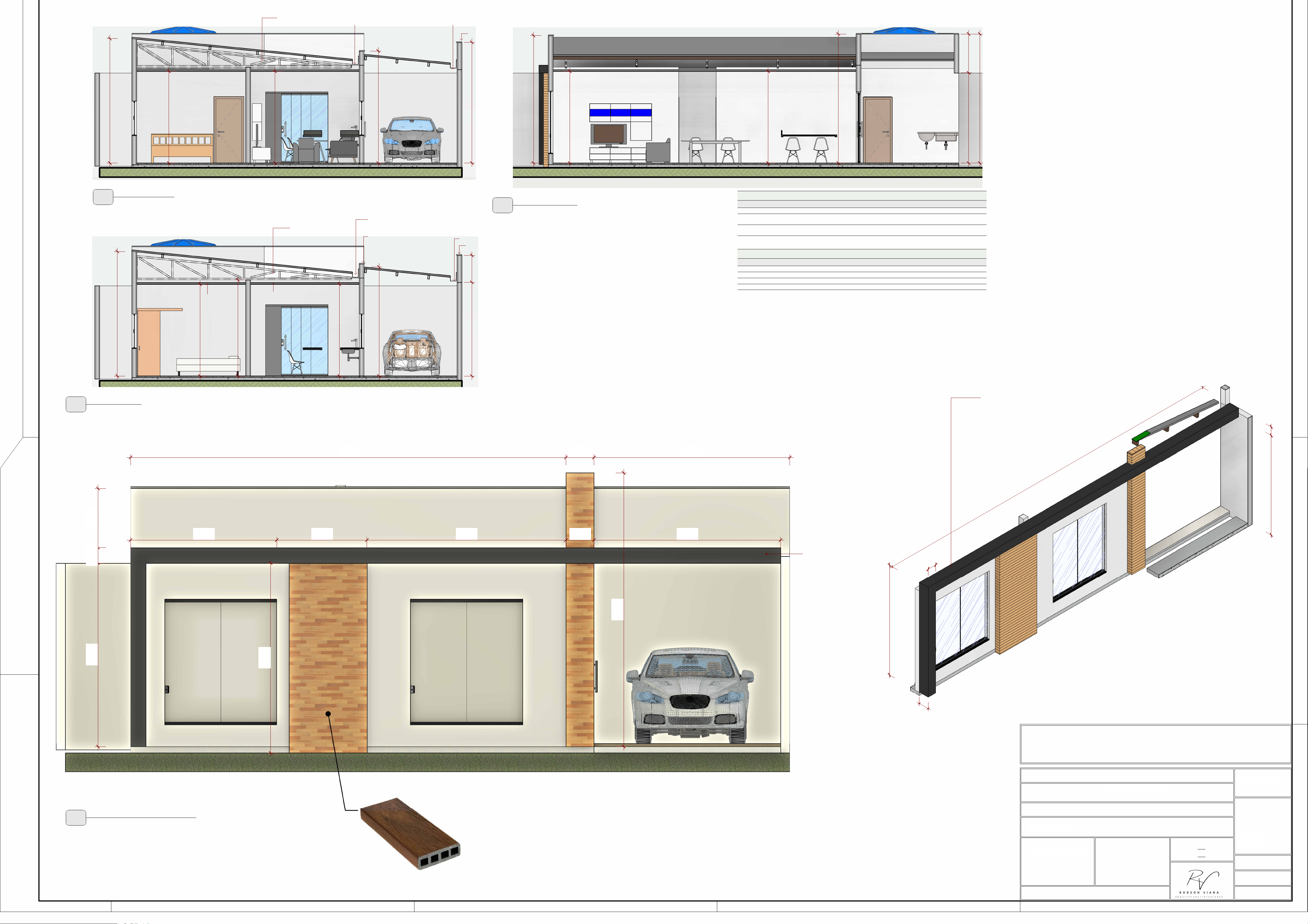 P1 P5 J2 J24, 00 3, 60 QUARTO/ESCRITÓRIO SALA2, 95 3, 88 2, 95 Treliça Metalica Calha quadrada de chapa de aço galvanizada Calha quadrada de chapa de aço galvanizada Pingadeira em concreto 2, 95 SERVIÇO COZINHA/JANTAR SALA 1, 25 2, 90 4, 15 4, 15 2, 95 4, 10 0, 87 3, 01 4, 00 2, 95 SUÍTE MASTER COZINHA/JANTAR 2, 95 3, 09 Treliça Metalica Calha quadrada de chapa de aço galvanizada Pingadeira em concreto Calha quadrada de chapa de aço galvanizada Pingadeira em concreto Forro em Gesso Forro em Gesso P5 P4 J2 J2 3, 50 3,000,453,201,452,35 3,150,457,00 3, 05 4, 40 0, 95 0, 25 2, 95 LAJE DE CONCRETO AL TU R A 3, 20 CO MP RIM EN TO 10 ,45 0,2 5 0,30 0, 25 2, 90 LAJE DE CONCRETO Novembro de 2024 AUTOR DO PROJETO: DATA: DESCRIÇÃO: FOLHA: ESCALA(S): PROJETO: CLIENTE: DESENHO(S): LOCAL: REVISÃO: DESENHO BIM QUADRO DE ÁREAS (m²): COEFICIENTES (%): Tx.Ocup.: Tx. Perm.: ARQ CPF: 023.570.922-03 . 00 PROJETO ARQUITETÔNICO EXISTENTE: REFORMAR: TOTAL DE CONST.: TERRENO: 360,00 A CONSTRUIR: 00,00 00,00 00,00 130,00 Robson Lucas da Silva Viana Arquiteto e Urbanista CAU n° A234229-4 Como indicado PLANTA BAIXA R. Veterano Pedro Freire, S/Nº Bairro Triunfo Elizangela Conceição da Silva Residência Unifamiliar Residência Unifamiliar 2/2 1 : 50 Corte 11 1 : 50 Corte 22 1 : 50 Corte 33 1 : 25 FACHADA FRENTE4 Janelas Cod. Dimensões Descrição do material Und. B1 0,80x0,40/1,70 BASCULANTE EM VIDRO TEMPERADO E ESTRUT. METÁLICA 3 J1 1,80x2,00/0,30 JANELA DE CORRER, 2 FOLHAS, EM VIDRO TEMP. E ESTRUT. METÁLICA 2 J2 1,50x1,10/0,88 JANELA DE CORRER, 2 FOLHAS, EM VIDRO TEMP. E ESTRUT. METÁLICA 4 Portas Cod. Dimensões Descrição do material Und. P1 0,80x2,10 PORTA DE MADEIRA 1 FOLHA DE ABRIR 3 P3 2,00x2,30 PORTA DE VIDRO 3 FOLHAS DE CORRER 1 P4 0,70x2,10 PORTA SEMIOCA EM MADEIRA, DE CORRER, 1 FOLHAS. 2 P5 2,00x2,30 PORTA DE VIDRO DUAS FOLHAS DE CORRER 1 PERFIL DE MADEIRA PLÁSTICA. COR YPÉ PESQUISAR EM LOJAS