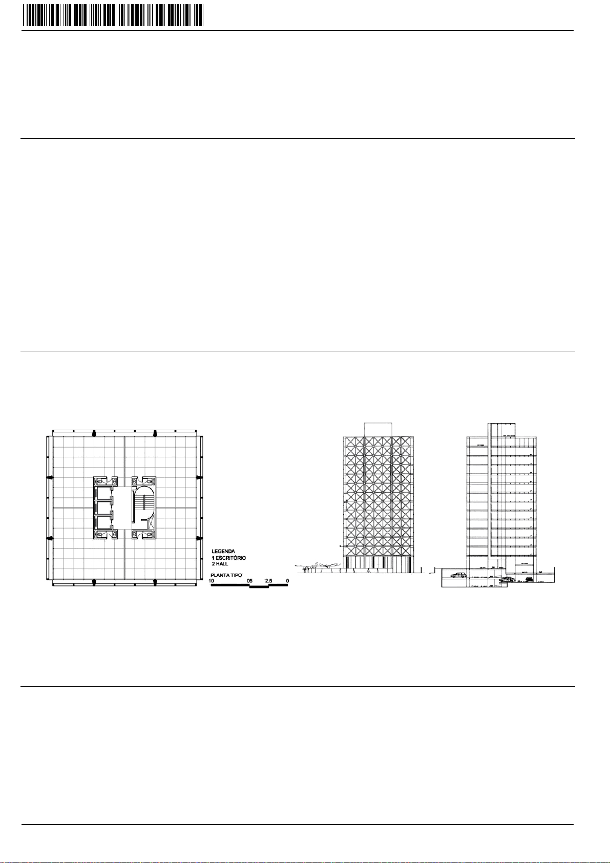 8 TRT11R-Anal.Jud.-Arquitetura-05 29. Considere um projeto de edifício com plantas livres (layout flexível), com vãos superiores a 10 m, baixo peso específico; deformável (para evitar fissuras e flechas excessivas) e com boa capacidade de suporte. Trata-se de (A) laje convencional pré-fabricada (vigotas e trilhos de concreto). (B) laje maciça apoiada sobre vigas e pilares. (C) laje-cogumelo apoiada diretamente sobre pilares sem capitéis. (D) laje lisa apoiada nos pilares com capitéis. (E) laje nervurada apoiada em vigas chatas, ambas protendidas. 30. As patologias na estrutura de edifícios indicam o comprometimento do desempenho no que diz respeito a estabilidade e durabilidade e têm suas causas originadas na fase de projeto, de execução ou utilização. Como prevenção, durante o projeto deve-se (A) considerar a agressividade do meio de implantação e conjuntamente as informações do projeto, materiais e produtos utilizados na execução da obra, produzir um manual de utilização, inspeção e manutenção para garantir a vida útil prevista para a estrutura, conforme ABNT NBR 5.674/1999 – Manutenção de Edificações – Procedimentos. (B) prever as ações permanentes (cargas) e as variáveis diretas e indiretas (ventos, água, temperatura) e dinâmicas e excep- cionais (choques ou vibrações), conforme a ABNT NBR 6.118/2003 – Projeto de Estruturas de Concreto – Procedimento. (C) identificar, segundo a ABNT NBR 12.655/2006 – Concreto: Preparo, controle e recebimento, patologias como: corrosão das armaduras; rigidez inadequada de elementos estruturais; pouco cobrimento da armadura; uso de material inadequado; concreto permeável e recalques da fundação e acompanhar a evolução das patologias. (D) erradicar as patologias que consiste em corrigir pequenos danos (reparo), devolver à estrutura o desempenho original perdido (recuperação), ou aumentar tal desempenho (reforço). (E) no concreto armado, o aço encontra-se no interior de um meio altamente alcalino, uma película que o protege do processo de corrosão e lhe confere vida longa, portanto, não existe o risco de patologias. 31. Na concepção estrutural de um edifício, define-se qual sistema terá capacidade para transmitir as cargas ao solo e garantir a estabilidade global, de modo a não interferir na proposta estética do projeto arquitetônico. Na concepção do edifício Acal em São Paulo, o caráter estético da solução é resultado do partido construtivo estrutural adotado. Observe: 1 1 1 1 2 ELEVAÇÃO PRINCIPAL CORTE Nesse caso, o sistema de contraventamento adotado, foi (A) misto: Tubos de periferia e Núcleo de rigidez. (B) misto: Parede estrutural e Core central. (C) misto: Pórticos e Pilares-parede. (D) Pórticos planos. (E) Pilares-parede. 32. A concepção de um projeto arquitetônico para edifício público deverá buscar soluções diversificadas para responder ao desafio da sustentabilidade. Quanto à adoção de tecnologias: (A) Os “edifícios sustentáveis” são por definição “edifícios inteligentes”. (B) No “edifício inteligente” o projeto arquitetônico deve integrar a rede física de lógica, dados e voz, com os demais subsiste- mas do edifício. (C) No “edifício sustentável” as soluções demandam a independência tecnológica no aproveitamento dos recursos naturais. (D) No “edifício sustentável” a tecnologia pode ser uma aliada visando-se a otimização dos recursos naturais. (E) Os “edifícios inteligentes” são por definição “edifícios sustentáveis”. Caderno de Prova ’05’, Tipo 001 www.pciconcursos.com.br TRT11R-Anal.Jud.-Arquitetura-05 9 33. Para limitar a pressão estática máxima do sistema predial de água fria em um edifício de grande altura, considerando a limitação de espaço útil no interior do edifício, recomenda-se: (A) reservatório intermediário (caixa de quebra-pressão). (B) válvula redutora de pressão. (C) barrilete intermediário. (D) reservatório intermediário com barrilete. (E) dispositivo de controle nas saídas. 34. A iluminação de um ambiente objetiva a visibilidade, segurança e orientação dos seus usuários. Com o tempo de uso, devido ao desgaste e acúmulo de poeira nas luminárias, haverá uma perda ou diminuição da iluminância. Como meio de prevenção recomenda-se (A) utilizar na concepção os fatores determinantes de iluminação adequada combinando a idade, a velocidade e precisão e a refletância de fundo da tarefa, com peso referencial +1 para obter o valor correto de iluminância. (B) orientar os usuários quanto à limpeza periódica das luminárias, ou a substituição das lâmpadas ainda que não estejam queimadas, evitando que o acúmulo de poeira provoque diminuição da iluminância. (C) utilizar luminárias de embutir, com aletas metálicas que controlem o ofuscamento e refletores parabólicos que limitem a angulação do facho luminoso potencializando a iluminância. (D) orientar o uso de iluminação adicional, como meio de suprir eventuais perdas de iluminância, especialmente para tarefas visuais difíceis. (E) utilizar na concepção o fator de depreciação (fd), que eleva o número de luminárias evitando que com o desgaste, o nível de iluminância atinja valores abaixo do recomendado. 35. Os projetos de interiores devem considerar as contingências sociais e culturais no campo antropométrico para intervir ergonomicamente nos ambientes e no mobiliário. Nesse sentido, as intervenções em ambientes de trabalho, devem se basear (A) na planificação dos postos de trabalho setorizando ambientes e atividades de acordo com suas funções. (B) nas atividades desenvolvidas, em especial nas associadas ao uso do computador, que está diretamente relacionado ao crescente número de Distúrbios Osteomusculares Relacionados ao Trabalho (DORT). (C) unicamente na NR 17 – Ergonomia e nas Normas Brasileiras e Regulamentadoras (NBR’s) correlacionadas. (D) na adaptabili