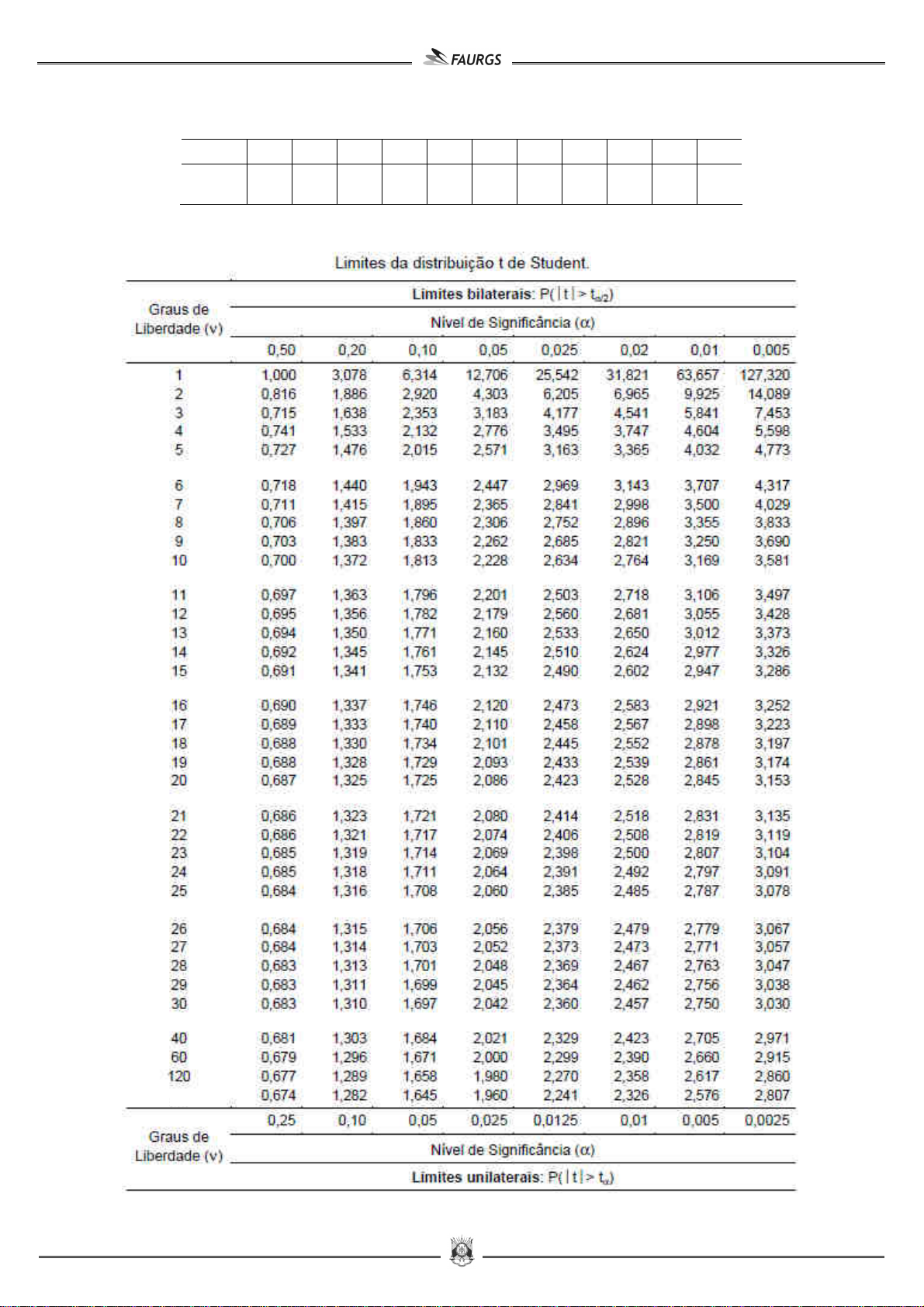 www.pciconcursos.com.br FAURGS – Tribunal de Justiça RS – Edital 43/2014 C 02 – Analista Judiciário – Área de Apoio Especializado: Estatística Pág. 9 Considere os valores tabelados para a estatística χ2 (qui-quadrado) a 5% de significância para diferentes valores de GL (graus de liberdade) abaixo. GL 1 2 3 4 5 6 7 8 9 10 11 2 χ 3,84 5,99 7,81 9,49 11,1 12,6 14,1 15,5 16,9 18,3 19,7 ∞ www.pciconcursos.com.br FAURGS – Tribunal de Justiça RS – Edital 43/2014 C 02 – Analista Judiciário – Área de Apoio Especializado: Estatística Pág. 10 29. Numere a segunda coluna de acordo com a primeira, associando os tipos de gráficos às variáveis observadas em uma empresa X. (1) Histograma (2) Gráfico de Pareto (3) Gráfico de Linhas ( ) Tempo de emprego dos funcionários da empresa ( ) Evolução do consumo mensal de materiais de expediente ( ) Tipos de defeitos apresentados em peças fabricadas A sequência correta de preenchimento dos parênteses, de cima para baixo, é (A) 1 – 3 – 2. (B) 1 – 2 – 3. (C) 2 – 1 – 3. (D) 2 – 3 – 1. (E) 3 – 1 – 2. 30. Um aluno obteve as notas 3,0; 3,5; 4,5 e 6,0 nas quatro avaliações realizadas durante o semestre. O aluno que não consegue a média 6,0 nas quatro avaliações deve realizar o exame final. Na composição da média final, a média das quatro avaliações tem peso 4,0, e a nota do exame final tem peso 6,0. O aluno será considerado aprovado se atingir média final maior ou igual a 5,0. Qual a nota mínima que o aluno em questão deverá obter no exame final para obter aprovação? (A) 4,25. (B) 5,5. (C) 5,75. (D) 6,1. (E) 7,2. 31. A tabela abaixo apresenta a distribuição de frequências (% acumulado) da idade de 2000 vítimas de crimes com armas de fogo em determinado período. Idade (anos) % acum.