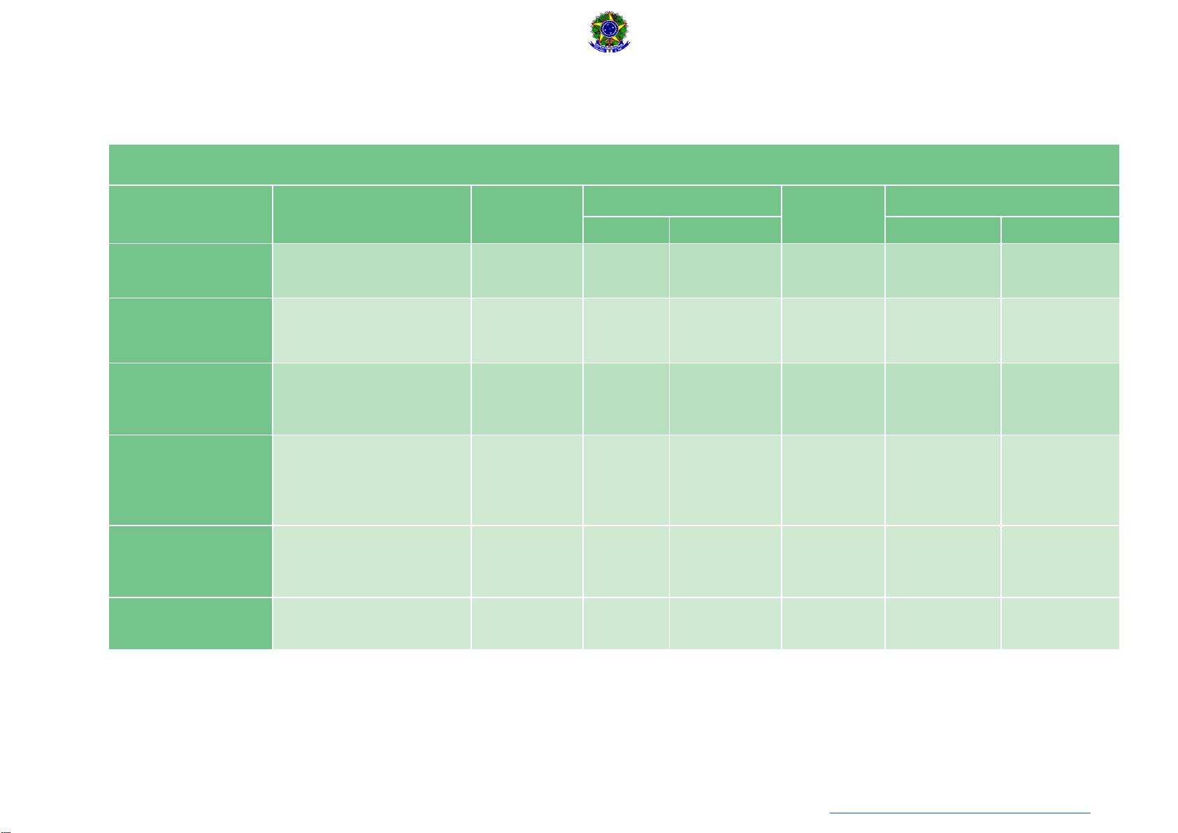 MINISTÉRIO DA SAÚDE SECRETARIA DE VIGILÂNCIA EM SAÚDE E AMBIENTE DEPARTAMENTO DO PROGRAMA NACIONAL DE INUNIZAÇÕES COORDENAÇÃO-GERAL DE INCORPORAÇÃO CIENTÍFICA E IMUNIZAÇÃO SRTVN 701, Via W5 Norte Bloco D – Edifício PO 700 – 6º andar - Asa Norte Brasília/DF CEP: 70719-040 Tel. (61) 3315-3460 Calendário Nacional de Vacinação do Adulto e Idoso VACINA PROTEÇÃO CONTRA COMPOSIÇÃO NÚMERO DE DOSES IDADE RECOMENDADA INTERVALO ENTRE AS DOSES ESQUEMA BÁSICO REFORÇO RECOMENDADO MÍNIMO Hepatite B (HB - recombinante) Hepatite B Antígeno recombinante de superfície do vírus purificado Iniciar ou completar 3 doses, de acordo com histórico vacinal - - 2ª dose: 1 mês após 1ª dose. 3ª dose: 6 meses após 1ª dose. 2ª dose: 1 mês após 1ª dose. 3ª dose: 4 meses após 1ª dose. Difteria e Tétano (dT) Difteria e Tétano Toxoides diftérico e tetânico purificados Iniciar ou completar 3 doses, de acordo com histórico vacinal A cada 10 anos. Em caso de ferimentos graves ou se contatos de difteria, deve-se reduzir este intervalo para 5 anos - 60 dias 30 dias Febre Amarela (VFA - atenuada) Febre Amarela Vírus vivo atenuado Dose única Reforço, caso a pessoa tenha recebido uma dose da vacina antes de completar 5 anos de idade - - - Sarampo, caxumba, rubéola (SCR - atenuada) (Tríplice viral) Sarampo, Caxumba e Rubéola Vírus vivo atenuado 2 doses (20 a 29 anos) Uma dose (30 a 59 anos) (verificar situação vacinal anterior) - - - 30 dias (Se duas doses) Papilomavírus humano 6, 11, 16 e 18 (HPV4 - recombinante)* Papilomavírus Humano 6, 11, 16 e 18 (recombinante) Antígeno recombinante da proteína L1 os vírus 6, 11, 16 e 18 do HPV 3 doses para vítimas de abuso sexual (homens e mulheres) - Faixa etária de 15 a 45 anos 2ª dose: 2 meses após 1ª dose 3ª dose: 6 meses após 1ª dose 2ª dose: 2 meses após 1ª dose 3ª dose: 6 meses após 1ª dose Difteria, Tétano, Pertussis (dTpa - acelular)** Difteria, Tétano e Coqueluche Toxoides diftérico (teor reduzido) + tetânico + pertussis (acelular) purificados Uma dose Uma dose a cada 10 anos A partir dos 18 anos 10 anos 5 anos em caso de ferimentos graves e comunicantes de difteria *Pessoas vítimas de abuso sexual (homens e mulheres), na faixa etária de 9 a 45 anos de idade, possuem recomendação de vacinação contra HPV, nos seguintes esquemas: 02 doses para pessoas de 09 a 14 anos, 11 meses e 29 dias (2ª dose 2 meses após a 1ª); e 03 doses para pessoas de 15 a 45 anos (2ª dose 2 meses após a 1ª; e a 3ª dose 6 meses após a 1ª dose). Pessoas portadoras de Papilomatose Respiratória Recorrente (PPR), a partir de 2 anos de idade, deverão receber 03 doses da vacina HPV (0, 2 e 6 meses). Pessoas de 9 a 45 anos de idade, vivendo com HIV/Aids, transplantados de órgãos sólidos e de medula óssea e pacientes oncológicos, administrar 3 (três) doses da vacina com intervalo de 2 (dois) meses entre a primeira e segunda dose e 6 (seis) meses entre a primeira e terceira dose (0, 2 e 6 meses). Para a vacinação destes grupos, mantém-se a necessidade de prescrição médica. Usuários de Profilaxia Pré-Exposição (PrEP) à HIV/Aids, de 15 a 45 anos, possui recomendação de esquema de 3 doses da vacina (0, 2 e 6 meses), mediante a apresentação de qualquer tipo de comprovação de que faz PrEP. Aqueles que possuem histórico vacinal contra HPV, se incompleto, deverão receber, caso necessário, doses subsequentes para completar o esquema recomendado, conforme a condição especial da indicação e a faixa etária especificada. ** A Vacina dTpa está recomendada para todos os profissionais da saúde, parteiras tradicionais e estagiários da área da saúde que atuam em maternidades, berçários e em unidades de internação neonatal (UTI/UCI convencional e UCI Canguru), atendendo recém-nascidos OBS: As recomendações de uso dos imunobiológicos para pessoas portadoras de imunodeficiência congênita ou adquirida e de outras condições clínicas especiais de morbidades ou exposição a situações de risco, independentemente da idade, encontram-se dispostas no Manual do Centro de Referência de Imunobiológicos Especiais (CRIE), 6 ª edição – MS, 2023, disponível em https://www.gov.br/saude/pt-br/vacinacao/grupos-especiais https://www.gov.br/saude/pt-br/vacinacao/grupos-especiais