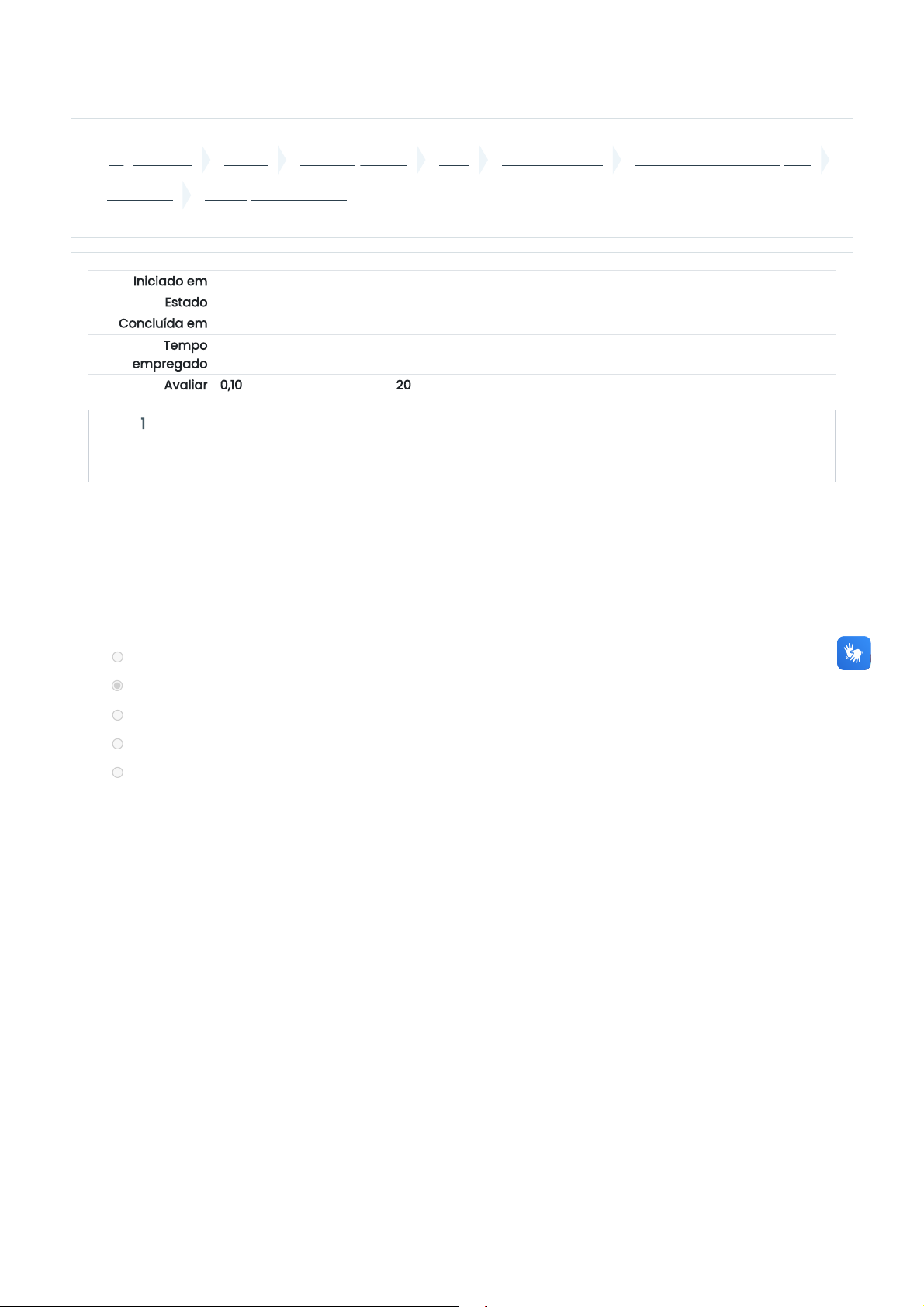 Página inicial Cursos GRADUAÇÃO EAD 2024 Módulo 2 - 2024 2024/2 - Gestão de Projetos UNIDADE III Avaliação - Unidade III Iniciado em sexta, 24 mai 2024, 09:09 Estado Finalizada Concluída em sexta, 24 mai 2024, 10:56 Tempo empregado 1 hora 46 minutos Avaliar 0,10 de um máximo de 0,50(20%) Questão 1 Incorreto Atingiu 0,00 de 0,05 Entre os recursos gerenciáveis, o tempo é o mais escasso. Não pode ser substituído, recuperado, nem pode ter reservas de contingência. Por tais motivos, os processos de gerenciamento do tempo centralizam o controle em um cronograma. Na metodologia do PMI, são sete os processos demandados para o Gerenciamento do Tempo do Projeto. Analise as alternativas a seguir e aponte aquela que NÃO é um dos processos de Gerenciamento do Tempo do Projeto segundo a metodologia do PMI: a. Controlar as atividades b. Estimar os recursos das atividades c. Sequenciar as atividades d. Estimar as durações das atividades e. Definir as atividades A resposta correta é: Controlar as atividades https://ambienteonline.uninga.br/ https://ambienteonline.uninga.br/course/index.php https://ambienteonline.uninga.br/course/index.php?categoryid=1 https://ambienteonline.uninga.br/course/index.php?categoryid=1535 https://ambienteonline.uninga.br/course/index.php?categoryid=1733 https://ambienteonline.uninga.br/course/view.php?id=26180 https://ambienteonline.uninga.br/course/view.php?id=26180§ion=4 https://ambienteonline.uninga.br/mod/quiz/view.php?id=733415 Questão 2 Incorreto Atingiu 0,00 de 0,05 Questão 3 Incorreto Atingiu 0,00 de 0,05 No grupo de processos de planejamento, o gerenciamento de requisitos tem seu foco nas propriedades requeridas para as entregas do projeto ou nas condições que devam ser atendidas (requisito obrigatório ou pré-requisito). Analise as afirmações a seguir, próprias da metodologia para o gerenciamento de requisitos: I. Um requisito pode ser imposto sob diferentes formas, como, por exemplo, o requisito desejável, a restrição ou o critério de aceitação. II. Os requisitos devem ser mensuráveis e documentados de forma descritiva, seguindo estilo de gestão do gerente de projetos. III. Durante todo o ciclo de vida do projeto, os requisitos permanecem inalterados e alinhados ao escopo, portanto, independentes do cronograma. A respeito dessas afirmações, está correto o que consta em qual das alternativas? a. Somente as afirmativas II e III estão corretas b. Somente as afirmativas I e II estão corretas c. Nenhuma das afirmativas está correta. d. Somente a afirmativa I está correta. e. Todas as afirmativas estão corretas. A resposta correta é: Somente a afirmativa I está correta. O Grupo de Processos de Planejamento desenvolve extensa lista de atividades, que cria uma série de planos auxiliares de gerenciamento, mas fica bem determinado no ciclo de vida do projeto no fluxo entre a inicialização e a execução. Nesse fluxo, a documentação tem papel preponderante, conforme considerado no texto a seguir: Os processos de planejamento se orientam pelas premissas e _________ inicial definidos no Termo de Abertura do Projeto e visam ao desenvolvimento de uma entrega específica, que é _________ , que deve reunir todas as informações necessárias à execução do projeto. Qual das alternativas apresenta os processos que preenchem corretamente as lacunas na sentença apresentada? a. as linhas de base do cronograma e custos - o Plano de Gerenciamento do Projeto b. as linhas de base do escopo, cronograma e custos - o Plano de Gerenciamento do Projeto c. o escopo - a Estrutura Analítica do Projeto d. o escopo - o Plano de Gerenciamento do Projeto e. as linhas de base do cronograma e custos - a Estrutura Analítica do Projeto A resposta correta é: o escopo - o Plano de Gerenciamento do Projeto Questão 4 Incorreto Atingiu 0,00 de 0,05 Questão 5 Correto Atingiu 0,05 de 0,05 Os processos de gerenciamento de riscos em projetos requerem muitas vezes o uso de computador e softwares específicos para esse fim. Analise as sentenças a seguir e determine qual delas descreve de forma completa a principal razão de se executar os processos de gerenciamento de riscos. a. Nenhuma das alternativas está correta. b. Para consolidar o nível de conhecimento técnico da equipe de projetos e o grau de liderança do gerente de projetos. c. Para que haja possibilidades de se utilizar um software para esse fim e justificar sua aquisição aos patrocinadores do projeto. d. Para que seja determinada a data de conclusão do projeto em relação às restrições de prazos do mesmo. e. Para submeter a equipe de projetos a grandes desafios, já que se trata de um método complexo e que requer extrema dedicação dos colaboradores. A resposta correta é: Para que seja determinada a data de conclusão do projeto em relação às restrições de prazos do mesmo. O gerenciamento das comunicações do projeto inclui os processos necessários para assegurar que as informações do projeto sejam geradas, coletadas, distribuídas, armazenadas, recuperadas e organizadas de maneira oportuna e apropriada. Analise o texto a seguir, que trata do gerenciamento das comunicações do projeto: A comunicação efetiva conecta a equipe de projeto às diversas partes interessadas, alcançando os diferentes ambientes, oferecendo perspectivas sobre o andamento e os resultados do projeto, para posicionamento transparente das expectativas frente aos interesses. A interação desses processos com as outras áreas de conhecimento é intensa, diversificada e convenientemente realizada nas seguintes dimensões: interna (dentro do projeto) ou externa (clientes, público etc.); formal (______) ou informal (______); vertical (______) ou horizontal (______); oficial ou não oficial; escrita ou oral. Qual das alternativas exemplifica corretamente os processos de comunicação que preenchem corretamente as lacunas na sentença apresentada? a. relatórios - e-mails / mesmos níveis organizacionai
