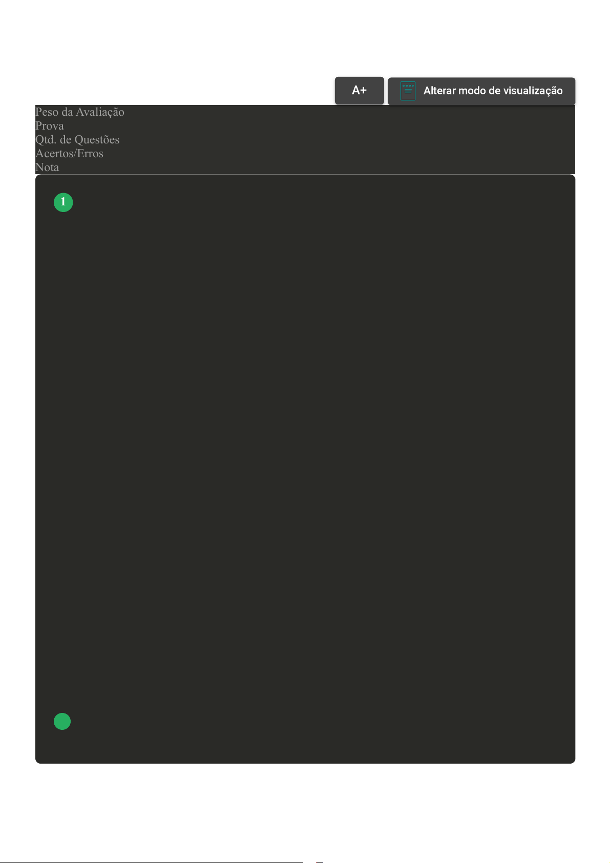 Prova Impressa GABARITO | Avaliação I - Individual (Cod.:988580) Peso da Avaliação 2,00 Prova 89996717 Qtd. de Questões 10 Acertos/Erros 9/1 Nota 9,00 O lastreamento é utilizado para adequar o peso da máquina de acordo com a situação de cada trabalho. Esse trabalho pesado só pode ser efetuado com estabilização do equipamento para melhor operação e esforço. Sobre o contexto, classifique V para as sentenças verdadeiras e F para as falsas: ( ) O lastreamento pode ser efetuado com inserção de água nos pneus como auxílio adicional de peso. ( ) O lastreamento só pode ser efetuado com o auxílio de apoio de três pontos e equilíbrio direcional. ( ) Sempre que uma máquina sofre vibrações, deve-se evitar o lastreamento de tal modo que a operação seja instável. ( ) O lastreamento é uma atividade hidráulica que consiste em apoiar a máquina em terrenos secos. Assinale a alternativa que apresenta a sequência CORRETA: A V - V - F - F. B F - F - V - V. C F - F - V - F. D V - F - F - F. VOLTAR A+ Alterar modo de visualização 1 O sistema de transmissão fornece toda a tração necessária para a operação da máquina agrícola, seja um trator ou uma colhedora. Esse sistema é projetado de acordo com a capacidade de trabalho e aplicação no meio produtivo. Sobre o contexto, classifique V para as sentenças verdadeiras e F para as falsas: ( ) As máquinas agrícolas podem ser utilizadas para o transporte, para tracionar e para fornecer potência aos implementos como roçadeiras e pulverizadores. ( ) Entre os diversos componentes de um trator agrícola estão o sistema de transmissão, o sistema hidráulico, o motor e os rodados, estruturas essas organizadas em conjunto no chassi. ( ) O chassi é o componente dos tratores responsável pela geração de potência, sendo formado pelos pistões onde ocorre a combustão interna. ( ) Os motores utilizados nos tratores agrícolas utilizam predominantemente a gasolina como combustível, sendo que seu funcionamento ocorrem em apenas dois tempos de combustão. Assinale a alternativa que apresenta a sequência CORRETA: A F - V - F - V. B F - V - V - F. C V - F - F - V. D V - V - F - F. A Revolução Agrícola causou certo impacto social por desenvolver diferentes formas de trabalho e, em conjunto com a Revolução Industrial, impulsionou novas formas de construção de máquinas, desenvolvendo novos postos de trabalho. Sobre o contexto, classifique V para as sentenças verdadeiras e F para as falsas: ( ) Com o surgimento de novos postos de trabalho no meio urbano, a cultura agrícola foi obrigada a se profissionalizar. 2 3 ( ) A Revolução Agrícola não causou impacto econômico significativo, o que retardou o processo de profissionalização da agricultura. ( ) O desenvolvimento de novas culturas só foi possível graças à Revolução Agrícola, porém não mexeu nos postos de trabalho. ( ) O impacto econômico negativo causado pela Revolução Agrícola é o processo de automatização da agricultura, sem impactos sociais. Assinale a alternativa que apresenta a sequência CORRETA: A F - F - F - V. B V - F - F - F. C F - F - V - F. D F - V - F - F. A agricultura de precisão foi desenvolvida a partir da revolução tecnológica criada por projetos de máquinas e implementos que fornecem melhores resultados, com baixo esforço e uso eficiente da energia de operação. A respeito do desenvolvimento da agricultura de precisão, analise as afirmativas a seguir: I- As máquinas e implementos agrícolas são projetados para realizar atividades específicas, sendo por essa razão, destinados apenas para operações em grandes lavouras. II- O rendimento e as funções de cada constituinte de uma máquina agrícola devem ser observados na aquisição, devendo-se escolher sempre a inovação mais atual e de maior custo. III- As inovações na área de mecanização agrícola envolvem o uso de diversos instrumentos e sensores, permitindo reconhecer e atuar de forma a aumentar a qualidade e precisão dos trabalhos. Assinale a alternativa CORRETA: 4 A Somente a afirmativa II está correta. B As afirmativas II e III estão corretas. C Somente a afirmativa III está correta. D As afirmativas I e II estão corretas. Todos os produtos que são consumidos nas mesas do mundo possuem um elemento que advém do campo. O processo de mecanização contribui para a disponibilidade de mais alimentos conforme a demanda comercial. A respeito do consumo de produtos agrícolas, assinale a alternativa CORRETA: A Com o aumento da população, houve a necessidade de se produzir mais alimentos e, ao mesmo tempo, busca-se o uso racional dos recursos naturais. B O processo de modernização inviabilizou a produção agrícola, fazendo com que os preços fiquem encarecidos e os produtores abandonem as propriedades. C A mecanização é responsável por tornar os produtos mais caros, pois a tecnologia empregada demanda muitos insumos e reduziu a produtividade. D A demanda por alimentos deve-se ao consumismo de países desenvolvidos, que efetuam baixa distribuição de comida, enquanto a agricultura não consegue suprir essa necessidade. A partir da década de 1960, a chamada Revolução Verde, resultou na incorporação de diversas tecnologias no campo. Esse período foi marcado por grandes mudanças nos processos produtivos. Com base nesse contexto, assinale a alternativa CORRETA: 5 Revisar Conteúdo do Livro 6 A A revolução verde se caracterizava pela utilização de tecnologias de forma intensiva, como a mecanização e a utilização de insumos e agroquímicos. B Algumas vantagens da revolução verde foram a dependência de pacotes tecnológicos externos, além da degradação e uso sem critério dos recursos naturais. C Atualmente se incentiva a manutenção das atividades desenvolvidas em meados do século XX, por serem práticas sustentáveis e que não geram impactos ambientais. D Ações como o uso de agroquímicos e o melhoramento genético de plantas