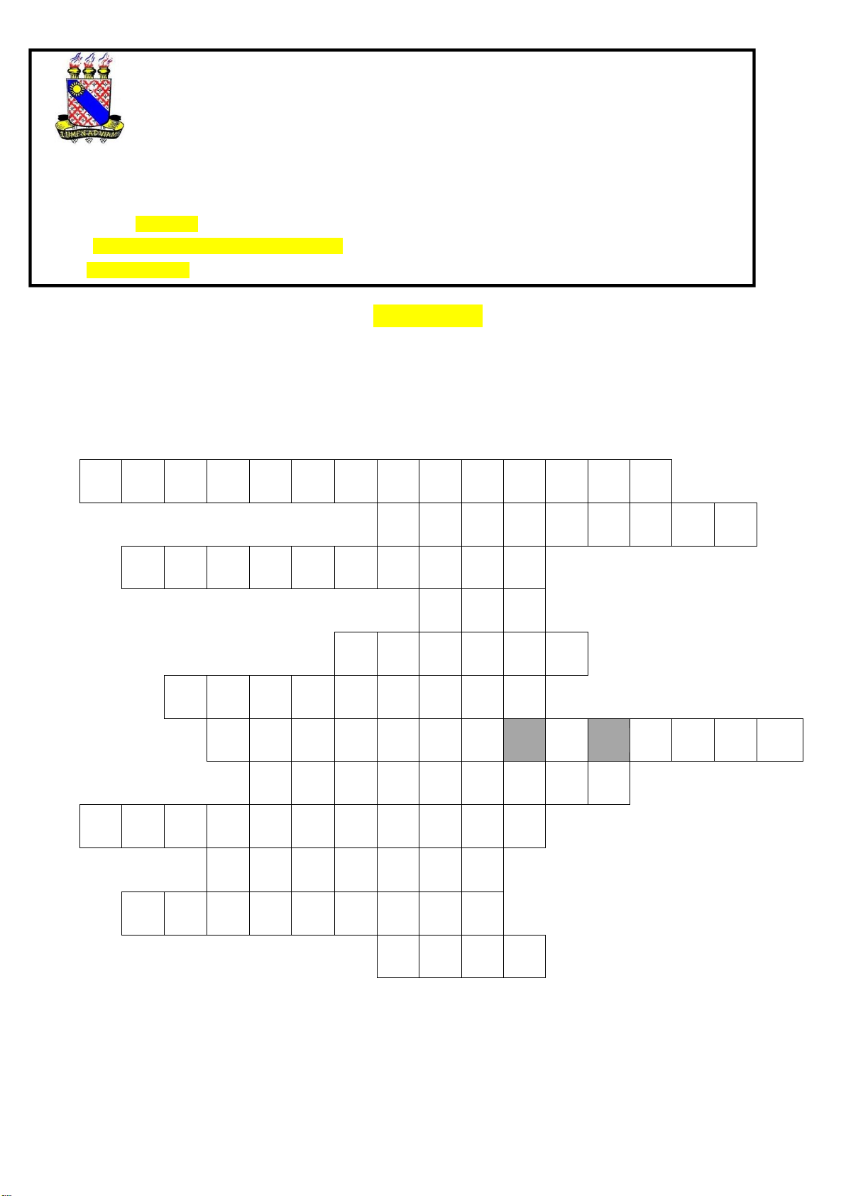 ATIVIDADE 2 Complete a cruzadinha de acordo com as respostas dos itens. 1 2 C O N S T I T U C I O N A L 3 S O B E R A N I A 4 P R E S I D E N T E 5 S T F 6 E S T A D O 7 R E P Ú B L I C A 8 O I T E N T A E O I T O 9 E X E C U T I V O 10 L E G I S L A T I V O 11 J U S T I Ç A 12 F E D E R A Ç Ã 0 13 P O V O UNIVERSIDADE ESTADUAL DO CEARÁ - UECE SECRETARIA DE APOIO ÀS TECNOLOGIAS EDUCACIONAIS - SATE CENTRO DE ESTUDOS SOCIAIS APLICADOS – CESA CURSO: Ciências Contábeis DISCIPLINA: Instituições de Direito Público e Privado PROFESSOR: KELIANE ALUNO: FRANCISCO LINDEMBERG DE LIMA POLO: UAB - RUSSAS CARGA HORÁRIA: OFERTA: 2024.1 1. Lei orgânica e fundamental de uma nação, escrita ou não escrita, que esclarece o caráter e a concepção do seu governo, que estabelece os princípios básicos pelos quais sua vida interna se regula, que organiza o governo, ordenando, distribuindo e limitando as funções dos seus diferentes departamentos e descrevendo a extensão e a maneira do exercício dos poderes soberanos. Constituição 2. Ramo do direito público que estuda a lei de organização do Estado. : Direito Constitucional 3. É um dos fundamentos da República Federativa do Brasil (art. 1º, I, da Constituição).: A soberania 4. Cargo máximo do Poder Executivo: Presidente da República 5. Principal órgão do Poder Judiciário: Supremo Tribunal Federal (STF) 6. Pessoa jurídica, com autonomia para tomar suas próprias decisões, cujo objetivo é única e exclusivamente cuidar dos direitos e dos interesses da sociedade que o formou. A maneira pela qual seu povo está organizado e tem soberania sobre o território que lhe pertence: Estado 7. O Brasil adota qual forma de governo: República 8. A Constituição vigente foi promulgada em qual ano? 1988 9. Poder da União cuja função não é simplesmente executar as leis. A sua função é, na verdade, tomar conta de uma importante atividade do Estado: a Administração Pública: Poder Executivo 10. Poder que se encarrega de elaborar as leis em conformidade com as necessidades da sociedade: Poder Legislativo 11. Poder Judiciário é o Poder da União que julga os conflitos entre as pessoas envolvidas para decidir qual é a solução mais apropriada segundo critérios de _ .RESP: Justiça 12. O Brasil adota como forma de Estado: Federação 13. É um dos elementos do Estado, formado pelo componente humano, a sociedade. : Povo