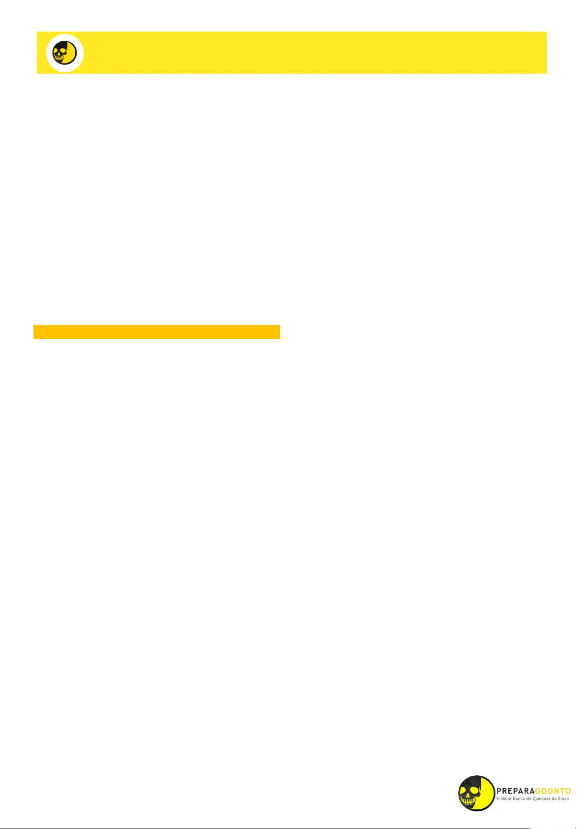 12 investigações, a partir da evolução do caso. Assinale a alternativa que contem o SIS que completa CORRETAMENTE o trecho acima: a) SINAN. b) SINASC. c) SIH/SUS. d) SAI/SUS. e) SIM. 20. De acordo com a Portaria GM/MS nº 204/2016, são agravos de notificação compulsória, EXCETO: a) Poliomielite. b) Raiva humana. c) Hantavirose. d) Neurocisticercose. e) Óbito com suspeita de doença pelo vírus Zika. CONHECIMENTOS ESPECÍFICOS 21. A determinação do diagnóstico endodôntico correto representa etapa inicial do tratamento, cuja responsabilidade pelo êxito ou fracasso depende do profissional e das inúmeras adversidades relacionadas não somente com alterações fisiopatológicas, mas também à manifestação do mecanismo da dor, fatores morfo-estruturais condicionados à idade do paciente, à intensidade e frequência do dano pulpar, entre outros fatores. Para tanto, uma das ferramentas de diagnóstico é a realização de testes de vitalidade pulpar (Medeiros et al.2010). Dos diversos testes de vitalidade pulpar, assinale a alternativa que apresenta aquele que deve ser utilizado em último caso, pois se caracteriza muito invasivo e danoso à polpa. a) Teste de cavidade. b) Teste térmico. c) Teste elétrico. d) Teste de palpação. e) Teste de percussão. 22. Paciente de 21 anos de idade, chegou para atendimento se queixando de “dentes desgastados”. Na análise clínica, foi observada perda de estrutura dentária, no nível oclusal em dentes posteriores e borda incisal de dentes anteriores, sem características de lesão cariosa e com aspecto de dentes polidos. Segundo esses achados, podemos caracterizar essas lesões não cariosas como: a) Abfração dentária. b) Abrasão dentária. c) Atrição dentária. d) Erosão dentária. e) Hipoplasia de esmalte. 23. Os cimentos de ionômero de vidro (CIV) são materiais que consistem de partículas inorgânicas de vidro dispersas numa matriz insolúvel de hidrogel. As partículas de vidro têm função de material de preenchimento e são fonte de cátions, para formação de ligações cruzadas com as cadeias poliméricas. Dentre as muitas propriedades do CIV, destaca-se seu potencial de liberação de flúor. Quanto a essa característica, é INCORRETO afirmar que: a) Dentre os materiais fluoretados, os cimentos de ionômero de vidro têm demonstrado maior liberação desse elemento, principalmente devido à sua reação de presa peculiar (geleificação). b) Através da liberação de íons flúor, o cimento de ionômero de vidro consegue manter ao seu redor um ambiente propício à remineralização, pois o flúor interfere no metabolismo das bactérias, se liga ao esmalte tornando-o mais resistente aos ácidos e diminui a desmineralização. c) A liberação progressiva do flúor, pelo CIV, é uma característica que depende unicamente do paciente através de seus cuidados com a saúde bucal, decorrentes de orientação de higiene bucal. d) A utilização do flúor, além de melhorar as propriedades de manipulação e a resistência, confere ao material uma propriedade anticariogênica, prevenindo a instalação de novas lesões cariosas. e) A liberação de flúor pelo cimento de ionômero de vidro pode ser afetada por alguns fatores, incluindo a composição do cimento; a proporção pó e líquido usada no preparo do material e o método de manipulação do material. 24. A exodontia é considerado o último recurso terapêutico possível na limitação de danos, em atendimento odontológico. Sua indicação deve ser bem especificada e a conduta cirúrgica deve obedecer aos protocolos vigentes. Em relação à necessidade de exodontia do primeiro molar inferior esquerdo, pode-se adotar os seguintes fórceps: