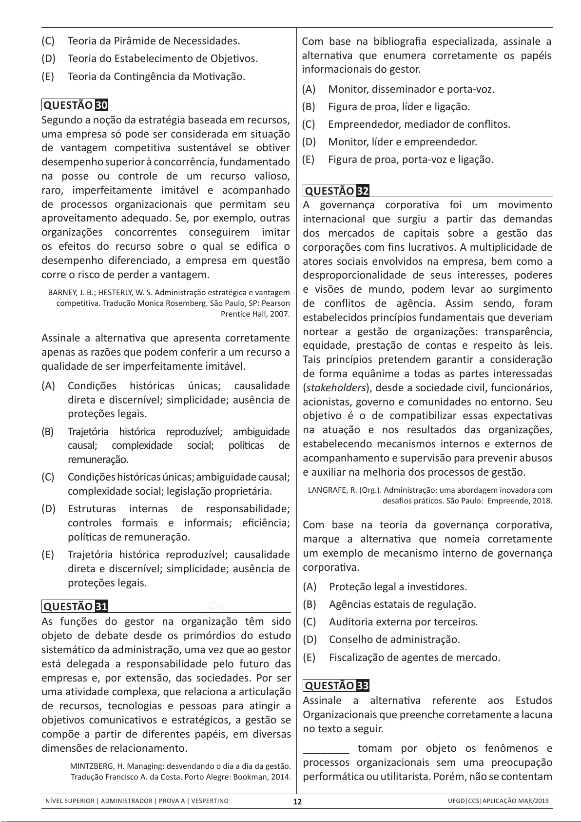 pcimarkpci MDAwMDowMDAwOjAwMDA6MDAwMDowMDAwOmZmZmY6YmZiOTphZTBl:U2F0LCAyMiBNYXIgMjAyNSAyMjoxNDozNyAtMDMwMA== www.pciconcursos.com.br NÍVELà“UPERIORà|àáDMINI“TRáDORà|àPROVáàáà|àVE“PERTINO UFGD|CC“|áPLICáÇÃOàMáR/ C à Teo iaàdaàPi ideàdeàNe essidades. D à Teo iaàdoàEsta ele i e toàdeàO jei os.à E à Teo iaàdaàCo i g iaàdaàMoi aç o. QUESTÃO QUESTÃO QUESTÃO QUESTÃO “egu doàaà oç oàdaàest at giaà aseadaàe à e u sos,à u aàe p esaàs àpodeàse à o side adaàe àsituaç oà deà a tage à o petiti aà suste t elà seà o ti e à dese pe hoàsupe io à à o o ia,àfu da e tadoà aà posseà ouà o t oleà deà u à e u soà alioso,à a o,à i pe feita e teà i it elà eà a o pa hadoà deà p o essosà o ga iza io aisà ueà pe ita à seuà ap o eita e toàade uado.à“e,àpo àe e plo,àout asà o ga izaç esà o o e tesà o segui e à i ita à osà efeitosà doà e u soà so eà oà ualà seà edifi aà oà dese pe hoà dife e iado,à aà e p esaà e à uest oà o eàoà is oàdeàpe de àaà a tage .à BáRNEY,àJ.àB.;àHE“TERLY,àW.à“.àád i ist aç oàest at gi aàeà a tage à o petiti a.àT aduç oàMo i aàRose e g.à“ oàPaulo,à“P:àPea so à P e ti eàHall,à . ássi aleà aà alte ai aà ueà ap ese taà o eta e teà ape asàasà az esà ueàpode à o fe i àaàu à e u soàaà ualidadeàdeàse ài pe feita e teài it el. á à Co diç esà hist i asà ú i as;à ausalidadeà di etaàeàdis e í el;àsi pli idade;àaus iaàdeà p oteç esàlegais. B à T ajet iaà hist i aà ep oduzí el;à a iguidadeà ausal;à o ple idadeà so ial;à políi asà deà e u e aç o. C à Co diç esàhist i asàú i as;àa iguidadeà ausal;à o ple idadeàso ial;àlegislaç oàp op iet ia. D à Est utu asà i te asà deà espo sa ilidade;à o t olesà fo aisà eà i fo ais;à ei i ia;à políi asàdeà e u e aç o. E à T ajet iaà hist i aà ep oduzí el;à ausalidadeà di etaàeàdis e í el;àsi pli idade;àaus iaàdeà p oteç esàlegais. ásà fu ç esà doà gesto à aà o ga izaç oà t à sidoà o jetoà deà de ateà desdeà osà p i diosà doà estudoà siste ti oàdaàad i ist aç o,àu aà ezà ueàaoàgesto à est à delegadaà aà espo sa ilidadeà peloà futu oà dasà e p esasà e,à po à e te s o,à dasà so iedades.à Po à se à u aàati idadeà o ple a,à ueà ela io aàaàa ti ulaç oà deà e u sos,à te ologiasà eà pessoasà pa aà ati gi à aà o jeti osà o u i ati osà eà est at gi os,à aà gest oà seà o p eà aà pa ti à deà dife e tesà pap is,à e à di e sasà di e s esàdeà ela io a e to.à MINT)BERG,àH.àMa agi g:àdes e da doàoàdiaàaàdiaàdaàgest o.à T aduç oàF a is oàá.àdaàCosta.àPo toàáleg e:àBook a ,à .à Co à aseà aà i liog aiaà espe ializada,à assi aleà aà alte ai aà ueà e u e aà o eta e teà osà pap isà i fo a io aisàdoàgesto . á à Mo ito ,àdisse i ado àeàpo ta- oz. B à Figu aàdeàp oa,àlíde àeàligaç o. C à E p ee dedo ,à ediado àdeà o litos. D à Mo ito ,àlíde àeàe p ee dedo . E à Figu aàdeàp oa,àpo ta- ozàeàligaç o. áà go e a çaà o po ati aà foià u à o i e toà i te a io alà ueà su giuà aà pa ti à dasà de a dasà dosà e adosà deà apitaisà so eà aà gest oà dasà o po aç esà o àfi sàlu ati os.àáà ultipli idadeàdeà ato esà so iaisà e ol idosà aà e p esa,à e à o oà aà desp opo io alidadeà deà seusà i te esses,à pode esà eà is esà deà u do,à pode à le a à aoà su gi e toà deà o flitosà deà ag ia.à ássi à se do,à fo a à esta ele idosàp i ípiosàfu da e taisà ueàde e ia à o tea à aà gest oà deà o ga izaç es:à t a spa ia,à e uidade,à p estaç oà deà o tasà eà espeitoà sà leis.à Taisà p i ípiosà p ete de à ga a ti à aà o side aç oà deà fo aà e u i eà aà todasà asà pa tesà i te essadasà stakeholders ,àdesdeàaàso iedadeà i il,àfu io ios,à a io istas,àgo e oàeà o u idadesà oàe to o.à“euà o jeti oà à oà deà o pati iliza à essasà e pe tati asà aà atuaç oà eà osà esultadosà dasà o ga izaç es,à esta ele e doà e a is osà i te osà eà e te osà deà a o pa ha e toàeàsupe is oàpa aàp e e i àa usosà eàau ilia à aà elho iaàdosàp o essosàdeàgest o. LáNGRáFE,àR.à O g. .àád i ist aç o:àu aàa o dage ài o ado aà o à desafiosàp ti os.à“ oàPaulo:ààE p ee de,à . Co à aseà aà teo iaà daà go e a çaà o po ai a,à a ueà aà alte ai aà ueà o eiaà o eta e teà u à e e ploà deà e a is oà i te oà deà go e a çaà o po ai a. á à P oteç oàlegalàaài esido es. B à ág iasàestataisàdeà egulaç o. C à áudito iaàe te aàpo àte ei os. D à Co selhoàdeàad i ist aç o. E à Fis alizaç oàdeàage tesàdeà e ado. ássi aleà aà alte ai aà efe e teà aosà Estudosà O ga iza io aisà ueàp ee heà o eta e teàaàla u aà oàte toàaàsegui . ________à to a à po à o jetoà osà fe e osà eà p o essosà o ga iza io aisà se à u aà p eo upaç oà pe fo ti aàouàutilita ista.àPo ,à oàseà o te ta à pcimarkpci MDAwMDowMDAwOjAwMDA6MDAwMDowMDAwOmZmZmY6YmZiOTphZTBl:U2F0LCAyMiBNYXIgMjAyNSAyMjoxNDozNyAtMDMwMA== www.pciconcursos.com.br NÍVELà“UPERIORà|àáDMINI“TRáDORà|àPROVáàáà|àVE“PERTINO UFGD|CC“|áPLICáÇÃOàMáR/ ape asà o à aà des iç oà deà u aà ealidadeà dada,à asà so etudoà seà dedi a à à efle oà ap ofu dadaà dessesào jetosà o àoài tuitoàdeàde u ia àasàfo asà deà e plo aç oà i e e tes,à e à o oà p o o e à aà e a ipaç oàdeà pessoas,à g upos,à lassesà eà es oà so iedades,àdasà elaç esàdeàop ess oào se adasà asà o ga izaç esà o te po eas. á à ásàTeo iasàdaàád i ist aç o. B à OsàEstudosàC íi osàdeàGest o.à C à ásàá o dage sàFu io alistas. D à OsàTe i osàI te p etai istas.à E à ásàEs olasàCie íi aàeàCl ssi a. QUESTÃO QUESTÃO Leiaàoàte toàaàsegui . áoàlo goàdasàduasà