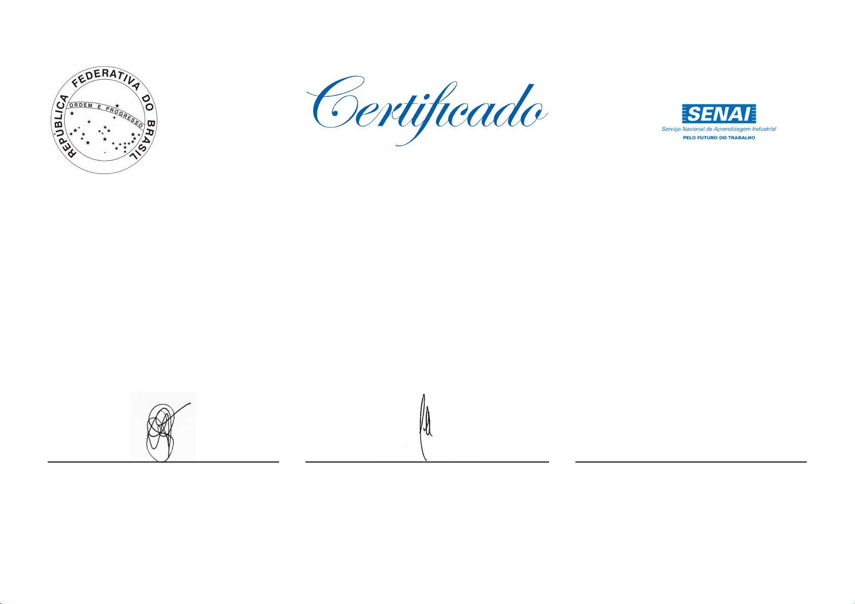 EVERTON ARAUJO ALVES, MINEIROS, 25 de janeiro de 2025 ALBINO CAUSSERO DE ANDRADE Diretor(a) O(A) Diretor(a) da SENAI MINEIROS, credenciada pelo Ato legal de Funcionamento: Resolução de renovação de credenciamento nº 008/2022, de 23 de novembro de 2022, do Conselho Regional do SENAI Goiás, no uso de suas atribuições, confere o certificado de Qualificação Profissional em ELETRICISTA DE INSTALAÇÕES INDUSTRIAIS, com a duração de 160 horas a de nacionalidade brasileira, natural de GUARULHOS - SP, nascido (a) em 11 de julho de 1988, documento de identificação CPF nº 369.572.368-89, a fim de que possa gozar de todos os direitos e prerrogativa legais, tendo em vista a conclusão do curso na data de 21 de janeiro de 2025. ARIANNE DA SILVA AVILA Secretário(a) Escolar EVERTON ARAUJO ALVES Aluno(a) Portaria n° 004/2023 Portaria n° 003/2024 SENAI MINEIROS Serviço Nacional de Aprendizagem Industrial - Departamento Regional de Goiás Competências desenvolvidas: Executa, mantém e repara instalações elétricas industrial, de acordo com projetos e em conformidade com normas técnicas, regulamentadoras, ambientais e de segurança vigentes, selecionando, manuseando, instalando e operando equipamentos, componentes e instrumentos, com uso de ferramentas apropriadas à execução das atividades. ARIANNE DA SILVA AVILA Certificado registrado sob nº 12 Folha 11 Livro 31 De acordo , Secretário(a) Escolar MINEIROS-GO, 25 de janeiro de 2025 CI 5836438 SSP/GO Portaria n° 004/2023