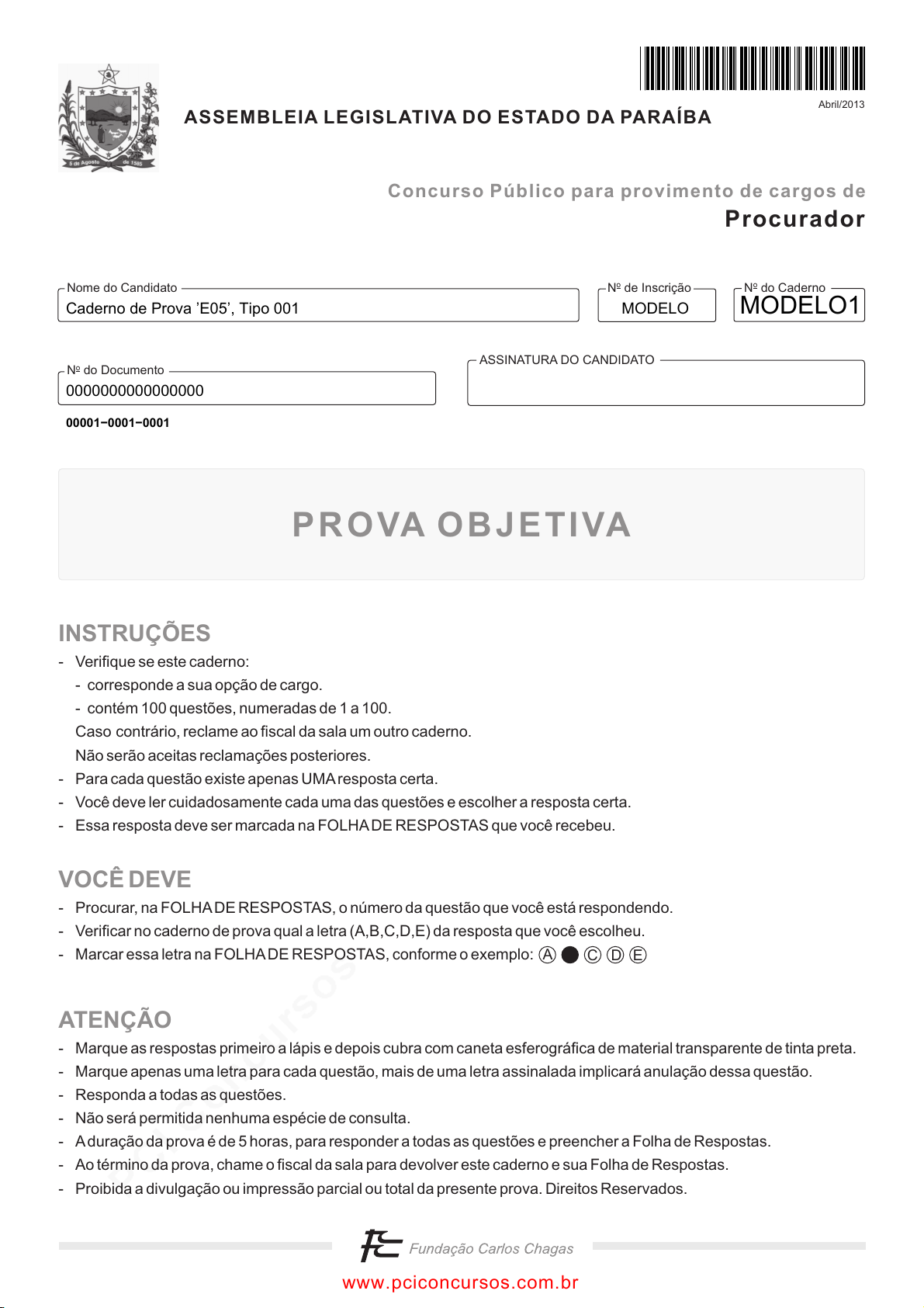 Caderno de Prova ’E05’, Tipo 001 MODELO