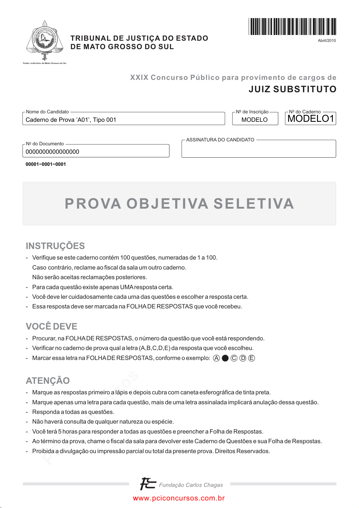 pcimarkpci MDAwMDowMDAwOjAwMDA6MDAwMDowMDAwOmZmZmY6MmQ4YzpjMWIx:U3VuLCAyMyBNYXIgMjAyNSAxODowOToxMyAtMDMwMA== www.pciconcursos.com.br INSTRUÇÕES VOCÊ DEVE ATENÇÃO - Verifique se este caderno contém 100 questões, numeradas de 1 a 100. Caso contrário, reclame ao fiscal da sala um outro caderno. Não serão aceitas reclamações posteriores. - Para cada questão existe apenas UMAresposta certa. - Você deve ler cuidadosamente cada uma das questões e escolher a resposta certa. - Essa resposta deve ser marcada na FOLHADE RESPOSTAS que você recebeu. - Procurar, na FOLHADE RESPOSTAS, o número da questão que você está respondendo. - Verificar no caderno de prova qual a letra (A,B,C,D,E) da resposta que você escolheu. - Marcar essa letra na FOLHADE RESPOSTAS, conforme o exemplo: - Marque as respostas primeiro a lápis e depois cubra com caneta esferográfica de tinta preta. - Marque apenas uma letra para cada questão, mais de uma letra assinalada implicará anulação dessa questão. - Responda a todas as questões. - Não haverá consulta de qualquer natureza ou espécie. - Você terá 5 horas para responder a todas as questões e preencher a Folha de Respostas. - Ao término da prova, chame o fiscal da sala para devolver este Caderno de Questões e sua Folha de Respostas. - Proibida a divulgação ou impressão parcial ou total da presente prova. Direitos Reservados. A C D E N do CadernooN de Inscriçãoo ASSINATURA DO CANDIDATO N do Documentoo Nome do Candidato Abril/2010TRIBUNAL DE JUSTIÇA DO ESTADO DE MATO GROSSO DO SUL PROVA OBJETIVA SELETIVA JUIZ SUBSTITUTO XXIX Concurso Público para provimento de cargos de Caderno de Prova ’A01’, Tipo 001 MODELO 0000000000000000 MODELO1 00001−0001−0001 www.pciconcursos.com.br www.pciconcursos.com.br pcimarkpci MDAwMDowMDAwOjAwMDA6MDAwMDowMDAwOmZmZmY6MmQ4YzpjMWIx:U3VuLCAyMyBNYXIgMjAyNSAxODowOToxMyAtMDMwMA== www.pciconcursos.com.br 2 TJUMS-Juiz-Substituto Língua Portuguesa Atenção: As questões de números 1 a 4 referem-se ao texto abaixo. 1 5 10 15 20 25 30 35 40 Longe de mim a convicção de que a palavra arcaica diz a verdade, e de que a nós cabe a ela retornar − armados dos novos meios da exegese − para descobrir os segredos permanentes do “coração humano”, da “natureza humana”, do “estar-no-mundo”. Por haver enunciado um primeiro sistema de representação − mais simples, mais vigoroso −, a palavra arcaica não tem outro privilégio, na minha opinião, se não o de ter sido a primeira a aparecer, e de ter por vezes imposto às eras consecutivas conservá-la na memória (consciente ou inconscientemente), para a repetir, transpor ou contradizer. O valor etimológico que se tem o direito de atribuir à palavra arcaica não implica mais do que uma relação de derivação: para atribuir-lhe uma autoridade superior, seria preciso admitir, por princípio, que tudo que foi anunciado no começo conservou a mais alta validade possível. O que foi proferido, imaginado, narrado na mais distante profundeza temporal a que possamos remontar não faz parte, por isso, das bases mais “profundas” do indivíduo. [...] No entanto, a imagem do passado conservado é sedutora. Essa imagem não cessou de nos manter sob seu encanto. Para justificá-la, é comum tomar de empréstimo à biologia a noção de herança filogenética. Conhece-se o uso que dela fez Freud, com a ideia do “fantasma originário” etc. Mitos e arquétipos reclamam o mesmo estatuto: sua antecedência, na ordem genética, parece dever assegurar-lhes uma posição e uma função centrais, na ordem estrutural. Respeitamo-los como se, por pertencer ao passado da espécie, adquirissem títulos suficientes para constituir a interioridade (o dentro do indivíduo). Quem quer que, a partir daí, se pusesse à escuta da palavra arcaica, empreenderia uma viagem para dentro, orientar-se-ia para esse lugar nuclear de si próprio em que perdura e persiste a origem... Pensamento sedutor, e cuja sedução está ligada a um postulado que escapa a toda demonstração: esse postulado é o do caráter universal e pregnante da palavra arcaica (ou do acontecimento arcaico). Na falta do que não se compreenderia que sua herança tenha podido inscrever-se posteriormente em todos os indivíduos. [...] (Jean Starobinski. À guisa de epílogo: “Odeio como as portas do Hades...”. In As máscaras da civilização : ensaios. Trad. Maria Lúcia Machado. São Paulo: Companhia das Letras, 2001, p. 261-262) 1. No processo de argumentação, o autor (A) nega uma convicção para desviar contra-argumen- tos imediatos e, após detalhar os fundamentos da crença negada, assume-a sem restrição. (B) toma como pressuposto que considerá-la como ten- do consigo a verdade é um privilégio geralmente outorgado à palavra arcaica. (C) advoga como dever moral de sua geração, em razão do aprimoramento de um saber prático, o retorno à palavra dos antigos. (D) concebe a palavra arcaica como aquela que, em virtude da sua simplicidade, expressa de maneira mais vigorosa e definitiva o que se abriga no mais íntimo do ser. (E) considera como inerente e inevitável à palavra arcai- ca, por sua natureza inaugural, instituir-se como ponto de referência das eras que a sucedem. 2. A expressão que está adequadamente traduzida, conside- rado seu contexto, é: (A) armados dos novos meios da exegese / munidos das conquistas da ciência que estuda as culturas dos povos antigos através do material fóssil que restou da vida desses povos. (B) haver enunciado um primeiro sistema de representa- ção / ter definido a estrutura essencial que permite à mente a operação de manter presente em si mesma a imagem de um objeto que se encontra fora da consciência. (C) tomar de empréstimo à biologia a noção de herança filogenética / valer-se temporariamente de conceito próprio da botânica, que diz respeito especifica- mente à história evolutiva dos vegetais. (D) adquirissem títulos suficient