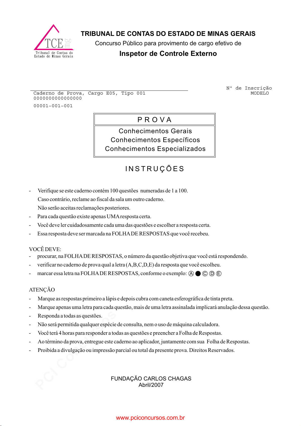 pcimarkpci MDAwMDowMDAwOjAwMDA6MDAwMDowMDAwOmZmZmY6YjViZjozZTlj:U3VuLCAyMyBNYXIgMjAyNSAwNTowNjo0OCAtMDMwMA== www.pciconcursos.com.br I N S T R U Ç Õ E S Conhecimentos Gerais Conhecimentos Específicos Conhecimentos Especializados P R O V A FUNDAÇÃO CARLOS CHAGAS Abril/2007 TRIBUNAL DE CONTAS DO ESTADO DE MINAS GERAIS Concurso Público para provimento de cargo efetivo de Inspetor de Controle Externo - Verifique se este caderno contém 100 questões numeradas de 1 a 100. Caso contrário, reclame ao fiscal da sala um outro caderno. Não serão aceitas reclamações posteriores. - Para cada questão existe apenas UMAresposta certa. - Você deve ler cuidadosamente cada uma das questões e escolher a resposta certa. - Essa resposta deve ser marcada na FOLHADE RESPOSTAS que você recebeu. VOCÊ DEVE: - procurar, na FOLHADE RESPOSTAS, o número da questão objetiva que você está respondendo. - verificar no caderno de prova qual a letra (A,B,C,D,E) da resposta que você escolheu. - marcar essa letra na FOLHADE RESPOSTAS, conforme o exemplo: ATENÇÃO - Marque as respostas primeiro a lápis e depois cubra com caneta esferográfica de tinta preta. - Marque apenas uma letra para cada questão, mais de uma letra assinalada implicará anulação dessa questão. - Responda a todas as questões. - Não será permitida qualquer espécie de consulta, nem o uso de máquina calculadora. - Você terá 4 horas para responder a todas as questões e preencher a Folha de Respostas. - Ao término da prova, entregue este caderno ao aplicador, juntamente com sua Folha de Respostas. - Proibida a divulgação ou impressão parcial ou total da presente prova. Direitos Reservados. A C D E ____________________________________________________ Caderno de Prova, Cargo E05, Tipo 001 0000000000000000 00001−001−001 Nº de Inscrição MODELO www.pciconcursos.com.br pcimarkpci MDAwMDowMDAwOjAwMDA6MDAwMDowMDAwOmZmZmY6YjViZjozZTlj:U3VuLCAyMyBNYXIgMjAyNSAwNTowNjo0OCAtMDMwMA== www.pciconcursos.com.br 2 TCEMG-Inspetor-Con-Externo-C-Contab-E05 CONHECIMENTOS GERAIS Português Atenção: As questões de números 1 a 15 referem-se ao texto que segue. A curiosidade das crianças O escritor tcheco Milan Kundera, em seu mais famoso romance, “A Insustentável Leveza do Ser”, presta uma homenagem à curiosidade das crianças: “De fato, as únicas questões realmente sérias são aquelas que até uma criança pode formular. Elas são as questões sem resposta. Uma questão sem resposta é uma barreira intransponível. Em outras palavras, são as questões sem resposta que definem as limitações das possibilidades humanas, as que descrevem as fronteiras da existência humana”. Que adulto nunca se deparou com uma criança fuzilando perguntas, “Por que isso? Mas por que aquilo?” Pena que tantos adultos tenham esquecido que, quando eram crianças, também perguntaram, aflitos, sobre os mistérios do mundo, da vida e da morte, e façam tão pouco esforço para responder às perguntas dos filhos, sobrinhos ou netos: “Pai, por que o céu é azul? O que acontece de dia com as estrelas? O que faz elas brilharem? Será que existe vida em outros planetas? Como a vida surgiu aqui? O que aconteceu com a vovó, depois que ela morreu? Quando você vai morrer?” “Ah, sei lá, filho! Pára de ficar fazendo perguntas. Vai jogar bola, vai!” Esta semana dei uma palestra na escola de meu filho de 13 anos. Na realidade, não consegui dar a palestra. Um dia antes, o professor sugeriu que cada um dos alunos me desse uma pergunta por escrito, algo que quisessem saber sobre astronomia ou física. Resultado: recebi cem perguntas, todas relevantes, sobre assuntos de ponta em astrofísica. Foi uma das melhores experiências da minha carreira como professor. Primeiro, pelo privilégio de poder falar para 50 crianças e jovens, com idades entre 10 e 14 anos. Segundo, pelo entusiasmo contagiante que emanava deles. Era possível sentir a eletricidade no ar, o interesse pelos assuntos, a curiosidade enorme de entender os mistérios do Universo, a tentativa de dar sentido à vida, de pô-la em contexto dentro da visão do mundo científico. Como disse o físico I. I. Rabi, os cientistas são os “Peter Pans” da sociedade: querem permanecer crianças, curiosos, perguntando-se sobre os mistérios do mundo. De minha parte, decidi que, a cada vez que sentir a chama falhar, visitarei uma escola e conversarei com as crianças. (Marcelo Gleiser, Folha de S. Paulo, 04/02/07.) 1. De acordo com o trecho de Milan Kundera citado no primeiro parágrafo do texto, as perguntas das crianças (A) são irrespondíveis porque não se prendem às preocupações dos adultos. (B) têm a irrelevância dos enigmas que não admitem possibilidade de solução. (C) constituem o limiar das soluções a que custosamente chegaram os adultos. (D) são reveladoras dos impasses fundamentais do conhecimento humano. (E) têm a relevância da ingenuidade capaz de elaborar soluções simples. _________________________________________________________ 2. Atente para as seguintes afirmações: I. O autor do texto sugere que as perguntas que fazemos quando crianças costumam ser retóricas, pois desde então sabemos que não têm resposta possível. II. A curiosidade infantil é análoga à do cientista, razão pela qual o autor se sente estimulado pelas perguntas que lhe fazem os jovens estudantes. III. Em sua experiência como convidado de uma escola, o autor percebeu que as preocupações de seus jovens interlocutores extrapolavam as dos cientistas. Em relação ao texto, está correto o que se afirma APENAS em (A) I. (B) II. (C) III. (D) I e II. (E) II e III. _________________________________________________________ 3. A razão pela qual o autor afirma que, na realidade, não conseguiu dar a palestra, explica-se pela (A) forma de condução de sua participação no evento. (B) iniciativa das crianças, que assumiram todas as falas. (C) dificuldade de responder às questões levant