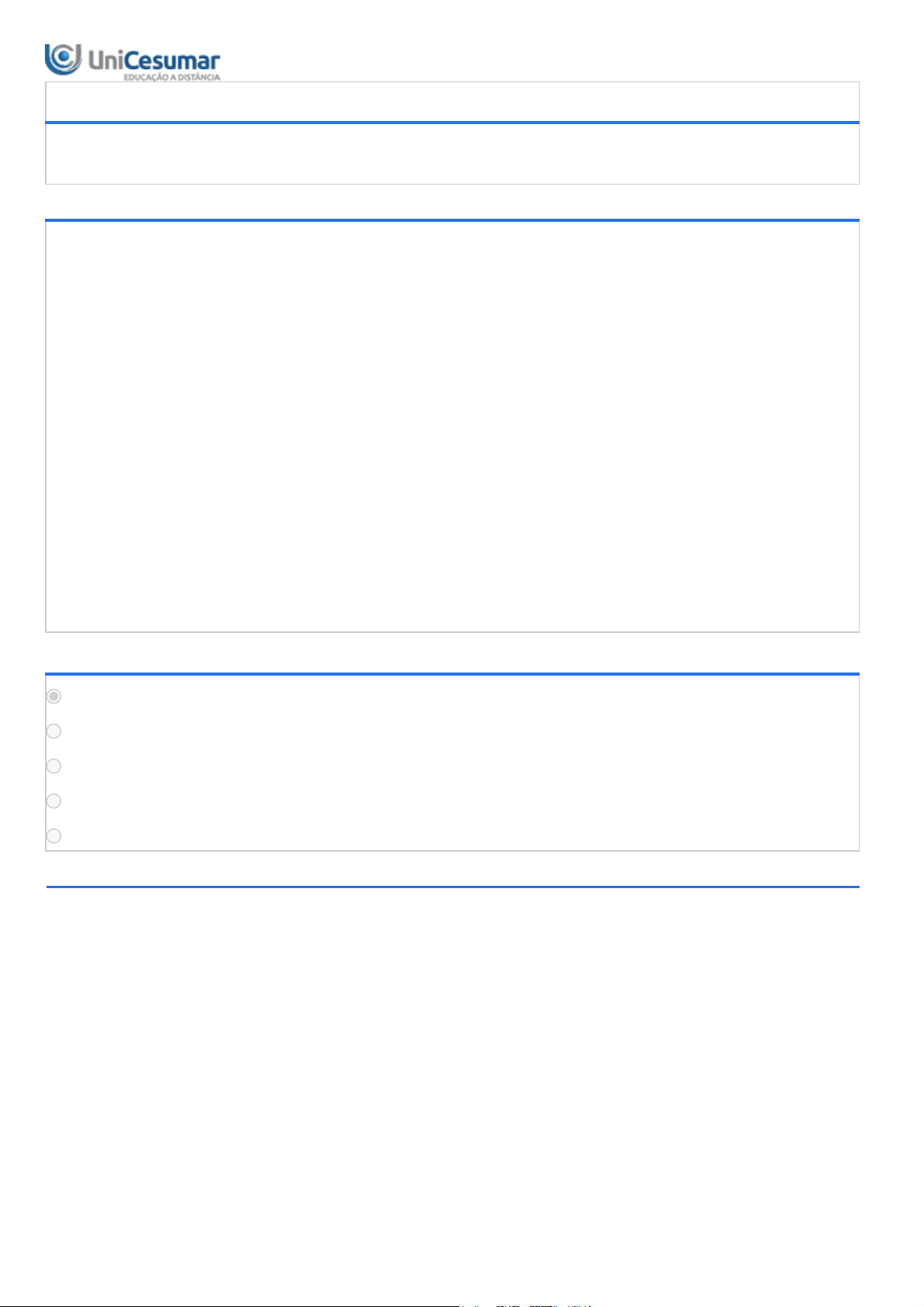 24/03/2025 21:41 Unicesumar - Ensino a Distância about:blank 1/7 PROJETO DE ENSINO - FORMATAÇÃO DE TRABALHOS ACADÊMICOS NO MICROSOFT WORD - 51_2025 Período:24/02/2025 08:00 a 20/04/2025 23:59 (Horário de Brasília) Status:ABERTO Gabarito:Gabarito será liberado no dia 21/04/2025 00:00 (Horário de Brasília) 1ª QUESTÃO Imagine que você está escrevendo uma monografia com várias seções, como Introdução, Metodologia, Resultados e Conclusão. Ao longo do processo de escrita, você aplica estilos de título para cada uma dessas seções. Quando o documento estiver concluído, você pode simplesmente utilizar o recurso de Sumário Automático para gerar um sumário com os títulos de cada seção e suas respectivas páginas. Se precisar adicionar ou remover uma seção posteriormente, basta atualizar o sumário para refletir as mudanças. Fonte: Elaborado pelo professor, 2024 Dado o contexto sobre uso do Sumário Automático, analise as afirmativas a seguir: I. Atualiza o sumário automaticamente apenas inserindo ou removendo novos títulos ou subtítulos. II. Economiza tempo e garante que seu documento esteja bem estruturado e fácil de navegar. III. Os títulos e subtítulos do documento precisam estar formatados com estilos específicos do Word. IV. Ao criar o sumário manualmente, há menos probabilidade de erros ou omissões, garantindo a precisão da estrutura do documento. V. Elementos como imagens e tabelas também são refletidos no sumário com suas respectivas páginas. É correto o que se afirma em: ALTERNATIVAS I, II e III, apenas. I, III e IV, apenas. II, III e V, apenas. I, III, IV e V, apenas. I, II, III, IV e V. 2ª QUESTÃO 24/03/2025 21:41 Unicesumar - Ensino a Distância about:blank 2/7 O Microsoft Word oferece uma funcionalidade chamada "Índice de Ilustrações" que permite listar e organizar as imagens, tabelas e outros objetos visuais presentes no seu documento. Para usar esse recurso, você precisa adicionar legendas aos elementos visuais utilizando a funcionalidade "Inserir Legenda". Após inserir as legendas, o Word pode gerar automaticamente um índice com a lista de elementos e suas respectivas páginas. Fonte: Elaborado pelo professor, 2024. Dado o contexto, analise as afirmações a seguir sobre o uso do Índice de Ilustrações: I. O Índice de Ilustrações lista automaticamente todas as imagens e tabelas presentes no documento, mesm o sem legendas. II. Facilita a navegação em documentos com muitos elementos visuais, permitindo que o leitor encontre rapi damente a ilustração desejada. III. É necessário adicionar legendas aos elementos visuais para que eles sejam incluídos no Índice de Ilustraç ões. IV. O Índice de Ilustrações pode ser atualizado automaticamente quando as legendas são adicionadas, removidas ou modificadas. É correto o que se afirma em: ALTERNATIVAS I e II, apenas. I e III, apenas. II e IV, apenas. II, III e IV, apenas. I, II, III e IV. 3ª QUESTÃO Às vezes, é preciso incluir uma nota explicativa em um trabalho acadêmico, para fornecer informações adicionais ou esclarecimentos sobre determinados pontos do texto principal. Fonte: Elaborado pelo professor, 2024. Visto que você precisa inserir uma nota explicativa em uma parte específica do seu texto acadêmico, qual recurso do Microsoft Word seria mais apropriado para isso? Analise as afirmativas a seguir e assinale a correta: ALTERNATIVAS Sumário. Notas de rodapé. Quebra de seção. Estilos de parágrafo. Margens personalizadas. 4ª QUESTÃO 24/03/2025 21:41 Unicesumar - Ensino a Distância about:blank 3/7 Imagine que você está preparando um trabalho acadêmico no Microsoft Word e deseja destacar os títulos das seções, e para facilitar o processo, você decide utilizar como recurso os estilos para esse tipo de formatação, por ser um recurso bem útil do Microsoft Word. Fonte: Elaborado pelo professor, 2024. Quanto à vantagem de usar estilos para formatação de texto no Microsoft Word, assinale a alternativa correta: ALTERNATIVAS Torna o texto mais difícil de ser editado. Reduzir o número de páginas do documento. Permitir inserir imagens nos títulos de forma mais rápida. Aumentar o tamanho da fonte dos títulos automaticamente. Economizar tempo e garantir consistência na formatação do documento. 5ª QUESTÃO O Microsoft Word possui um recurso conhecido como "Gerenciador de Citações e Bibliografia". Esse recurso é uma ferramenta poderosa para gerenciar suas referências bibliográficas dentro do documento, sendo extremamente útil para simplificar o processo de inserção e formatação de referências bibliográficas em trabalhos acadêmicos e documentos profissionais. Fonte: Elaborado pelo professor, 2024. Dado o contexto, sobre as principais funcionalidades do gerenciador de citações bibliográficas do Word, analise as seguintes afirmativas: I. Permite adicionar fontes bibliográficas ao seu documento por meio do gerenciador. Isso inclui livros, artigos de revistas, sites, entre outros tipos de fontes. II. Permite inserir citações no texto do documento com apenas alguns cliques, formatando automaticamente a citação de acordo com o estilo de formatação bibliográfica escolhido. III. Pode gerar automaticamente uma lista de referências bibliográficas no final do seu documento, com base nas fontes que você citou ao longo do texto. IV. Se adicionar novas referências, editar ou excluir citações no texto, é preciso atualizar a lista de referências bibliográficas para refletir essas mudanças. É correto o que se afirma em: ALTERNATIVAS I e II, apenas. II e IV, apenas. I, II e III, apenas. I, III e IV, apenas. I, II, III, e IV. 6ª QUESTÃO 24/03/2025 21:41 Unicesumar - Ensino a Distância about:blank 4/7 As citações e referências bibliográficas são elementos importantes e obrigatórios em trabalhos acadêmicos, pois além de enriquecer o trabalho acadêmico, também demonstram respeito ao conhecimento produzido por outros 