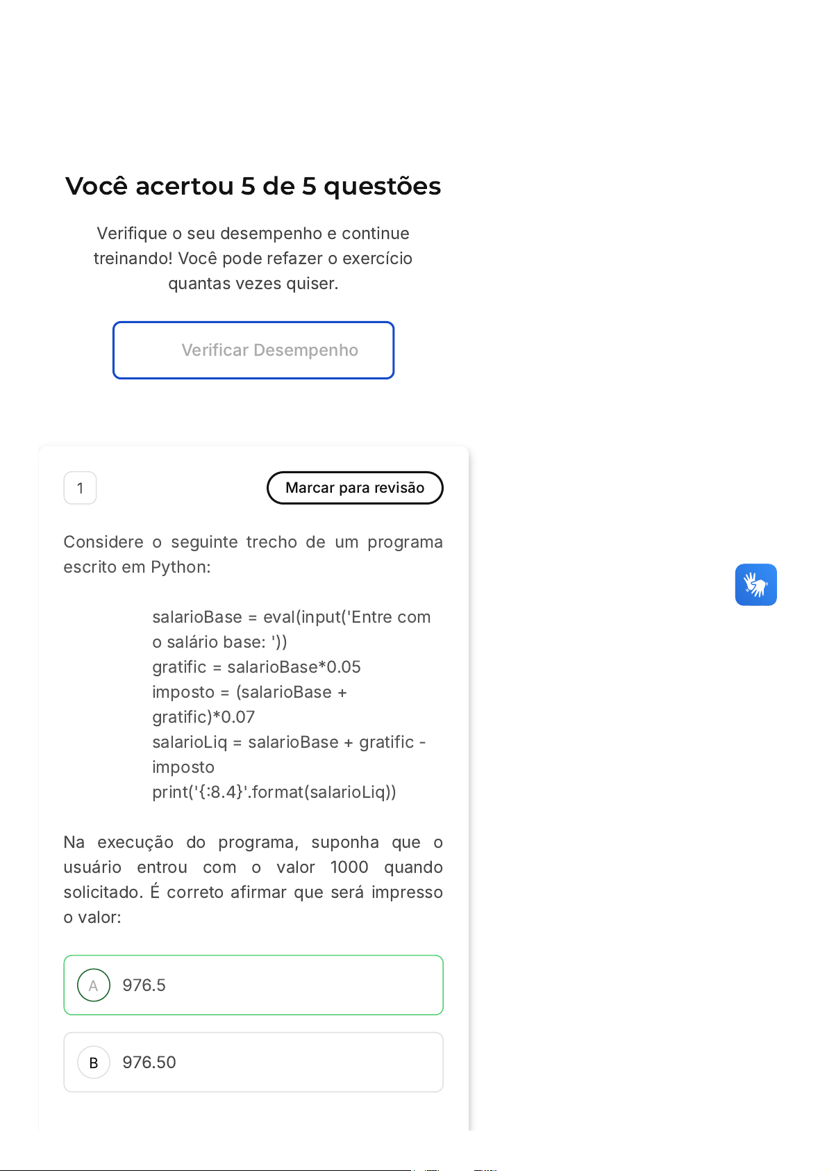 Questão 5 de 5