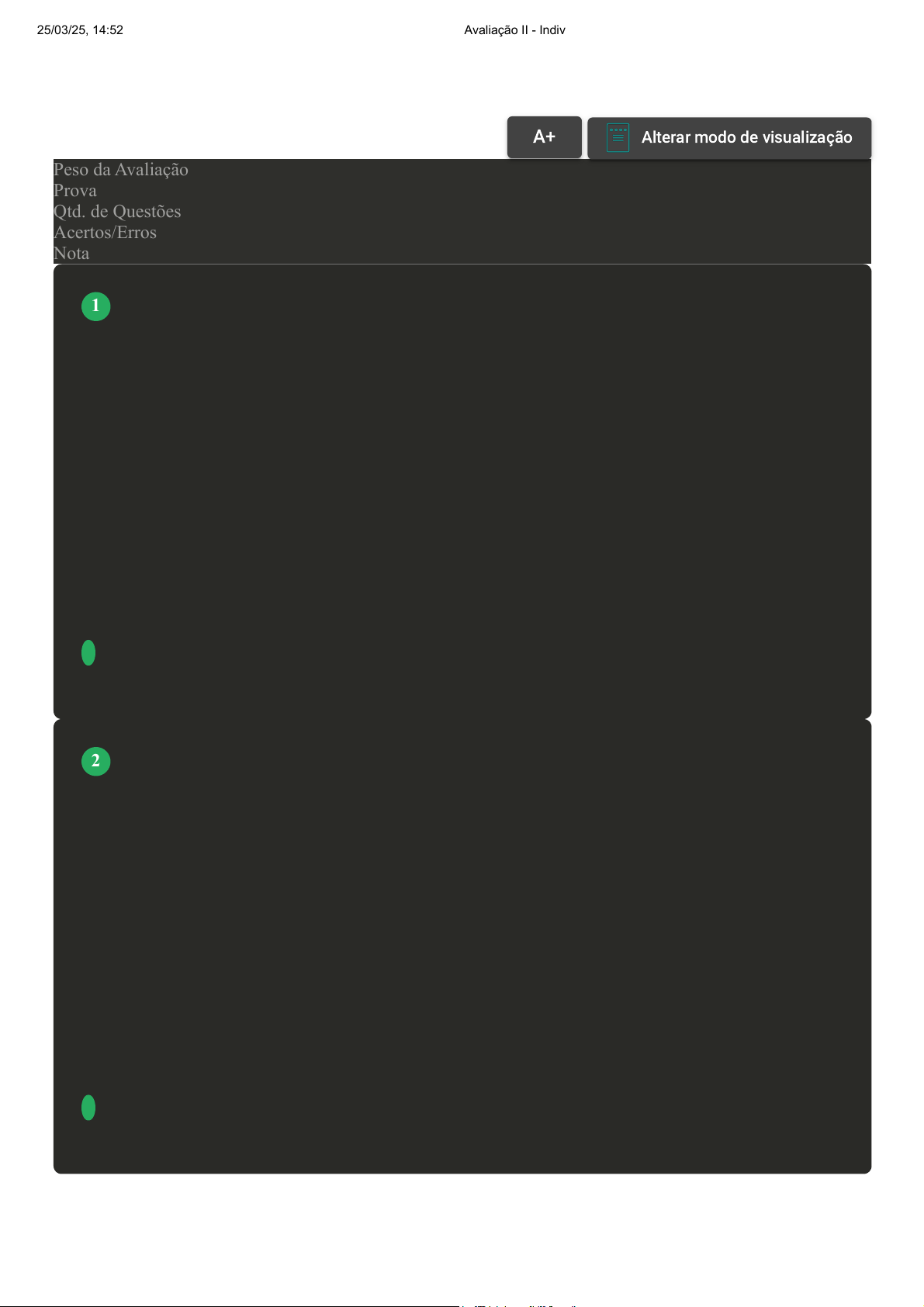 Prova Impressa GABARITO | Avaliação II - Individual (Cod.:889928) Peso da Avaliação 1,50 Prova 72591863 Qtd. de Questões 10 Acertos/Erros 9/1 Nota 9,00 O alemão Karl Marx, filósofo e economista, foi um dos expoentes da discussão crítica sobre a sociedade capitalista que começava a ser estabelecida em sua época. Ainda, sua intenção era ajudar na mudança da sua condição de alienação, pois alienado é o indivíduo que não tem controle sobre o seu próprio trabalho no que diz respeito ao tempo e ao que é produzido. Com base no que seus estudos indicavam, assinale a alternativa CORRETA: A No capitalismo, o tempo do trabalhador e o produto do trabalho pertencem à burguesia e ao Estado, bem como parte da riqueza que é criada através do trabalho. B O indivíduo deveria ser capaz de colaborar com a sociedade e sua história, mas nem sempre ele faz como deseja, pois as heranças da estrutura social o impedem. C A sociedade está inserida em condições que determinarão até que ponto o homem pode construir a sua história e, contrário a lógica, é possível que a classe dominante tem chances iguais aos trabalhadores de fazer sua história como deseja. D Nas sociedades capitalistas, a forma principal de conflito ocorria entre burguesia e proletariado. A partir da atividade comercial, a burguesia passou a ter a posse dos meios de produção, enriqueceu e também passou a fazer parte daqueles que controlavam o governo. Os movimentos sociais são importantes pelo significado social e político; sendo discutido na Leitura Complementar, do livro, por Maria da Glória Gohn a atualização contemporânea dos movimentos que dispõem de diversos meios para a mobilização e pressão sobre as causas que militam. Sobre o entendimento da autora, assinale a alternativa INCORRETA: A Representam forças sociais organizadas, aglutinam as pessoas como campo de atividades e experimentação social, e essas atividades são fontes geradoras de criatividade e inovações socioculturais. B Na atualidade, os principais movimentos sociais atuam por meio de redes sociais, locais, regionais, nacionais e internacionais ou transnacionais e utilizam os novos meios de comunicação e informação, como a internet. C Hoje, apresentam um ideário civilizatório que coloca como horizonte a construção de uma sociedade democrática. D Os movimentos realizam diagnósticos sobre a realidade social e cobram propostas. Atuando em redes, constroem ações coletivas que agem como resistência à exclusão e lutam pela inclusão social. VOLTAR A+ Alterar modo de visualização 1 2 25/03/25, 14:52 Avaliação II - Individual about:blank 1/4 A sociologia teve sua origem no colo da modernidade, como consequência do mundo moderno. Ianni (1988) elucida que o mundo moderno depende da sociologia para ser desvendado senão, seria mais confuso, incógnito, desconhecido. Com base no que é sociologia, assinale a alternativa CORRETA: FONTE: IANNI, O. A sociologia e o mundo moderno. Campinas: IFCH, 1988. A A sociologia é a ciência da sociedade buscando compreender suas características, seu sistema econômico, político e social. B Procura elucidar as competições e procedimentos políticos, econômicos, sociais e culturais da coletividade. C É um ciência social que deveria utilizar os mesmos métodos e procedimentos das ciências naturais para conhecer as leis da sociedade. D Estuda a ação racional que conduziria a sociedade à ideia de liberdade, emancipando o indivíduo, cada vez mais, da ignorância. O termo sociologia foi criado a partir da organização do curso de Filosofia Positiva em 1839, no qual o autor pretendia fazer uma síntese da produção científica, ou seja, procurar saber tudo o que havia se acumulado no que diz respeito aos conhecimentos e métodos científicos utilizados na matemática, física e biologia para, então, descobrir se era possível aproveitá-los na ciência social. Com base no nome do referido autor, assinale a alternativa CORRETA: A O sociólogo francês Émile Durkheim. B O sociólogo alemão Max Weber. C O filósofo francês Augusto Comte. D O filósofo e economista alemão Karl Marx. Outro pensador da sociologia foi o sociólogo francês Émile Durkheim (1858-1917), cujo principal objetivo foi dar à sociologia credibilidade científica, adquirindo um caráter mais técnico. Sua contribuição foi no sentido de criação de procedimentos de análise. Com base no exposto, assinale a alternativa CORRETA: A A metodologia utilizada pela Sociologia, em suas pesquisas, deveria se concentrar na subjetividade e na clareza científica. B Sugeriu diretrizes para distinguir o tipo de fenômeno para ser assunto da sociologia, intitulando fatos sociais, que podem ser separados por suas características. C Compreender e interpretar o sentido das ações sociais - os indivíduos agiam motivados por seus sentimentos e costumes. D Compreender os obstáculos sociais da época (influenciados por inovações tecnológicas, como a eletricidade e máquinas), com procedimentos de análise e verificação que tinham o objetivo de entender o positivismo. 3 4 5 25/03/25, 14:52 Avaliação II - Individual about:blank 2/4 A ideia de cidadania, historicamente, acompanha a noção de privilégio, uma vez que os direitos de cidadania eram distribuídos apenas para classes e grupos sociais específicos. Na atualidade, já possuímos muitos direitos que atingem a todos os indivíduos. Tais direitos estão garantidos desde a Constituição Federal até leis e tratados internacionais. Com base nos direitos humanos abrangidos pelos tratados e leis, classifique V para as opções verdadeiras e F para as falsas: ( ) Direitos Civis. ( ) Direitos Naturais. ( ) Direitos Políticos. ( ) Direitos Sociais. ( ) Direitos Institucionais. ( ) Direitos Individuais. ( ) Direitos Positivos.Assinale a alternativa que apresenta a sequência CORRETA: A F - V - V - F - F - V - V. B V - F - V - V - V - F - V. C V - F - F - V - F 