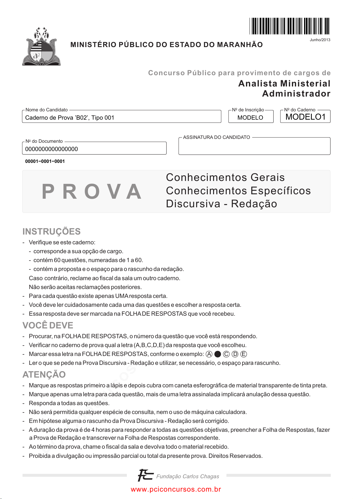 pcimarkpci MjgwNDowMjE0OjkwNjk6NGYyNTphNGFkOmVmZmY6ZmU1YjozNDQ3:U3VuLCAyMyBNYXIgMjAyNSAwMTo1NToyMiAtMDMwMA== www.pciconcursos.com.br N do CadernooN de Inscriçãoo ASSINATURA DO CANDIDATO N do Documentoo Nome do Candidato P R O V A A C D E Junho/2013 MINISTÉRIO PÚBLICO DO ESTADO DO MARANHÃO Analista Ministerial Administrador Concurso Público para provimento de cargos de Conhecimentos Gerais Conhecimentos Específicos Discursiva - Redação INSTRUÇÕES VOCÊ DEVE ATENÇÃO - Verifique se este caderno: - corresponde a sua opção de cargo. - contém 60 questões, numeradas de 1 a 60. - contém a proposta e o espaço para o rascunho da redação. Caso contrário, reclame ao fiscal da sala um outro caderno. Não serão aceitas reclamações posteriores. - Para cada questão existe apenas UMAresposta certa. - Você deve ler cuidadosamente cada uma das questões e escolher a resposta certa. - Essa resposta deve ser marcada na FOLHADE RESPOSTAS que você recebeu. - Procurar, na FOLHADE RESPOSTAS, o número da questão que você está respondendo. - Verificar no caderno de prova qual a letra (A,B,C,D,E) da resposta que você escolheu. - Marcar essa letra na FOLHADE RESPOSTAS, conforme o exemplo: - Ler o que se pede na Prova Discursiva - Redação e utilizar, se necessário, o espaço para rascunho. - Marque as respostas primeiro a lápis e depois cubra com caneta esferográfica de material transparente de tinta preta. - Marque apenas uma letra para cada questão, mais de uma letra assinalada implicará anulação dessa questão. - Responda a todas as questões. - Não será permitida qualquer espécie de consulta, nem o uso de máquina calculadora. - Em hipótese alguma o rascunho da Prova Discursiva - Redação será corrigido. - Aduração da prova é de 4 horas para responder a todas as questões objetivas, preencher a Folha de Respostas, fazer a Prova de Redação e transcrever na Folha de Respostas correspondente. - Ao término da prova, chame o fiscal da sala e devolva todo o material recebido. - Proibida a divulgação ou impressão parcial ou total da presente prova. Direitos Reservados. Caderno de Prova ’B02’, Tipo 001 MODELO 0000000000000000 MODELO1 00001−0001−0001 www.pciconcursos.com.br pcimarkpci MjgwNDowMjE0OjkwNjk6NGYyNTphNGFkOmVmZmY6ZmU1YjozNDQ3:U3VuLCAyMyBNYXIgMjAyNSAwMTo1NToyMiAtMDMwMA== www.pciconcursos.com.br 2 MPEMA-Conhecimentos Gerais1 CONHECIMENTOS GERAIS Língua Portuguesa Atenção: Considere o texto abaixo para responder às ques- tões de números 1 a 10. Juventudes Pois se ainda ontem eu era jovem, conforme me as- seguravam, asseguro-lhes que ainda hoje minha juventude não acabou. Se viesse a acabar, estaria tão velho que não saberia disso − o que significa que serei eternamente jovem. Preciso acrescentar: nada tenho de especial, todos os jovens da minha idade (isto é, acima dos 60) sabem disso. Não adianta os es- pelhos (por que se espalham por toda parte?) pretenderem mostrar o contrário, jogar-nos na cara nossa imagem envelhe- cida. Nós sabemos que eles mentem, sabemos que não têm como refletir nosso espírito − daí se vingarem, refletindo tão so- mente o que aparece. Vou mais longe: não é que não envelheçamos, com es- sa mania que tem o tempo de nunca parar; na verdade, quanto mais anos vivemos, mais remoçamos. Alguns vivem até recu- perar de vez − para nunca mais largar dela − a liberdade da in- fância. Enquanto lá não chego (esperando chegar), vou remo- çando, remoçando, a ponto dos jovens de dezenove anos me pedirem mais moderação, mais compostura. Toda vez que fa- zem isso, surpreendo, no fundo de seus olhos, uma inveja inco- mensurável: inveja da minha adolescência verdadeira. É verdade que a natureza, que tem lá seus caprichos, gosta de brincar com nossa juventude de sexagenários. Ela faz, por exemplo, o chão parecer mais longe: custa-nos chegar a ele, para apanhar aquela moedinha. Brinca, ainda, com nosso senso de equilíbrio: um volteio mais rápido do corpo e parece que a Terra subitamente acelerou a rotação. E já não podemos saltar imitando um saci, sobre os quadrados marcados a giz na calçada das brincadeiras: mesmo duas pernas mostram-se in- suficientes para retomar o equilíbrio. Enfim: valha esta mensagem para todos os jovens que ainda acreditam na velhice. Bobagem, meus amiguinhos: a ve- lhice não chega nunca, é mais uma ilusão da juventude. Não adianta o corpo insistir em dar todos os sinais de mau funciona- mento, inútil insistirem as bactérias em corromper nossos teci- dos, inútil os olhos perderem a luz de dentro e a luz de fora: morremos sempre jovens, espantados por morrer, atônitos com essa insistência caprichosa e absurda da natureza, de vir ceifar nossa vida exatamente quando desfrutamos do esplendor de nossa juventude mais madura. (Adamastor Rugendas, inédito) 1. Mostrando-se convicto de seu próprio conceito de juven- tude, o autor do texto deseja demonstrar que a velhice (A) existe apenas quando tomamos consciência de sua chegada, o que costuma ocorrer com os primeiros sinais da decrepitude física. (B) somente atinge nosso espírito quando tomamos co- nhecimento dela pela implacável imagem de nós mesmos que os espelhos fornecem. (C) chega primeiro para aqueles que, quando jovens, não se preparam para enfrentar todos os limites e dissabores dos últimos anos da vida. (D) efetivamente nunca chega, pois o espírito é imune a ela e não acusa em si mesmo as carências e as restrições físicas que chegam com o tempo. (E) de fato inexiste para aquele que, mesmo se sentindo velho e acabado, consegue transmitir aos outros uma imagem de jovialidade. 2. Atente para as seguintes afirmações: I. Para o autor do texto, uma evidência de que a ve- lhice não é ilusória está no fato de que os jovens fingem não temê-la e de que os velhos simulam não acreditar nela, sabendo ambos o quanto o tem- po é implacável. II. No segundo parágrafo, o autor retrata-se do exa- gero q