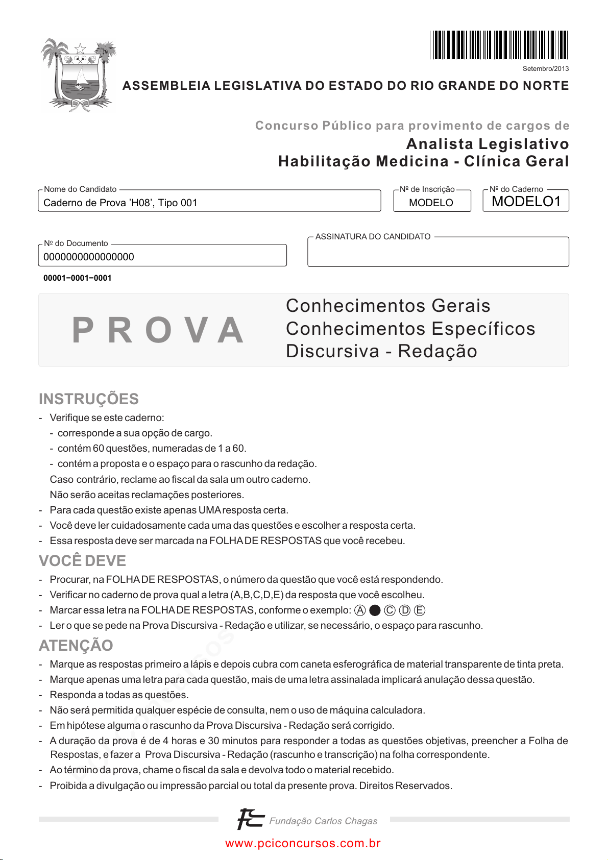 pcimarkpci MjgwNDowMjE0OjkwNjk6NGYyNTphNGFkOmVmZmY6ZmU1YjozNDQ3:U3VuLCAyMyBNYXIgMjAyNSAwMTo1NDoyMSAtMDMwMA== www.pciconcursos.com.br N do CadernooN de Inscriçãoo ASSINATURA DO CANDIDATO N do Documentoo Nome do Candidato P R O V A A C D E ASSEMBLEIA LEGISLATIVA DO ESTADO DO RIO GRANDE DO NORTE Analista Legislativo Habilitação Medicina - Clínica Geral Concurso Público para provimento de cargos de Conhecimentos Gerais Conhecimentos Específicos Discursiva - Redação INSTRUÇÕES VOCÊ DEVE ATENÇÃO - Verifique se este caderno: - corresponde a sua opção de cargo. - contém 60 questões, numeradas de 1 a 60. - contém a proposta e o espaço para o rascunho da redação. Caso contrário, reclame ao fiscal da sala um outro caderno. Não serão aceitas reclamações posteriores. - Para cada questão existe apenas UMAresposta certa. - Você deve ler cuidadosamente cada uma das questões e escolher a resposta certa. - Essa resposta deve ser marcada na FOLHADE RESPOSTAS que você recebeu. - Procurar, na FOLHADE RESPOSTAS, o número da questão que você está respondendo. - Verificar no caderno de prova qual a letra (A,B,C,D,E) da resposta que você escolheu. - Marcar essa letra na FOLHADE RESPOSTAS, conforme o exemplo: - Ler o que se pede na Prova Discursiva - Redação e utilizar, se necessário, o espaço para rascunho. - Marque as respostas primeiro a lápis e depois cubra com caneta esferográfica de material transparente de tinta preta. - Marque apenas uma letra para cada questão, mais de uma letra assinalada implicará anulação dessa questão. - Responda a todas as questões. - Não será permitida qualquer espécie de consulta, nem o uso de máquina calculadora. - Em hipótese alguma o rascunho da Prova Discursiva - Redação será corrigido. - A duração da prova é de 4 horas e 30 minutos para responder a todas as questões objetivas, preencher a Folha de Respostas, e fazer a Prova Discursiva - Redação (rascunho e transcrição) na folha correspondente. - Ao término da prova, chame o fiscal da sala e devolva todo o material recebido. - Proibida a divulgação ou impressão parcial ou total da presente prova. Direitos Reservados. Setembro/2013 Caderno de Prova ’H08’, Tipo 001 MODELO 0000000000000000 MODELO1 00001−0001−0001 www.pciconcursos.com.br pcimarkpci MjgwNDowMjE0OjkwNjk6NGYyNTphNGFkOmVmZmY6ZmU1YjozNDQ3:U3VuLCAyMyBNYXIgMjAyNSAwMTo1NDoyMSAtMDMwMA== www.pciconcursos.com.br 2 ALERN-Conhecimentos Gerais3 CONHECIMENTOS GERAIS Língua Portuguesa Atenção: O texto abaixo refere-se às questões de números 1 a 4. Código é poesia A expressão, usada como slogan pela plataforma Wordpress, é controversa. Comparar a nobre arte poética com a técnica da programação parece sacrilégio. Código é frio e calculado, precisa ser objetivo, não pode dar margem a interpretações. O que isso tem em comum com a artesania de palavras que compõe um verso? A relação entre as duas áreas tem origens medievais. Até o século 12 não se calculava com números na Europa. Para isso existiam os ábacos. Derivados do sistema romano, núme- ros eram apenas um tipo de letra usada para registrar quantias. Entre as muitas invenções estão a Álgebra e os Algorit- mos que, com equações algébricas, usam expressões para rea- lizar operações. Também sintéticas, essas frases em línguas estranhas (SQL, JavaScript, HTML) têm sintaxe, ortografia e métricas precisas. A semelhança entre código e poesia vai além de sintaxe e frases curtas. Ambas têm propósito, sentido e estrutura. Por motivos diferentes, precisam ser elegantes e concisas. Bom código, como boa poesia, não "acontece" natural- mente, nem pode ser gerado a partir de dicionários de rimas. Demanda disciplina, talento e trabalho duro. Algoritmos bem desenvolvidos, como poesias bem escritas, seguem fluxos naturais de ideias. Tudo neles parece estar no lugar correto, nada pode ser removido, cada linha emenda naturalmente na próxima. O fluxo de operações não é determinado pela estrutura gramatical, mas pela forma com que cada ideia se conecta à seguinte, complementando a anterior. Linhas de código, como versos, fazem referências cruzadas, em que cada parte ampli- fica e sintetiza o que a antecedeu. Muitos preguiçosos autointitulados poetas apenas por serem capazes de rimar as palavras no fim de duas linhas se espantam porque ninguém suporta lê-los ou ouvi-los. Dode- cassílabos, alexandrinos, heroicos ou redondilhas, poemas pre- cisam de estrutura. Como eles, os novos programas compu- tacionais e sonetos algorítmicos demandam estruturas e méto- dos para serem devidamente apreciados. Programar websites e aplicativos é complexo, mas não é impossível, nem restrito a mentes brilhantes e especiais. Da mesma forma que todos podem escrever, todos podem progra- mar. Com engenho e arte, novos talentos podem fazer o que Chico, Caetano e Gil fizeram com os versos da nossa música. Mas só se poderá cultivá-los quando o preconceito que se tem com relação aos desenvolvedores for substituído pela admiração que temos por quem garimpa a beleza oculta na última flor do Lácio. (Adaptado do texto de Luli Radfahrer, Folha de S. Paulo, Folha Tec, 29/07/2013) 1. De acordo com o texto: (A) não se deve comparar poesia e programação, por- que é uma presunção, embora ambas tenham muito em comum: dependem de conhecimentos e esforços para atingir um bom resultado. (B) é necessário que código e poesia, embora necessi- tando de conhecimentos e esforços por parte do programador e do poeta, se construam com a sim- plicidade das coisas naturais. (C) há uma estrutura gramatical, uma sintaxe que ultra- passa o uso de rimas e de receitas, que amplifica e sintetiza códigos e formas que devem ser seguidas para se atingir os objetivos. (D) devem-se considerar as peculiaridades de cada uma das atividades, mas ambas têm em comum a difi- culdade de um bom desenvolvimento de suas estru- turas, de sua sintaxe. (E) é 