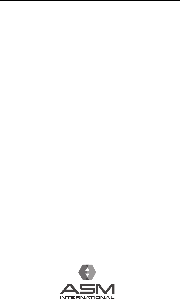 ASM HandbookW Volume 1A Cast Iron Science and Technology Prepared under the direction of the ASM International Handbook Committee Volume Editor Doru M. Stefanescu, FASM, The Ohio State University and The University of Alabama Division Editors Steve Dawson, SinterCast Ltd. Hasse Fredriksson, KTH Stockholm Wilson Guesser, TUPY Richard Gundlach, Element Materials Technology Harry Tian, GIW Industries ASM International Staff Victoria Burt, Content Developer Steve Lampman, Content Developer Amy Nolan, Content Developer Susan Sellers, Content Development and Business Coordinator Madrid Tramble, Manager, Production Kelly Sukol, Production Coordinator Patty Conti, Production Coordinator Diane Whitelaw, Production Coordinator Karen Marken, Senior Managing Editor Scott D. Henry, Senior Manager, Content Development Editorial Assistance Warren Haws Elizabeth Marquard Jo Hannah Leyda Lilla Ryan ASM InternationalW Materials Park, Ohio 44073 0002 www.asminternational.org Copyright # 2017 by ASM InternationalW All rights reserved No part of this book may be reproduced, stored in a retrieval system, or transmitted, in any form or by any means, electronic, mechanical, photocopying, recording, or otherwise, without the written permission of the copyright owner. First printing, September 2017 This Volume is a collective effort involving hundreds of technical specialists. It brings together a wealth of information from worldwide sources to help scientists, engineers, and technicians solve current and long range problems. Great care is taken in the compilation and production of this Volume, but it should be made clear that NO WARRANTIES, EXPRESS OR IMPLIED, INCLUDING, WITHOUT LIMITATION, WARRANTIES OF MERCHANTABILITY OR FITNESS FOR A PARTICULAR PUR POSE, ARE GIVEN IN CONNECTION WITH THIS PUBLICATION. Although this information is believed to be accurate by ASM, ASM can not guarantee that favorable results will be obtained from the use of this publication alone. This publication is intended for use by persons having technical skill, at their sole discretion and risk. Since the conditions of product or material use are outside of ASM’s control, ASM assumes no liability or obligation in connection with any use of this information. No claim of any kind, whether as to products or information in this publi cation, and whether or not based on negligence, shall be greater in amount than the purchase price of this product or publication in respect of which damages are claimed. THE REMEDY HEREBY PROVIDED SHALL BE THE EXCLUSIVE AND SOLE REMEDY OF BUYER, AND IN NO EVENT SHALL EITHER PARTY BE LIABLE FOR SPECIAL, INDIRECT OR CONSEQUENTIAL DAMAGES WHETHER OR NOT CAUSED BY OR RESULTING FROM THE NEGLIGENCE OF SUCH PARTY. As with any material, evaluation of the material under end use conditions prior to specification is essential. Therefore, specific testing under actual conditions is recommended. Nothing contained in this Volume shall be construed as a grant of any right of manufacture, sale, use, or reproduction, in connection with any method, process, apparatus, product, composition, or system, whether or not covered by letters patent, copyright, or trademark, and nothing contained in this Volume shall be construed as a defense against any alleged infringement of letters patent, copyright, or trademark, or as a defense against liability for such infringement. Comments, criticisms, and suggestions are invited, and should be forwarded to ASM International. Library of Congress Cataloging in Publication Data ASM International ASM Handbook Includes bibliographical references and indexes Contents: v.1. Properties and selection irons, steels, and high performance alloys v.2. Properties and selection nonferrous alloys and special purpose materials [etc.] v.23. Materials for medical devices 1. Metals Handbooks, manuals, etc. 2. Metal work Handbooks, manuals, etc. I. ASM International. Handbook Committee. II. Metals Handbook. TA459.M43 1990 620.1’6 90 115 SAN: 204 7586 EISBN: 978-1-62708-134-4 ISBN 13: 978 1 62708 133 7 ISBN 10: 1 62708 133 X ASM InternationalW Materials Park, OH 44073 0002 www.asminternational.org Printed in the United States of America Foreword In this year of renewal at ASM International, it is especially fitting to release Cast Iron Science and Technology, Volume 1A of the ASM Handbook series. Its focus on improving materials performance is a key value that ASM International strives to offer its members and those who research, develop, process, make, and buy cast irons. Volume 1A covers the processing and applications of cast irons, which differ entiates it from, and supplements, Properties and Selection: Irons, Steels, and High Performance Alloys, Volume 1, ASM Handbook. Coverage in this Volume includes fundamentals, primary processing, fabrication, effects of processing on properties, process and product design, and the engineering properties of specific grades, types, and product forms of iron castings. ASM International is grateful for the work and dedication of volunteer editors, authors, and reviewers. They devoted their time and expertise to develop a reference work that reflects the continuing commit ment of ASM International to present a publication of the highest technical and editorial quality. The result is a comprehensive body of knowledge from the world’s leading innovators, researchers, and prac titioners in the cast iron field that gives readers the tools to solve problems. ASM International is indebted to Volume Editor Doru M. Stefanescu, a world renowned expert who worked tirelessly to oversee this undertaking. William E. Frazier President ASM International William T. Mahoney Managing Director ASM International iii Preface “Research isn’t practical.” Neither are babies. They are costly, dirty and have no practical value. They net no return on the investment for 20 years, and even then they may be a liability rather than an asset. There are many reasons for not having babies and for no
