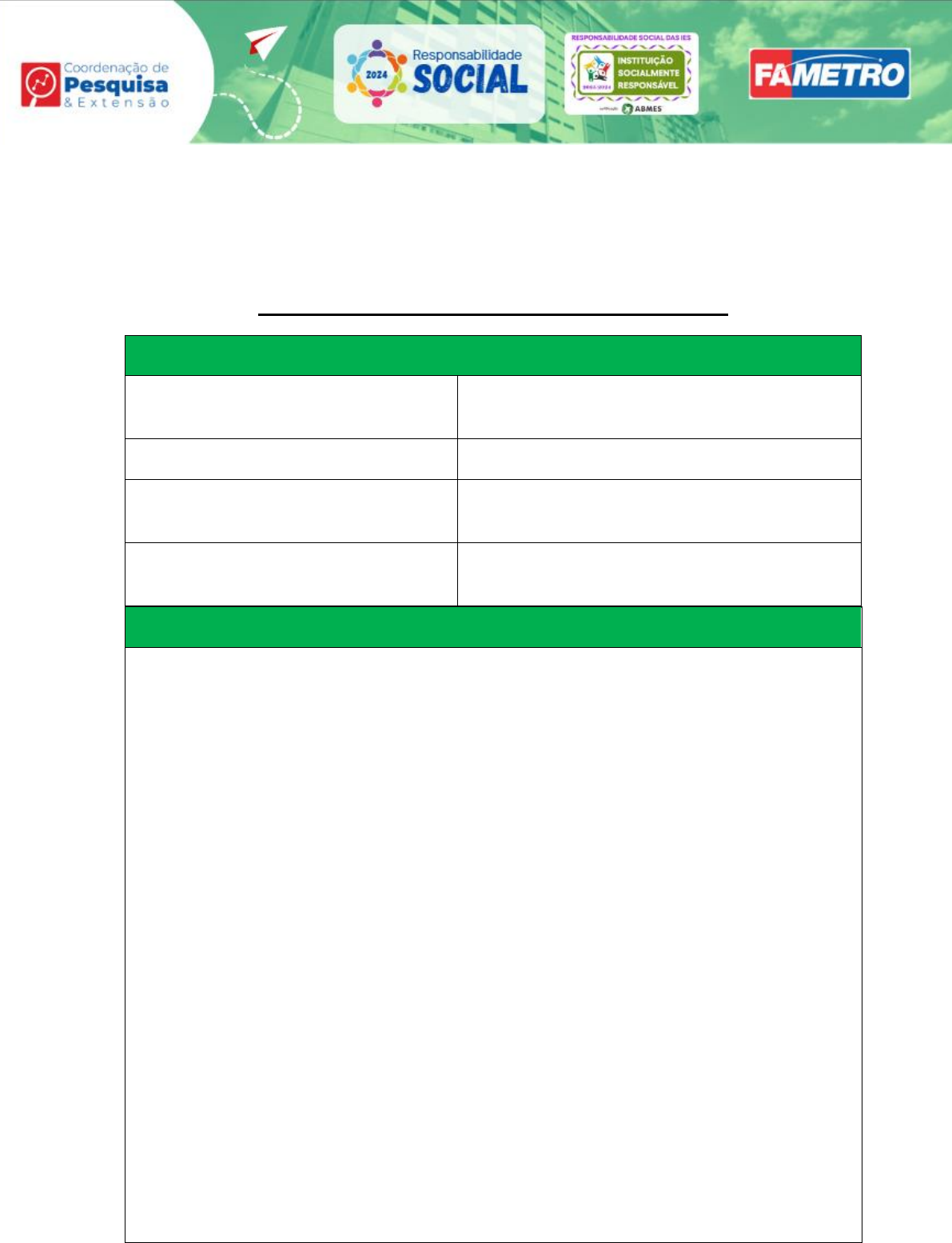 PROGRAMA DE ARTICULAÇÃO PESQUISA, ENSINO, EXTENSÃO E RESPONSABILIDADE SOCIAL INSTITUCIONAL PAPEERI RESPONSABILIDADE SOCIAL - CAMPANHA DA ABMES PROJETO PERMANTE Título do Projeto: “Ações que transformam para a construção de um mundo melhor” Curso(s): TODOS OS CURSOS Coordenador(es): (COLOCAR LISTA EM ANEXO com nomes completos e sem abreviaturas) Acadêmicos participantes: (COLOCAR LISTA EM ANEXO com nomes completos e sem abreviaturas) APRESENTAÇÃO O termo “responsabilidade social” é bastante amplo e engloba uma diversidade de ações e posturas em relação aos diversos públicos que mantêm contato com a instituição de ensino superior. As múltiplas fases da região da Amazônia lhe impõem campo vasto de diversidade de ações sócio interativas. A IES pratica a interdisciplinaridade como uma estratégia de abordagem metodológica para fortalecer e enriquecer o processo de aprendizagem discente, ampliando e aprofundando a construção de conhecimento quando as disciplinas, ofertadas simultaneamente em um mesmo período conseguem dialogar estabelecendo relações que habilitam o discente e possibilitam análise e interpretação de conteúdo que se aplica a sociedade, dando retorno a mesma. A LDB nº 5.540/1968, no seu art. 20, ratifica as disposições, contidas no Decreto-Lei nº 252/1967: as universidades e as instituições de ensino superior estenderão à comunidade, sob forma de cursos e serviços especiais, as atividades de ensino e os resultados da pesquisa que lhes são inerentes. A mesma lei, art. 40, alínea “a”, consigna a participação do corpo discente nos programas de melhoria das condições de vida da comunidade e no processo de desenvolvimento, através das atividades de extensão. Sobre a indissociabilidade do tripé que sustenta o ensino superior, a Política Nacional de Extensão Universitária – FORPROEX, estabelece que “As diretrizes que devem orientar a formulação e implementação das ações de Extensão Universitária, [...] A Política de Extensão universitária afirma a Extensão Universitária como processo acadêmico. Nessa perspectiva, o suposto é que as ações de extensão adquirem maior efetividade se estiverem vinculadas ao processo de formação de pessoas (Ensino) e de geração de conhecimento (Pesquisa).” (FORPROEX, 2012). De acordo com a Resolução Nº 7, do art. 13, para efeito do cumprimento do disposto no Plano Nacional de Educação (PNE), as instituições devem incluir em seu Plano de Desenvolvimento Institucional (PDI), os seguintes termos, entre outros: a concepção de extensão, que se ajuste aos princípios estabelecidos na presente Resolução, a ser aplicado na formulação dos projetos pedagógicos dos cursos superiores, quando necessários; o planejamento e as atividades institucionais de extensão; a forma de registro a ser aplicado nas instituições de ensino superior, descrevendo as modalidades de atividades de extensão que serão desenvolvidas; as estratégias de acreditação curricular e de participação dos estudantes nas atividades de extensão; a política de implantação do processo auto avaliativo da extensão, as estratégias e os indicadores que serão utilizados para o cumprimento das disposições constantes no art. 4º desta Resolução; a previsão e as estratégias de financiamento das atividades de extensão. O Projeto de Articulação entre Pesquisa, Ensino, Extensão e Responsabilidade Social Institucional - PAPEERI, que tem como objetivo inserir os discentes desta IES na pesquisa, articulada com o ensino e a extensão, considerando a necessidade de executar projetos de pesquisa Inter e Multidisciplinares. E ainda, contribuir com a formação de recursos humanos para a pesquisa e o desenvolvimento regional. Assim como, despertar no aluno a capacidade de ler a realidade da vida criticamente e ser capaz de intervir nessa realidade construindo e reconstruindo conhecimentos e trocando saberes, a partir da relação teórico-prática da interação dialógica academia-comunidade. JUSTIFICATIVA Tratar de indissociabilidade na universidade é considerar necessariamente dois vetores de um debate: de um lado, as relações entre universidade, ensino, pesquisa e extensão; e, de outro, confluindo para a formulação de uma tridimensionalidade ideal da educação superior, as relações entre o conhecimento científico e aquele produzido culturalmente pelos diferentes grupos que compõem a sociedade em geral. Cumpre, portanto, considerar brevemente esse debate para melhor entender por que, apesar de ideal, a pretendida indissociabilidade muitas vezes não se verifica na prática. Quando a EXTENSÃO e a responsabilidade social se associam ao ensino e a pesquisa, ganha-se a compreensão ético-político-social, quando se pensa no destinatário final desse saber científico (a sociedade). E se a articulação entre extensão e pesquisa exclui o ensino, perde-se a dimensão formativa que dá sentido à universidade. Portanto, é ideal que se evite articulações duais, o que aqui se defende é um princípio quando posto em ação, impede os reducionismos que se verificam na prática universitária: ou se enfatiza a produção do novo saber, ou a intervenção nos processos sociais, ou ainda a transmissão de conhecimentos na formação profissional, de forma que a extensão se transforme dialeticamente num instrumento capaz de articular teoria e prática. O CEUNI pratica a indissociabilidade entre PESQUISA, ENSINO, EXTENSÃO, e aplica interdisciplinaridade, transversalidade e multidisciplinaridade como estratégias de abordagens metodológicas para fortalecer e enriquecer o processo de ensino e aprendizagem discente, ampliando e aprofundando a construção de conhecimento quando as disciplinas, ofertadas simultaneamente em um mesmo período conseguem dialogar estabelecendo relações que habilitam o discente à análise e interpretação de conteúdo de forma contextualizada. OBJETIVOS