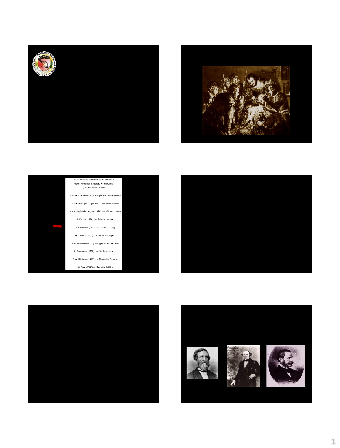 1 UNIVERSIDADE DE SÃO PAULO Faculdade de Odontologia de Ribeirão Preto Departamento de CTBMF e Periodontia Introdução Clínica MÉTODOS DE ANESTESIA Prof. Dr. Erick Ricardo Agosto | 2024 1 MÉTODOS DE ANESTESIA 2 3 ANESTESIA Assírios (1000 AC): compressão da carótida para obter inconsciência Europa medieval: concussão Hipócrates (400 AC): uso de poções soporíferas Século XVI: neve 4 GERAL: Depressão profunda dos SNC com perda de consciência e reflexos protetores. Grandes intervenções cirúrgicas. LOCAL: Bloqueia a dor em pequenas regiões do corpo. REGIONAL: Bloqueia a dor em apenas uma determinada região do corpo e o paciente pode permanecer acordado. Raquianestesia e peridural. TIPOS DE ANESTESIA 5 HORACE WELLS 1844 WILLIAM THOMAS GREEN MORTON 1846 CRAWFORD W. LONG 1841 DESCOBERTA DA ANESTESIA 6 2 HORACE WELLS (1815-1848) HORACE WELLS ü Inalatória: Óxido Nitroso ü 11/11/1844 ü 1845 ü Massachusetts General Hospital ü Exodontia em um aluno do curso de Odontologia ü Retirou o gás na fase de excitação ü Paciente sentiu dor 7 WILLIAM THOMAS GREEN MORTON CHARLES THOMAS JACKSON üInalatória: Éter ü1846 ü 30 de Setembro Ø Exodontia de um pré-molar ü 16 de Outubro Ø Apresentação Ø Dr. Warren: tumor de pescoço 8 16 de Outubro de 1846 1847 – primeira cirurgia com anestesia no Brasil, no Hospital Militar do Rio de Janeiro, pelo médico Haddock Lobo. 9 ü Sigmund Freud (1884) Über Coca: Estudou o efeito da cocaína no SNC e mencionou o efeito anestésico. ü Karl Köller (1884) Utilizou a cocaína como anestésico local em oftalmologia – uso tópico. Após experimentos com rãs, coelhos e cães, realizou cirurgias de catarata em humanos. DESCOBERTA DA ANESTESIA LOCAL 10 ü William Halsted e Richard Hall (1884) Introduziram a cocaína como anestésico local na odontologia – uso injetável. Extração de um dente inferior. ü Heinrich Braun (1897) Introduziu a associação com vasoconstritores. DESCOBERTA DA ANESTESIA LOCAL 11 Anestesia: É a supressão de todo tipo de sensibilidade de uma determinada área anatômica. Analgesia: É a supressão da sensibilidade dolorosa em uma determinada área anatômica. 12 3 TIPOS DE ANESTESIA LOCAL GERAL 13 Indicada para Intervenções : ü Áreas extensas ü Pacientes temerosos/incapazes, com alergia à AL, com trismos, etc ANESTESIA GERAL EM ODONTOLOGIA 14 üMeios físicos üMeios químicos MÉTODOS DE ANESTESIA LOCAL 15 MEIOS FÍSICOS: ü Frio ü Isquemia ü Ondas de alta freqüência (elétrica ou vibratória) MEIOS QUÍMICOS : ü Reversíveis (Anestésicos locais) ü Irreversíveis (álcool, fenóis) 16 MEIOS QUÍMICOS: ü Droga: bloquear a condução nervosa ü Eficácia ü Segurança terapêutica ü Efeito reversível Benzocaína Lidocaína Prilocaína Mepivacaína Articaína Bupivacaína 17 ü Tópicos ü Injetáveis TIPOS DE ANESTESICOS LOCAIS 18 4 ü Anestesia tópica ü Anestesia por infiltração ü Anestesia por bloqueio TÉCNICAS DE ANESTESIA LOCAL 19 É uma anestesia superficial, produzida pelo contato direto da droga anestésica com a mucosa. Insensibiliza terminações nervosas livres da área onde é aplicada e tem curta duração. ANESTESIA TÓPICA 20 É uma anestesia injetável que insensibiliza terminações nervosas livres da área onde é aplicada. É aplicada em região próxima de onde será realizado o procedimento odontológico. ANESTESIA TÓPICA 21 ü Submucosa ü Paraperiosteal ü Intraligamentar ü Intraóssea ü Intrasseptal ü Intrapulpar TÉCNICAS INFILTRATIVAS 22 Paraperiosteal TÉCNICAS INFILTRATIVAS 23 Intraligamentar TÉCNICAS INFILTRATIVAS 24 5 Intraóssea Intrasseptal TÉCNICAS INFILTRATIVAS 25 Intrapulpar TÉCNICAS INFILTRATIVAS 26 ANESTESSIA POR BLOQUEIO 27 ANESTESIA POR BLOQUEIO Segunda Divisão do Nervo Trigêmeo: Maxila 28 Terceira Divisão do Nervo Trigêmeo: Mandíbula ANESTESIA POR BLOQUEIO 29