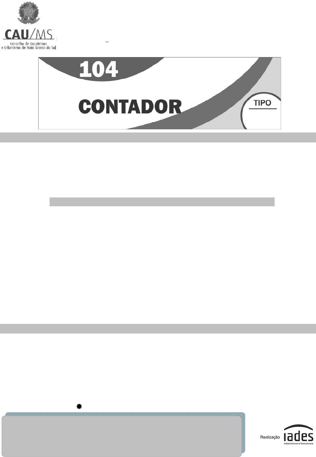 PROVA APLIC ADA CONCURSO PÚBLICO PARA PROVIMENTO DE VAGAS E FORMAÇÃO DE CADASTRO-RESERVA EM EMPREGOS DE NÍVEL MÉDIO E SUPERIOR EDITAL NO 1 DO CONCURSO PÚBLICO 1/2021 – CAU-MS - NORMATIVO “U” I N S T R U Ç Õ E S Você receberá do fiscal: o um caderno de questões das provas objetiva e discursiva contendo 50 (cinquenta) questões de múltipla escolha, com 5 (cinco) alternativas de resposta cada uma e apenas 1 (uma) alternativa correta, e 2 (duas) questões discursivas; o uma folha de respostas personalizada da prova objetiva; e o duas folhas de texto definitivo da prova discursiva. Quando autorizado pelo fiscal do IADES, no momento da identificação, escreva no espaço apropriado da folha de respostas da prova objetiva, com a sua caligrafia usual, a seguinte frase: É tão arriscado acreditar. . . Verifique se estão corretas a numeração das questões e a paginação do caderno de questões, bem como a codificação da folha de respostas da prova objetiva e das folhas de texto definitivo da prova discursiva. Você dispõe de 4 (quatro) horas para fazer as provas objetiva e discursiva e deve controlar o tempo, pois não haverá prorrogação desse prazo. Esse tempo inclui a leitura das instruções, a marcação da folha de respostas da prova objetiva e o preenchimento das folhas de texto definitivo da prova discursiva. Somente 1 (uma) hora após o início da prova, você poderá entregar sua folha de respostas da prova objetiva, as folhas de texto definitivo da prova discursiva e o caderno de provas, bem como retirar-se da sala. Somente será permitido levar o caderno de questões das provas objetiva e discursiva 3 (três) horas após o início da prova. Após o término da prova, entregue ao fiscal do IADES a folha de respostas da prova objetiva, devidamente assinada, e as folhas de texto definitivo da prova discursiva. Deixe sobre a carteira apenas o documento de identidade e a caneta esferográfica de tinta preta, fabricada com material transparente. Não é permitida a utilização de nenhum aparelho eletrônico ou de comunicação. Não é permitida a consulta a livros, dicionários, apontamentos e (ou) apostilas. Você somente poderá sair e retornar à sala de aplicação de provas na companhia de um fiscal do IADES. Não será permitida a utilização de lápis em nenhuma etapa da prova. I N S T R U Ç Õ E S P A R A A P R O V A O BJ E T I V A E D I S C U R S I V A Verifique se os seus dados estão corretos na folha de respostas da prova objetiva e nas folhas de texto definitivo da prova discursiva. Caso haja algum dado incorreto, comunique ao fiscal. Leia atentamente cada questão e assinale, na folha de respostas da prova objetiva, uma única alternativa. A folha de respostas da prova objetiva e as folhas de texto definitivo da prova discursiva não podem ser dobradas, amassadas, rasuradas ou manchadas e nem podem conter nenhum registro fora dos locais destinados às respostas. O candidato deverá transcrever, com caneta esferográfica de tinta preta, as respostas da prova objetiva para a folha de respostas e os textos definitivos da prova discursiva para as folhas de texto definitivo. A maneira correta de assinalar a alternativa na folha de respostas da prova objetiva é cobrir, fortemente, com caneta esferográfica de tinta preta, o espaço a ela correspondente. Marque as respostas assim: PROVA APLIC ADA CONCURSO PÚBLICO – 1/2021 – CAU-MS 104– CONTADOR – TIPO “U” PÁGINA 2/16 P R O V A O B J E T I V A CONHECIMENTOS BÁSICOS Questões de 1 a 20 LÍNGUA PORTUGUESA Questões de 1 a 8 Texto 1 para responder às questões de 1 a 3. 1 4 7 10 13 16 19 22 25 28 31 32 O Mato Grosso do Sul e sua arquitetura A arquitetura histórica presente em Corumbá e Miranda é de grande valor para a região e para o País. Corumbá, localizada às margens do Rio Paraguai e capital do Pantanal, é uma cidade que foi quase destruída com a Guerra do Paraguai, tendo parte de suas edificações e de seu traçado urbano tombada como patrimônio da União pelo Instituto do Patrimônio Histórico e Artístico Nacional (Iphan) há 30 anos. Os casarões do século 19, também presentes no sítio, retratam um período de imensa riqueza econômica, com a importação de produtos da Europa que chegavam pela Bacia do Prata. Em Miranda, o processo de tombamento federal de algumas edificações importantes já está encaminhado. Foram, entretanto, os ciclos do gado e da ferrovia Noroeste do Brasil que trouxeram o desenvolvimento e a integração para Mato Grosso do Sul (MS). Fazendas rurais e sua arquitetura tipicamente mineira fundem-se com o estilo eclético dos edifícios ferroviários – estações, rotundas, residências e armazéns, desenhando o mosaico da arquitetura histórica do estado. Com a ferrovia, vieram os construtores, os materiais e os novos estilos arquitetônicos em voga nas cidades mais importantes do País e do mundo e, assim, os casarões, os edifícios comerciais e os novos prédios institucionais começam a ser erguidos. Técnicas de ornamentação e elementos de revestimento impregnaram as edificações que foram sendo erguidas no final do século 19 e início do século 20. Novas cidades surgem no cenário geográfico como municípios dotados com a presença de importantes edifícios em estilo eclético e art déco. Todo esse patrimônio é desconhecido do povo brasileiro, que tem referências sobre MS pelas belezas naturais de Bonito ou por meio das notícias ruins de drogas e contrabando. Disponível em: . Acesso em: 27 ago. 2021, com adaptações. QUESTÃO 1 _______________________ Com base nas informações do texto e nas relações entre elas, assinale a alternativa correta. (A) Corumbá e Miranda são cidades tombadas pelo Instituto do Patrimônio Histórico e Artístico Nacional (Iphan) por causa de sua arquitetura histórica. (B) Em Corumbá e Miranda, os casarões do século 19 e a arquitetura tipicamente mineira, refletem um período de imensa riq
