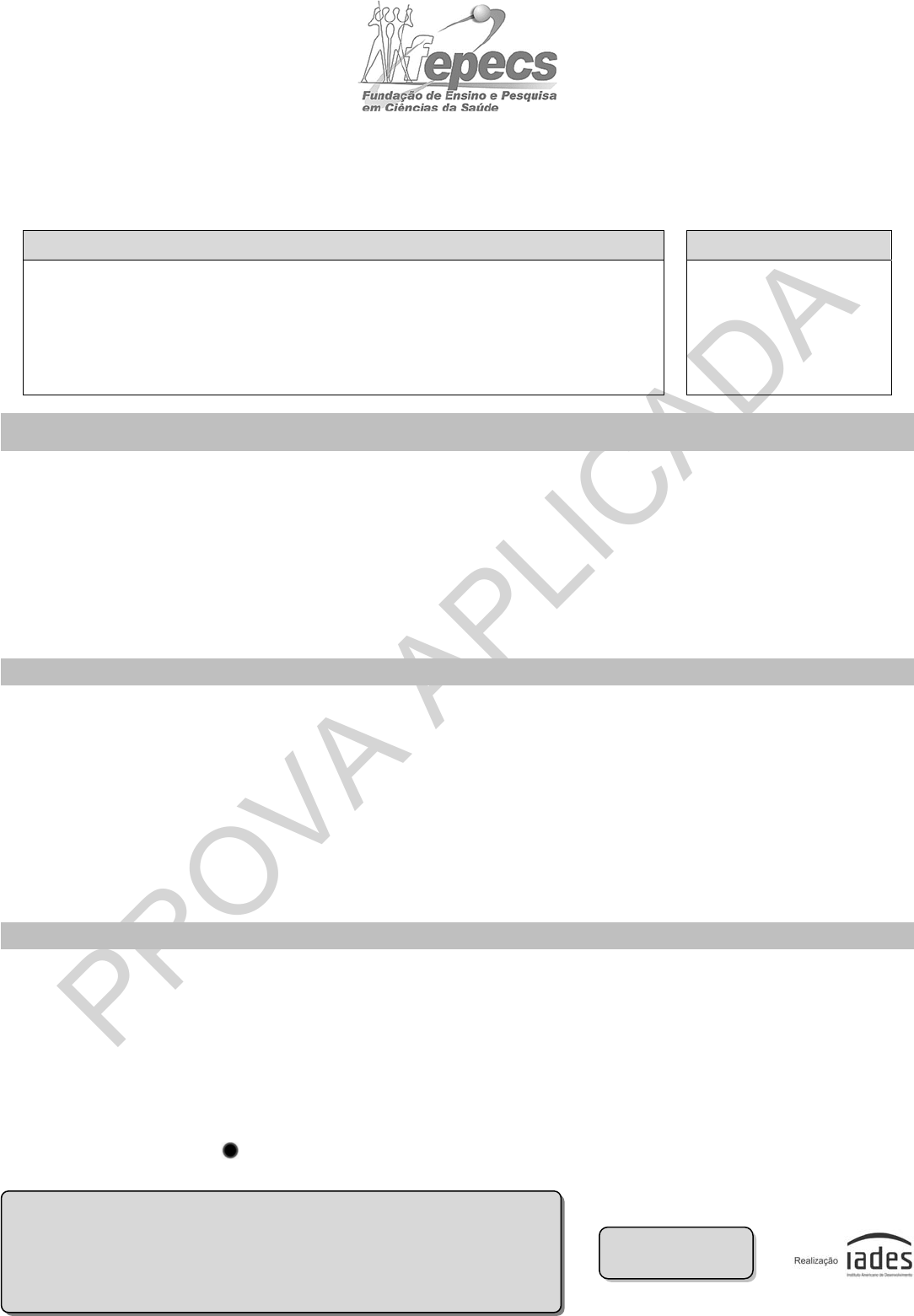 PROVA APLIC ADA Tipo “U” SECRETARIA DE ESTADO DE SAÚDE DO DISTRITO FEDERAL FUNDAÇÃO DE ENSINO E PESQUISA EM CIÊNCIAS DA SAÚDE EDITAL NORMATIVO Nº 1 – RM-2/SES-DF/2021, DE 5 DE OUTUBRO DE 2020. P R O G R A M A S – G R U P O 0 0 4 Data e horário da prova: Cirurgia Oncológica (520). Domingo, 13/12/2020, às 8h. I N S T R U Ç Õ E S Você receberá do fiscal: o um caderno da prova objetiva contendo 120 (cento e vinte) itens; cada um deve ser julgado como CERTO ou ERRADO, de acordo com o(s) comando(s) a que se refere; e o uma folha de respostas personalizada. Verifique se a numeração dos itens, a paginação do caderno da prova objetiva e a codificação da folha de respostas estão corretas. Verifique se o programa selecionado por você está explicitamente indicado nesta capa. Quando autorizado pelo fiscal do IADES, no momento da identificação, escreva, no espaço apropriado da folha de respostas, com a sua caligrafia usual, a seguinte frase: Encontre outra maneira de FICAR e LUTAR. Você dispõe de 3 (três) horas e 30 (trinta) minutos para fazer a prova objetiva, devendo controlar o tempo, pois não haverá prorrogação desse prazo. Esse tempo inclui a marcação da folha de respostas. Somente 1 (uma) hora após o início da prova, você poderá entregar sua folha de respostas e o caderno da prova e retirar-se da sala. Somente será permitido levar o caderno da prova objetiva 3 (três) horas após o início da prova. Deixe sobre a carteira apenas o documento de identidade e a caneta esferográfica de tinta preta, fabricada com material transparente. Não é permitida a utilização de nenhum tipo de aparelho eletrônico ou de comunicação. Não é permitida a consulta a livros, dicionários, apontamentos e (ou) apostilas. Você somente poderá sair e retornar à sala de aplicação da prova na companhia de um fiscal do IADES. Não será permitida a utilização de lápis em nenhuma etapa da prova. I N S T R U Ç Õ E S P A R A A P R O V A O B J E T I V A Verifique se os seus dados estão corretos na folha de respostas da prova objetiva. Caso haja algum dado incorreto, comunique ao fiscal. Leia atentamente cada item e assinale sua resposta na folha de respostas. A folha de respostas não pode ser dobrada, amassada, rasurada ou manchada e nem podem conter registro fora dos locais destinados às respostas. O candidato deverá transcrever, com caneta esferográfica de tinta preta, fabricada com material transparente, as respostas da prova objetiva para a folha de respostas. A maneira correta de assinalar a alternativa na folha de respostas é cobrir, fortemente, com caneta esferográfica de tinta preta, fabricada com material transparente, o espaço a ela correspondente. Marque as respostas assim: PROVA APLIC ADA PROCESSO SELETIVO – RM-2/SES-DF/2021 GRUPO 004 – TIPO “U” PÁGINA 2/7 IADES CIRURGIA GERAL Itens de 1 a 120 Um paciente de 21 anos de idade realizou uma cirurgia de herniorrafia inguinal bilateral. Evoluiu bem, porém, com 10 semanas de pós-operatório, apresentou ferida operatória com elevação de seus bordos, de forma desorganizada e crescimento lento e além das bordas da ferida. Com base nesse caso clínico e nos conhecimentos médicos correlatos, julgue os itens a seguir. 1. Esse caso trata-se de queloide, e a regressão espontânea é esperada após um ano. 2. Determinadas síndromes estão associadas à formação de queloide, por exemplo, síndrome de Rubinstein- Taybi e esclerodermia. 3. Diagnóstico diferencial pode ser de cicatriz hipertrófica, que geralmente não regride de forma espontânea e é bastante dolorosa. 4. A injeção de esteroides diretamente no queloide tem maior benefício no início do curso do queloide. 5. A excisão cirúrgica com terapia adjuvante, incluindo esteroides intralesionais, lâminas de silicone e terapias de pressão, são alternativas de tratamento razoáveis. 6. Enxertos em malha podem aumentar em até nove vezes a extensão dos enxertos de pele parcial. Um paciente de 23 anos de idade sofreu queimadura térmica de terceiro grau em toda a extremidade superior direita. Foram realizadas medidas iniciais, debridamento de pele e posterior enxertia. A respeito desse caso clínico e tendo em vista os conhecimentos médicos correlatos, julgue os itens a seguir. 7. Nesse caso, o enxerto será de pele parcial e deve ser retirado prioritariamente dos membros inferiores. 8. Os enxertos de pele total sofrem mais retração secundária do que os de pele parcial. 9. O enxerto de pele total é composto por epiderme, derme e tecido subcutâneo. 10. Enxertos em malha são utilizados para aumentar a capacidade da área dos enxertos parciais em até seis vezes. 11. As principais áreas doadoras dos enxertos de pele total são as regiões periauricular, clavicular, inguinal e cervical. 12. Quanto mais fino for o enxerto de pele parcial, maior será a sua integração na área receptora. 13. A primeira fase de integração dos enxertos é denominada revascularização. 14. Enxertos de pele levam pelo menos um ano para a completa maturação, e a extensão desse processo continua por vários anos em vítimas de queimaduras e crianças. Área livre Um paciente idoso caucasiano apresenta lesão enegrecida em dorso superior, de bordas irregulares e com 2 cm de diâmetro. Ele não tem histórico familiar de câncer de pele. Considerando esse caso clínico e os conhecimentos médicos correlatos, julgue os itens a seguir. 15. O tratamento inicial deverá ser feito com biópsia excisional e margens de 1 mm a 2 mm de pele com aparência normal. 16. A disseminação metastática por via hematogênica do melanoma é mais comum que pela via linfática. 17. O subtipo de melanoma mais comum é o disseminativo superficial. 18. O nível de Breslow é o principal fator prognóstico e evidencia a presença ou a ausência de ulceração do epitélio sobrejacente. 19. A lactato desidrogenase sérica é utilizada no sistema de estadiamento da Amer