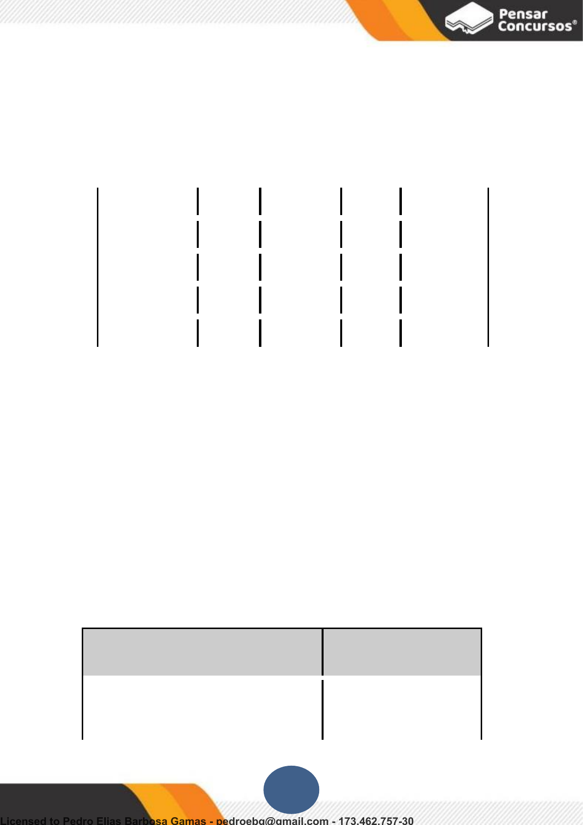 Questão 69: CESGRANRIO - Tec Info (TCE-RO)/TCE-RO/2007 O enunciado a seguir, refere-se à questão. Em um torneio de futebol, havia exatamente 4 equipes e cada uma delas jogou uma única vez com todas as outras. Na tabela abaixo, cada célula representa o número de gols que o time da linha marcou no time da coluna. Por exemplo, a equipe A marcou 2 gols sobre a equipe B. A B C D A 2 1 0 B 3 0 1 C 1 1 4 D 1 2 3 Chama-se saldo de gols à diferença entre o número de gols marcados e o de gols sofridos. Ao fim do torneio, a soma dos saldos de gols de todas as equipes era: a) – 2 b) – 1 c) 0 d) 1 e) 2 Questão 70: CESGRANRIO - PB (BNDES)/BNDES/Administração/2007 Uma carga rodoviária de 55 toneladas parte da cidade de Curitiba e faz três paradas para entregas: uma na cidade de São Paulo, a segunda, no Rio de Janeiro e, por último, em Vitória, onde finaliza a entrega. Fica acertado o valor de R$ 150,00 por escala. As distâncias aproximadas entre as respectivas cidades são as mostradas na tabela abaixo. Distância (em quilômetros) De Curitiba-PR a São Paulo-SP De São Paulo-SP ao Rio de Janeiro-RJ Do Rio de Janeiro-RJ a Vitória-ES 408 429 521 195 Licensed to Pedro Elias Barbosa Gamas - pedroebg@gmail.com - 173.462.757-30