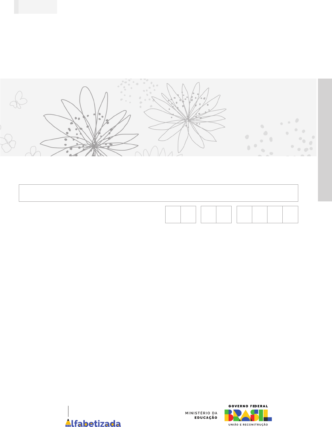 2 0 2 5 Data de Nascimento do(a) estudante Nome do(a) estudante C A D E R N O AVALIAÇÃO CONTÍNUA DA APRENDIZAGEM - CICLO I 4º ano do Ensino Fundamental FLUÊNCIA D04 04 CADERNO DO APLICADOR C A D E R N O D O A P L IC A D O R Criança Compromisso Nacional Caro(a) estudante, Você está participando da Avaliação Contínua da Aprendizagem - Ciclo I - 2025. Sua participação é muito importante para sabermos como está a nossa educação. C Este caderno é composto de questões de Fluência. Bom teste! 11772255001122006644 D0404 . 1/4 NÃO LEU ACERTOU INVENTOU LETRA/ PALAVRA SOLETROU/ NOMEOU LETRAS SILABOU ERROU 01 SOLO A B C D E F 02 PACOTE A B C D E F 03 PISO A B C D E F 04 COMETA A B C D E F 05 FINO A B C D E F 06 CEBOLA A B C D E F 07 PESO A B C D E F 08 BURACO A B C D E F 09 LADO A B C D E F 10 SONORA A B C D E F 11 LATA A B C D E F 12 BELEZA A B C D E F 13 MOTO A B C D E F 14 BANANA A B C D E F 15 CAFÉ A B C D E F 16 PESADO A B C D E F 17 GIRA A B C D E F 18 BONITO A B C D E F 19 MALA A B C D E F 20 DETETIVE A B C D E F 21 SÓ A B C D E F 22 ÔNIBUS A B C D E F 23 ALAMEDA A B C D E F 24 JARDIM A B C D E F 25 LENDA A B C D E F 26 MÓVEL A B C D E F 27 PÉ A B C D E F 28 AUMENTO A B C D E F 29 LI A B C D E F 30 RELEVO A B C D E F NÃO LEU ACERTOU INVENTOU LETRA/ PALAVRA SOLETROU/ NOMEOU LETRAS SILABOU ERROU 31 PEDRA A B C D E F 32 MILHO A B C D E F 33 CORAÇÃO A B C D E F 34 ILHA A B C D E F 35 CÓRREGO A B C D E F 36 FLECHA A B C D E F 37 INJEÇÃO A B C D E F 38 CABIDE A B C D E F 39 VESTIDO A B C D E F 40 SOL A B C D E F 41 JUNTA A B C D E F 42 DOUTOR A B C D E F 43 SIMPLES A B C D E F 44 ARROZ A B C D E F 45 TERNO A B C D E F 46 JANTAR A B C D E F 47 EQUIPE A B C D E F 48 COROA A B C D E F 49 DESFECHO A B C D E F 50 CÁ A B C D E F 51 DISPENSA A B C D E F 52 TESOURO A B C D E F 53 PAÍS A B C D E F 54 FINAL A B C D E F 55 TORCEDOR A B C D E F 56 AI A B C D E F 57 DOCUMENTO A B C D E F 58 ÁFRICA A B C D E F 59 DEZ A B C D E F 60 TOTAL A B C D E F QUESTÃO 1: LISTA DE PALAVRAS Aluno: Turma: Data: / / FICHA DE ACOMPANHAMENTO INDIVIDUAL – 4EF AVALIAÇÃO CONTÍNUA DA APRENDIZAGEM – CICLO I – 2025 Continua na próxima página. 1988D04041 33889988009977118833 D0404 . 2/4 NÃO LEU ACERTOU INVENTOU LETRA/ PALAVRA SOLETROU/ NOMEOU LETRAS SILABOU ERROU 61 ESCALA A B C D E F 62 NÓ A B C D E F 63 SOBRINHO A B C D E F 64 GÁS A B C D E F 65 ORELHA A B C D E F 66 PROTEÇÃO A B C D E F 67 ARQUIVO A B C D E F 68 MÚSCULO A B C D E F 69 BARRO A B C D E F 70 ÚNICO A B C D E F 71 JUDOCA A B C D E F 72 MIL A B C D E F 73 CARAMUJO A B C D E F 74 LEGENDA A B C D E F 75 CONSULTA A B C D E F 76 FELICIDADE A B C D E F 77 JANELA A B C D E F 78 CAPACETE A B C D E F 79 ÚLTIMA A B C D E F 80 SÁBADO A B C D E F 81 VOLUME A B C D E F NÃO LEU ACERTOU INVENTOU LETRA/ PALAVRA SOLETROU/ NOMEOU LETRAS SILABOU ERROU 82 ÁRVORE A B C D E F 83 LATIDO A B C D E F 84 DEFESA A B C D E F 85 CABANA A B C D E F 86 UTILIDADE A B C D E F 87 SÉCULO A B C D E F 88 FEMININO A B C D E F 89 RADICAL A B C D E F 90 AUTOR A B C D E F 91 LARANJA A B C D E F 92 PERTO A B C D E F 93 MINUTO A B C D E F 94 ANIMAL A B C D E F 95 GUIA A B C D E F 96 ALMOÇO A B C D E F 97 SEGUINTE A B C D E F 98 ARGENTINO A B C D E F 99 INVERNO A B C D E F 100 ANDAMENTO A B C D E F Total de palavras em cada situação de leitura QUESTÃO 1: LISTA DE PALAVRAS (CONTINUAÇÃO) FICHA DE ACOMPANHAMENTO INDIVIDUAL – 4EF AVALIAÇÃO CONTÍNUA DA APRENDIZAGEM – CICLO I – 2025 Motivo para não ter lido: A o(a) estudante se recusou a ler. B o(a) estudante disse que não consegue ler. C o(a) estudante disse que não sabe ler. D não se aplica. 1988D04042 88001199224444889955 D0404 . 3/4 NÃO LEU ACERTOU ERROU 01 COTO A B C 02 LEGADA A B C 03 FONA A B C 04 BALIDO A B C 05 PUXO A B C 06 DORIDO A B C 07 LUME A B C 08 VEREDA A B C 09 BORI A B C 10 FEDERADA A B C 11 RÍMEL A B C 12 SERENADA A B C 13 DORMENTE A B C 14 PISTÃO A B C 15 SUCINTO A B C 16 LAI A B C 17 VENTAROLA A B C 18 JASPE A B C 19 VIDRADO A B C 20 COTE A B C 21 PENDURA A B C 22 RASPA A B C 23 TOLEDANO A B C 24 CIANETO A B C 25 MURTA A B C 26 CAL A B C 27 BARBICHA A B C 28 EITO A B C NÃO LEU ACERTOU ERROU 29 AREJAMENTO A B C 30 FÊ A B C 31 ÁGIL A B C 32 TURFA A B C 33 ESTÁVEL A B C 34 JI A B C 35 RESPALDO A B C 36 MINGUANTE A B C 37 CERNE A B C 38 TICUNA A B C 39 SAIÃO A B C 40 CAUDAL A B C 41 NUANCE A B C 42 BRASEIRO A B C 43 CUÍCA A B C 44 GLEBA A B C 45 SOR A B C 46 DITAME A B C 47 CACHOLA A B C 48 BERREIRO A B C 49 CHÃ A B C 50 BIO A B C 51 CÓS A B C 52 RESOLUTO A B C 53 LÓ A B C 54 CISCA A B C 55 NINHADA A B C 56 SOLDADOR A B C NÃO LEU ACERTOU ERROU 57 LATADA A B C 58 MADEIXA A B C 59 LETREIRO A B C 60 GIGA A B C 61 PARCIAL A B C 62 VENETA A B C 63 GALÉ A B C 64 BODA A B C 65 AFAGO A B C 66 DINÂMICO A B C 67 CORÇA A B C 68 RUGIR A B C 69 PERITA A B C 70 CÃ A B C 71 TOLDO A B C 72 CRINA A B C 73 GITANO A B C 74 ORIUNDO A B C 75 FLORISTA A B C 76 VÃ A B C 77 CAUTO A B C 78 SARI A B C 79 ALICERCE A B C 80 NESGA A B C Total de palavras em cada situação de leitura QUESTÃO 2: LISTA DE PALAVRAS POSSIVELMENTE DESCONHECIDAS FICHA DE ACOMPANHAMENTO INDIVIDUAL – 4EF AVALIAÇÃO CONTÍNUA DA APRENDIZAGEM – CICLO I – 2025 Motivo para não ter lido: A o(a) estudante se recusou a ler. B o(a) estudante disse que não consegue ler. C o(a) estudante disse que não sabe ler. D não se aplica. 1988D04043 44339977116644448866 Qual é a posição da última palavra lida pelo estudante na linha indicada? Total de palavras lidas de modo errado O estudante obedeceu às pausas de sentido? A Sim B Não Pergunta 1 D ECBA Pergunta 2 D ECBA Pergunta 3 D ECBA REGISTRO DE LEITURA DE TEXTO Motivo para não ter lido: A o(a) estudante se recusou a ler. B o(a) estudante disse que não consegue ler. C o(a) estudante disse que não sabe ler. D não se aplica. D0404 . 4/4 IMPORTANTE: As questões de compreensão só devem ser aplicadas aos estudantes que conseguem realmente ler o texto até o 
