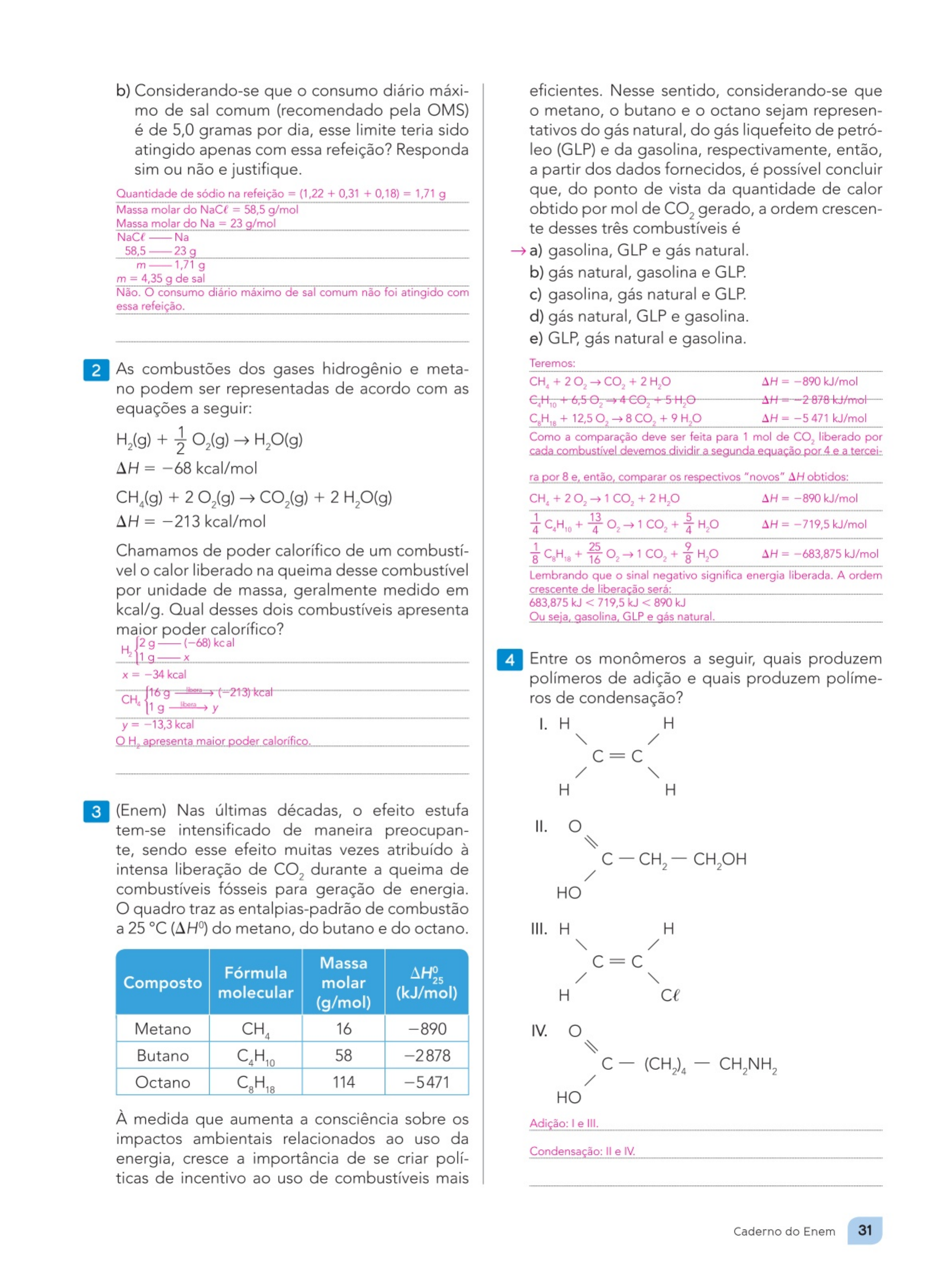 kca l/g. Oual desses dois combust íveis apresenta