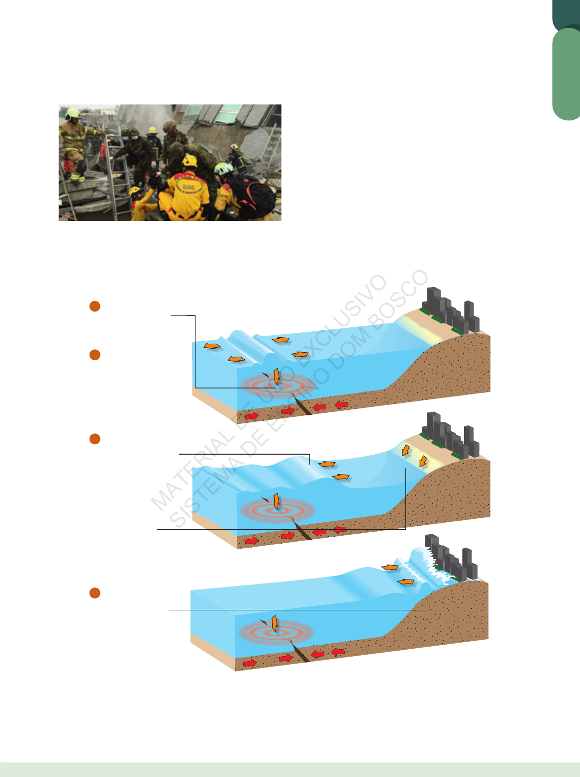 G EO G RA FI A 339 A intensidade dos abalos sísmicos depende de vários fa- tores, desde os tipos de rochas que compõem a área afetada até a distância entre o hipocentro e o epicentro. O resultado pode ser catastrófico, provocando destruição de cidades e perda de vidas humanas. EY EP RE SS N EW S/ EY EP RE SS /A FP Terremoto de magnitude 6,4 sacudiu o sul de Taiwan em fevereiro de 2016. Apesar do avanço tecnológico, a sociedade não consegue prever com precisão a ocorrência e a intensidade do terremoto. A previsão baseia-se em alguns prognósticos: mapear as áreas de ocorrências, bem como as áreas de falhas e fraturas; medir as variações elétricas do solo e a variação do nível da água em poços. D. Tsunami Em 11 de março de 2011, o litoral oriental japonês (Ilha Honshu) foi abalado por um terremoto de grandes propor- ções, gerando um descomunal tsunami, “onda de porto”. O fa- tor gerador foi uma falha na crosta terrestre, devido ao choque de duas placas tectônicas. Nesse tipo de ocorrência, após o choque, o assoalho marinho é movido, deslocando uma gran- de massa de água, que percorre, em alta velocidade, lugares profundos e longínquos da costa. Em seguida, a massa de água na costa sofre forte recuo. Ao aproximar-se da costa, as ondas são comprimidas pelo fundo marinho, elevando-se vá- rios metros acima de seu nível normal, o que provoca redução da velocidade, mas, em contrapartida, aumenta a altura da onda. Assim, com a chegada à costa, o tsunami submerge as áreas costeiras. Um abalo sísmico faz tremer o assoalho marinho� Tal fato lança à superfície um grande deslocamento de água� 1 2 Forma-se uma vibração que gera propagação a grande velocidade abaixo da superfície� A água é aspergida da margem� 3 Ao chegar à costa, ondas gigantes se formam� 4 11. Diversidade climática Pela análise da dinâmica climática, percebe-se a ocorrência de grande diversidade de climas, representada por tipos de climas e zonas climáticas, com destaque para o fator latitude, pelo qual surge a divisão em áreas macrotérmicas, mesotérmicas e microtérmicas. Essa diversidade impõe uma outra, a vegetal, que depende de vários fatores, como solo, relevo e, sobretudo, clima. Pelo mapa, pode-se constatar como é vasta a diversidade climática no planeta. 701360214 DB EM PV ENEM 91 AN LV 01 TE TEOR UN_MIOLO.indb 339 24/01/2019 09:08 MATERIA L D E U SO E XCLU SIV O SIS TEMA D E E NSIN O D OM B OSCO G EO G RA FI A 340 Equador Trópico de Capricórnio Trópico de Câncer Círculo Polar Antártico Círculo Polar Ártico Golfo do México Grandes Antilhas Mar de Weddel Mar das Antilhas Mar do Norte Mar Báltico Mar Cáspio Mar Negro Mar Mediterrâneo Mar Verm elho Mar da Ch in aMar Arábico Mar do Japão Mar de Bering Groenlândia OCEANO PACÍFICO OCEANO PACÍFICO OCEANO PACÍFICO OCEANO ATLÂNTICO OCEANO ATLÂNTICO OCEANO ÍNDICO Oceano Glacial Ártico Oceano Glacial Antártico Equatorial Tropical Subtropical Temperado Mediterrâneo Desértico (árido) Semiárido Frio Frio de montanha Polar 0 3 330 km N Clima mundial Disponível em: . Acesso em: 9 mar. 2018. Adaptado. 12. Brasil – divisão política, regionalização e fusos horários O Brasil possui 27 unidades federativas, sendo 26 estados e o Distrito Federal. O arquipélago de Fernando de Noronha é considerado Distrito Estadual de Pernambuco. A. Regiões administrativas – macrorregiões Equador Trópico de Capricórnio DF RS RR PA MT GO MS SP MG AC RO TO MA CE RN PE PB AL SE BA ES SC PR RJ AP AM NORTE NORDESTE SUDESTE SUL PI CENTRO-OESTE OCEANO ATLÂNTICO OCEANO ATLÂNTICO OCEANO PACÍFICO Região administrativa O critério da regionalização é principalmente de ordem natural, considerando ainda aspectos socioeconômicos� Esta divisão, que respeita os limites estaduais, corresponde à divisão oficial do território brasileiro (IBGE), e é utilizada para fins estatísticos e didáticos� IBGE, 1998� 0 426 km N B. geoeconômicas ou grandes complexos regionais Equador Trópico de Capricórnio DF AM RS RR PA MT GO MS SP MG AC RO TO PI CE BA SC PR AP NORDESTE MA CENTRO-SUL AMAZÔNIA RN PB PE AL SE ES RJ OCEANO ATLÂNTICO OCEANO ATLÂNTICO OCEANO PACÍFICO Região geoeconômica O critério da regionalização é basicamente socioeconômico e não considera os limites estaduais� Cada complexo regional tem características importantes em comum que ultrapassam as divisões político-administrativas dos estados� IBGE, 2002� 0 426 km N C. Quatro brasis Essa divisão regional foi elaborada pelo professor Milton Santos. A região concentrada abrange as regiões Sudeste e Sul. 701360214 DB EM PV ENEM 91 AN LV 01 TE TEOR UN_MIOLO.indb 340 24/01/2019 09:08 MATERIA L D E U SO E XCLU SIV O SIS TEMA D E E NSIN O D OM B OSCO G EO G RA FI A 341 Equador Trópico de Capricórnio DF AM RS RR PA GO MS AC RO TO MA PI CE RN PB PE AL SE ES SC PR RJ AP REGIÃO AMAZÔNICA REGIÃO NORDESTE REGIÃO CONCENTRADA SP MG BA MT REGIÃO CENTRO-OESTE OCEANO ATLÂNTICO OCEANO ATLÂNTICO OCEANO PACÍFICO Região (meio técnico-científico-informacional) O critério da regionalização é baseado na difusão diferencial do meio técnico-científico-informacional e nas heranças do passado� Considera a robotização das indústrias; a tecnologia usada no setor agropecuário; a localização dos centros de decisões políticas, de sedes financeiras e de outras instituições que se vinculam ao mercado e à política global; e a existência de instituições voltadas para pesquisas aplicadas aos setores produtivos� Milton Santos, 2001� 0 426 km N D. Fusos horários Em 10 de novembro de 2013, foi restabelecido o quar- to fuso horário para o Acre e a parte ocidental do estado do Amazonas, alterando a lei que havia estabelecido três fusos horários a partir de 24 de abril de 2008. A hora oficial brasileira, que corresponde ao fuso horário de Brasília, apresenta três horas a menos que o fuso do Meri- diano de Gree