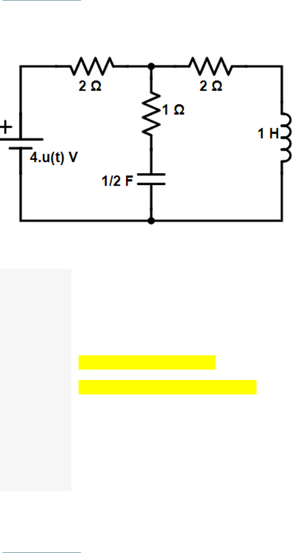Questão 1/10 - Circuitos Elétricos II Ler em voz alta Em análise de circuitos, Transformada de Laplace pode ser muito útil na resolução de circuitos. Considere o circuito da imagem, com condições iniciais nulas. Calcule a impedância total do circuito vista pela fonte, ou seja, Z(s). A Z(s)=s+2Z(s)=s+2 B Z(s)=s+2sZ(s)=s+2s C Z(s)=3s+4s+1Z(s)=3s+4s+1 Você assinalou essa alternativa (C) D Z(s)=s+2s+5Z(s)=s+2s+5 E Z(s)=10s+s²+3s+1Z(s)=10s+s²+3s+1 Questão 2/10 - Circuitos Elétricos II Ler em voz alta Para fazer diversas experiências no laboratório de eletrônica você utiliza tensão alternada de 12 V. Considere um transformador rebaixador ideal de 220/12 V, com Np = 3500 espiras e potência de 15 W. Calcule o número de espiras do secundário e a corrente do primário, respectivamente. javascript:void(0) javascript:void(0) A 191 espiras e 1 A B 1910 espiras e 68 A C 420 espiras e 0,0681 A D 42000 espiras e 68,1 mA E 191 espiras e 68,1 mA Você assinalou essa alternativa (E) Questão 3/10 - Circuitos Elétricos II Ler em voz alta Um filtro passa alta deixa passar frequencias superiores a frequência de corte. Sabendo disso projeto um filtro passa alta com fc=200Hz. Adote um capacitor de 0,2uF Você não pontuou essa questão A R=3978,87ΩR=3978,87Ω javascript:void(0) B R=190ΩR=190Ω C R=8KΩR=8KΩ Você assinalou essa alternativa (C) D R=10ΩR=10Ω E R=190000ΩR=190000Ω Questão 4/10 - Circuitos Elétricos II Ler em voz alta As companhias de distribuição de energia elétrica utilizam transformadores nas linhas de transmissão. Um determinado transformador é utilizado para baixar a diferença de potencial de 3 800 V (rede urbana) para 115 V (uso residencial). Nesse transformador: I. O número de espiras no primário é maior que no secundário; II. A corrente elétrica no primário é menor que no secundário; III. A diferença de potencial no secundário é contínua. Das afirmações acima: A Somente I é correta. B Somente II é correta. C Somente I e II são corretas. javascript:void(0) Você assinalou essa alternativa (C) D Somente I e III são corretas. E I, II e III são corretas. Questão 5/10 - Circuitos Elétricos II Ler em voz alta Empresas possuem alta carga instalada e fazem uso de motores, os quais possuem característica indutiva, por isso é comum que as potências ativa, reativa e aparente possuam um valor considerável. Avalie uma empresa com potência ativa de 100 kW e fator de potência de 0,7. Calcule o valor da potência reativa e aparente, respectivamente. A Q = 100 kVA e S = 150 kVAr B Q = 102 kVAr e S = 142,85 kVA Você assinalou essa alternativa (B) C Q = 120 VAr e S = 142,85 VA D Q = 200 kVAr e S = 85 kVA E Q = 140 kVAr e S = 102 kVA Questão 6/10 - Circuitos Elétricos II Ler em voz alta Defina Verdadeiro (V) ou Falso (F) para cada uma das afirmações a seguir. ( ) A potência ativa é a que realmente se transforma em trabalho; ( ) O fator de potência mede o quanto da potência aparente é realmente transformada em potência útil. Quanto menor for o fator de potência, melhor, pois uma maior parte da potência será realmente utilizada de forma útil. javascript:void(0) javascript:void(0) ( ) A potência reativa é medida em VA e é a potência total do circuito. ( ) A potência aparente pode ser calculada como P/FP (Onde P é a potência ativa e FP é o fator de potência) Assinale a alternativa correta: A V – F – F – F B V – F – F – V Você assinalou essa alternativa (B) C V – V – F – V D V – V – V – V E F – F – F – F Questão 7/10 - Circuitos Elétricos II Ler em voz alta Considerando uma carga com potência aparente de 50 kVA e fator de potência de 0,8 indutivo. Calcule quanta potência reativa capacitiva é necessária adicionar ao sistema a fim de que o fator de potência aumente para 0,95. A Qc = 3,2 kVAr B Qc = 8,6 kVAr C Qc = 16,8 kVAr Você assinalou essa alternativa (C) D Qc = 25,8 kVAr javascript:void(0) E Qc = 34,5 kVAr Questão 8/10 - Circuitos Elétricos II Ler em voz alta Considere uma empresa que consome 380 W com fator de potência de 0,6 indutivo e foi instalado uma carga adicional (banco de capacitores) de 300 VAr. Calcule o novo fator de potência da empresa. A FP = 0,522 B FP = 0,793 C FP = 0,878 Você assinalou essa alternativa (C) D FP = 0,929 E FP = 0,982 Questão 9/10 - Circuitos Elétricos II Ler em voz alta Considere o circuito apresentado com condições iniciais nulas: Calcule a impedância total do circuito vista pela fonte de tensão e assinale a alternativa que corresponde à resposta correta: A Z(s)=(s+1)(s+2)sZ(s)=(s+1)(s+2)s javascript:void(0) javascript:void(0) B Z(s)=s2+2s+1sZ(s)=s2+2s+1s C Z(s)=10s+5sZ(s)=10s+5s D Z(s)=5.(s+1)2sZ(s)=5.(s+1)2s Você assinalou essa alternativa (D) E Z(s)=(s+1)(s−2)sZ(s)=(s+1)(s−2)s Questão 10/10 - Circuitos Elétricos II Ler em voz alta Considere o circuito apresentado abaixo, sendo as condições iniciais de tensão no capacitor vC(0)=4,8VvC(0)=4,8V e corrente no indutor iL(0)=4,8AiL(0)=4,8A, Utilize Transformada de Laplace e assinale a alternativa que corresponde à tensão no capacitor. A v(t)=−e−t+(1+3t−t²2).e−2tVv(t)=−e−t+(1+3t−t²2).e−2tV B v(t)=24−19,2.e−2t−19,2.t.e−2tVv(t)=24−19,2.e−2t−19,2.t.e−2tV Você assinalou essa alternativa (B) C v(t)=42+20.e−5tVv(t)=42+20.e−5tV javascript:void(0) D v(t)=−e−t+50.e−2tVv(t)=−e−t+50.e−2tV E v(t)=35−26,5.t.e−2tVv(t)=35−26,5.t.e−2tV Questão 1/10 - Circuitos Elétricos II Ler em voz alta Transformadores são muito importantes tanto para sistemas eletrônicos quanto para o sistema elétrico de potência. Sobre os transformadores afirma-se que: ( ) Um transformador com 1000 espiras no primário e 500 espiras no secundário poderá reduzir a tensão de uma bateria de 12 V para 6 V; ( ) Um transformador elevador é aquele em que a tensão no secundário é maior que a tensão no primário, seja ela alternada ou contínua; ( ) Um transformado