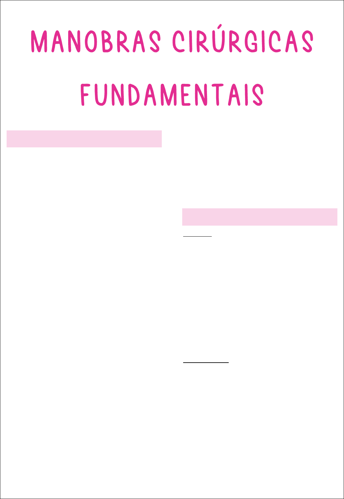 Cirurgia (2) Anamnese sugerida -Alergia a medicamentos ou anestésicos -Angina, infarto do miocárdio, endocardite, sopro ou outras condições cardíacas -Anticoagulante -Anticoncepcionais -Asma e outras doenças pulmonares -Cirurgias previas ou internações hospitalares -Diabetes -Distúrbios hematológicos -Doenças gastrintestinais -Doença renal -Doenças neurológicas -Doenças sexualmente transmissíveis -Gravidez ou amamentação -Hábitos (Tabagismo, alcoolismo, drogas ilícitas) -Hepatite -Hipertensão arterial -Medicamento de uso contínuo -Osteoporose, osteopenia e uso de medicações para essas condições -Próteses articulares -Tratamento odontológico prévio, incluindo anestesia local e extração Exames pré-operatórios Imagem -Periapical, panorâmica, oclusal e as técnicas de localização (Clark) -Tomografia: Tomografia de feixe cônico (Cone-beam) -Ressonância magnética nuclear: Tumores -Ultrassonografia, cintigrafia, arteriografia e sialografia Laboratoriais -Para cirurgias ambulatoriais extensas ou cirurgias em ambiente hospitalar, costuma-se solicitar hemograma, coagulograma completo, glicemia em jejum, ureia, creatina e urina 1 -Descartar alterações graves que possam interferir no tratamento proposto Necessidades básicas para cirurgia Principais Exigências -Visibilidade adequada (Luz, auxiliar com sugador, confeccionar um retalho) -Acesso apropriado (Abertura de boca, exposição cirúrgica adequada, retalho cirúrgicos) -iluminação suficiente -Campo cirúrgico livre de fluido (Sugador) Tempos fundamentais da cirurgia Diérese: -Dividir -Ato pelo qual o cirurgião separa, divide os tecidos, abrindo caminho para se chegar aos planos mais profundos, e atingir, por meio deste primeiro passo, o objetivo da cirurgia Tipos de diérese -Punção -Incisão Punção: Realizada por meio de agulhas ou trocartes. -Penetram nos tecidos separando-os sem seccioná-los. -Remover substâncias liquidas (Agulha) ou mais espessa (Trocarte) para fins diagnósticos Incisão: Ocorre o corte do tecido -Usar lâmina afiada de tamanho apropriado -Realizar uma incisão firme e continua -Não atingir estruturas vitais -Incisões com bisturi perpendicular à superfície (Segurar como se fosse uma caneta) -Incisar em gengiva inserida ou sulco gengival, sobre osso saudável (Nunca em tecido inflamado) Planejamento do retalho -Retalhos cirúrgicos são feitos para ganhar acesso cirúrgico a uma área ou para mover tecidos de uma região para outro -Prevenir as complicações de cirurgias a retalhos como necrose, decência e dilaceração Prevenção da necrose do retalho -Ápice (Ponta – cervical do dente) do retalho nunca deve ser mais largo do que a base, a menos que uma artéria principal esteja presente na base -Retalhos devem possuir lados que ocorram paralelos entre si ou, preferencialmente, que sejam convergentes da base para o ápice do retalho -A base do retalho deve ser aproximadamente o dobro da incisão de alívio (X = 2Y) -O objetivo da incisão relaxante é aliviar a tensão dos tecidos -Quando possível, o suprimento sanguíneo axial deve ser incluído na base do retalho -A base dos retalhos não deve ser excessivamente torcida, esticadas ou apertada com nada que possa danificar vasos *Incisão de alívio: Pular um dente a frente e realizar a incisão (Mais fácil de suturar) -Ex: Na exodontia de 3° molar, fazer a relaxante na mesial do 2° molar *Incisão de alívio + sulcular + retilínea = Retalho em L Prevenção da deiscência do retalho -Prevenida pela aproximação das bordas do retalho sobre osso saudável pela manipulação cuidadosa das bordas do retalho e ao não submeter o retalho à tensão -A deiscência expõe o osso subjacente, produz dor, perda óssea e fibrose excessiva *Deiscência: abertura dos pontos ou da cicatriz após a sutura Divulsão: Afastamento dos tecidos (Sem seccioná-los), por meio de tesouras ou pinças rombas -Instrumento penetrado, fechado, dentro do tecido a ser separado e logo após esta manobra é feita sua abertura proporcionando a “divulsão” e o afastamento dos tecidos -Descolamento dos tecidos do periósteo (Acontece simultaneamente a sindesmotomia) Sindesmotomia (Descolamento): Separação romba dos tecidos por meio de espaço anatômico virtual, usando-se instrumental como os desoladores, sindesmótomos -Descolamento das fibras do periósteo (Acontece simultaneamente a divulsão) Curetagem: Pode ser uma diérese ou exérese -Após a extração de um dente, é necessário irrigar com soro fisiológico o alvéolo para remover impurezas e com cureta de Lucas, devemos raspar as paredes do alvéolo para estimular a formação de coágulo -Feita com instrumentos em forma de colher (cureta), os quais apresentam bordas cortantes e tem como objetivo raspar a superfície de um tecido (Pode ser usado para estimular a formação de um coágulo, raspado as paredes do alvéolo) -Na curetagem na parede óssea para formar coágulo é um exemplo de diérese -Quando usa a cureta para remover uma lesão é um exemplo de exérese Dilatação: Aumentar o calibre de vias naturais -Exemplo: Luxação → Exodontia / Cateteres → Ducto salivar *Os tipos de diérese citados anteriormente são do tipo mecânico *Alguns tipos de diérese térmica, como o emprego do calor com o uso do bisturi elétrico, em que a fonte de calor é a eletricidade pode ser citada, por exemplo, crioterapia, diérese com raio laser Exérese Osteomia: Desgaste ósseo -Geralmente com brocas Ostectomia: Remoção de fragmento ósseo -Pinça queiva Avulsão: Remoção do dente de dentro do osso -Via alveolar e não alveolar Curetagem: Retirar lesões Hemostasia -A prevenção de perda excessiva de sangue durante a cirurgia é importante para preservar a capacidade do paciente de transportar oxigênio Compressão: Pedir para o paciente morder a gaze (Melhor forma) -Período de no mínimo 10 minutos Pinçagem: Enxerga o vaso no alvéolo e pinçar -Utilizando-se pinças he
