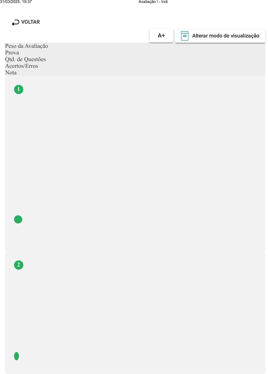 Prova Impressa GABARITO | Avaliação I - Individual (Cod.:1027202) Peso da Avaliação 2,00 Prova 95446189 Qtd. de Questões 10 Acertos/Erros 10/0 Nota 10,00 É comum as pessoas perguntarem o que torna uma pessoa um filósofo, ou se qualquer pessoa pode pensar como filósofo. Existem alguns procedimentos que caracterizam as pessoas que pensam filosoficamente e isso não está restrito a um grupo especial de indivíduos iluminados que foram predestinados para tal empreitada. Sobre o que caracteriza um filósofo, classifique V para as sentenças verdadeiras e F para as falsas: ( ) Uma pessoa pode se tornar um filósofo se estiver disposta a abrir sua mente quanto às suas crenças básicas e colocá-las sob questionamento. ( ) Quando a pessoa se esforça na busca pelas respostas às suas indagações e é capaz de questionar as respostas que lhe são fornecidas, tanto pelo senso comum quanto pelo conhecimento científico. ( ) Pensar de maneira filosófica requer um profundo conhecimento dos métodos científicos desenvolvidos pelos grandes pensadores, pois sem um método rígido de pensamento não há filosofia. Assinale a alternativa que apresenta a sequência CORRETA: A F - V - V. B F - V - F. C V - V - F. D V - F - F. A epistemologia busca responder a questões relacionadas à natureza e à possibilidade do conhecimento. Dentre essas, deparamo-nos com o que seria necessário para justificar as nossas crenças. No sentido de discutir e elucidar o que de fato seria necessário para justificar nossas crenças, surgem duas linhas de interpretação: o externalismo e o internalismo epistemológico. Com relação ao que é defendido pelos externalistas, assinale a alternativa CORRETA: A Para a corrente externalista, o conhecimento é muito difícil de ser adquirido. B Na visão dos externalistas, crianças muito pequenas e alguns animais intelectualmente sofisticados não podem ter conhecimento. C No externalismo, defende-se a tese de que o conhecimento só pode ser adquirido por agentes com um grau avançado de maturidade intelectual. D Para o externalismo, uma crença pode ser verdadeira independentemente de o agente ter ou não consciência do processo ou razões que contribuíram para a justificação. VOLTAR A+ Alterar modo de visualização 1 2 31/03/2025, 19:37 Avaliação I - Individual about:blank 1/5 Nas abordagens fisicalistas, a mente é igual ao corpo, portanto todas as experiências podem ser reduzidas a um processo físico. Nesse sentido, várias teorias fisicalistas afirmando que é possível construir uma explicação da consciência. Sobre as teorias de representação de ordem superior (HOR), assinale a alternativa CORRETA: A Sem o pensamento adicional sobre a experiência, esta seria consciente e, portanto, com sensação fenomenal. B A percepção é o elemento adicional perpetrado por esta teoria, pois a experiência se dá apenas a partir da percepção espiritual. C A representação é um elemento de ordem inferior na escala de valoração das experiências fenomênicas. D Nas teorias de representação de ordem superior, é introduzido um elemento além do fenômeno, pois a experiência deve ser acompanhada de um pensamento adicional. Quando falamos em existência, somos remetidos a pensar logo na presença de alguma coisa no espaço-tempo. No entanto, encontramos dificuldades com este conceito quando temos que lidar com os objetos não existentes e os meio existentes. Partindo deste pressuposto, analise as sentenças a seguir: I- Na categoria dos objetos meio existentes, podemos enquadrar as sombras e os reflexos. II- Na categoria dos objetos não existentes estão aqueles que não podem ser pronunciados e nada representam. III- Os objetos não existentes não podem representar qualquer coisa do mundo físico. IV- Objetos meio existentes são aqueles que estão entre o mundo físico e o espiritual. Assinale a alternativa CORRETA: A As sentenças I, III e IV estão corretas. B Somente a sentença II está correta. C Somente a sentença I está correta. D As sentenças II e IV estão corretas. O problema mente-corpo é muito antigo no debate filosófico. Em decorrência desse problema, surgiram diferentes posições e visões com relação à maneira como se entende esta relação. Dentre essas visões, podemos destacar o dualismo substancial, e que ainda hoje existem alguns filósofos que compactuam com esta visão. Sobre o dualismo substancial, analise as sentenças a seguir: I- De acordo com o dualismo substancial nós somos constituídos de duas substâncias distintas: a mente e a matéria. II- O dualismo substancial defende a teoria de que os seres humanos são compostos apenas pelo corpo e pela matéria. III- Segundo os defensores do dualismo substancial, tanto a alma quanto o corpo são substâncias materiais, pois o corpo é matéria visível, enquanto que a alma é a matéria invisível. IV- O dualismo substancial também é conhecido como dualismo lockeano devido aos argumentos de John Locke em favor do dualismo ideal. 3 4 5 31/03/2025, 19:37 Avaliação I - Individual about:blank 2/5 Assinale a alternativa CORRETA: A As sentenças II e III estão corretas. B As sentenças I, III e IV estão corretas. C As sentenças I, II e IV estão corretas. D Somente a sentença I está correta. A questão da verdade sempre foi um problema filosófico que despertou interesse por parte de importantes pensadores. Nesse sentido, foram formuladas diferentes teorias na tentativa de dar respostas ao problema da verdade. Dentre as teorias de verdade, podemos destacar as teorias correspondentistas que são as mais aceitas devido ao seu caráter intuitivo. Sobre as teorias correspondentistas, analise as sentenças a seguir: I- Um tipo de locução de correspondência é quando afirmamos que A é falso, se e somente se, A corresponde a um fato. II- Uma afirmação é verdadeira quando designa coisas existentes e não existentes, pois não deve necessariamente corresponder a fatos