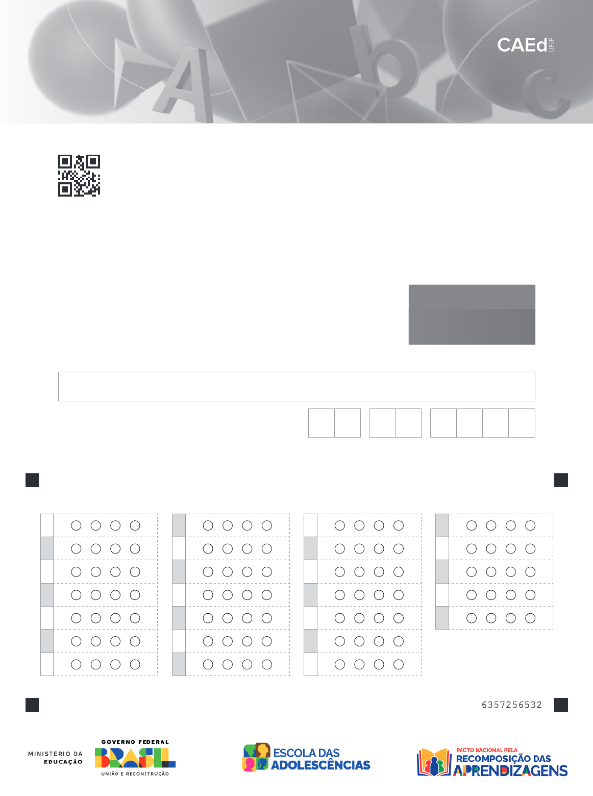 C A D E R N O Data de Nascimento do(a) estudante Nome do(a) estudante P 0 6 0 7 AVALIAÇÃO CONTÍNUA DA APRENDIZAGEM NOS ANOS FINAIS CICLO I 2025 1849P0607 6º ano do Ensino Fundamental LÍNGUA PORTUGUESA 6357256532 01 02 03 04 05 06 07 08 09 10 11 12 13 14 15 16 17 18 19 20 21 22 23 24 25 26 A B C D A B C D A B C D A B C D BL03P06 Leia o texto abaixo. Como bichos de estimação ajudam alunos a passar nas provas da Universidade de Cambridge Os bichinhos ajudam os estudantes na época das provas – passar um tempo com os animais ajuda a diminuir o estresse trazido pelos exames e melhora o desempenho nas avaliações. No projeto, funcionários de diversas faculdades da universidade adotaram animais para que eles fiquem em contato com os estudantes. Alunos podem tomar um chá com Jasper, o gato malhado, ou levar os cachorros para passear. A universidade diz que os animais demonstram ficar felizes ao ajudar alunos estressados ou com saudade de seus próprios bichinhos de estimação – já que os estudantes da universidade costumam morar no próprio campus. A iniciativa tem funcionado, mesmo que os bichos às vezes demonstrem alguma teimosia – como provou a cachorra Twiglet, que deu uma voltinha com seu “paciente” e depois se recusou a se mexer, provando que o trabalho de ser um “cão relaxante” não era pra ela. O gato Jasper [...] mora na biblioteca da faculdade de economia há anos. Ele é o “anfitrião” do evento “Chá com Jasper”, que às vezes atrai mais de 100 pessoas. Já a faculdade Lucy Cavendish adotou quatro porquinhos-da-índia, que também são um sucesso entre os alunos. Eles podem brincar com os bichinhos no jardim. “É muito bom cuidar deles, eles nos distraem das provas”, diz a estudante Laura McClintock. O cocker spaniel inglês Jack também faz parte da equipe de “funcionários” animais, e sua agenda de passeios está sempre cheia. A aluna Nina Jeffs diz que levá-lo para passear foi “como voltar para casa” e a ajudou a relaxar. COMO bichos de estimação ajudam alunos a passar nas provas da Universidade de Cambridge. BBCNews, 2018. Disponível em: https://meulink.fit/pqYrHmUcNjKIfzu. Acesso em: 16 jan. 2024. Fragmento. (P00047321_SUP) 01) (P00047323) O assunto desse texto é A) o cão Jack e a equipe de funcionários animais. B) o famoso e atrativo chá do gato Jasper. C) os animais que ajudam a diminuir o estresse dos alunos. D) os cachorros que gostam de passear pelas ruas. 02) (P00047321) De acordo com esse texto, a cachorra Twiglet A) demonstrou teimosia ao dar uma volta com um paciente. B) está com a agenda de passeios sempre cheia. C) mora na biblioteca da faculdade de economia há anos. D) recebe as pessoas em um evento de chá. 03) (P00047324) Nesse texto, no trecho “... ajuda a diminuir o estresse trazido pelos exames e melhora o desempenho nas avaliações.” (1º parágrafo), a palavra destacada foi usada para indicar A) adição. B) conclusão. C) explicação. D) oposição. P0607 1 BL03P06 Leia novamente o texto “Como bichos de estimação...” para responder à questão abaixo. 04) (P00047322) Esse texto é A) um artigo científico. B) um miniconto. C) uma peça teatral. D) uma reportagem. Leia o texto abaixo. Disponível em: https://meulink.fit/eqOdTgSIsNGVtUQ. Acesso em: 11 jan. 2024. (P00047308_SUP) 05) (P00047308) Qual a crítica feita nesse texto? A) Cães devem ser adotados independente da sua raça. B) Cães devem ser vacinados para ter um lar. C) Cães precisam ser enviados para centros de zoonoses. D) Cães precisam ser mantidos em casa. P0607 2 BL01P06 Leia o texto abaixo. Bebê que estava chorando se acalma instantaneamente quando colocado junto de cão golden retriever Um vídeo que mostra a amizade entre um bebê de seis semanas e um cão da raça golden retriever viralizou na internet e emocionou milhares de pessoas. O vídeo foi gravado pelos pais do bebê, Conner e Carly Mount, que moram na Geórgia, nos Estados Unidos. É possível ver que o bebê, chamado James, se acalma quando está ao lado do seu melhor amigo peludo, que se chama Moe. O cão parece não se importar com o peso do bebê, deixando-o deitar em sua barriga, enquanto aproveita o momento com a família reunida. Em um dado momento, o pai de James tenta pegar o filho no colo, mas o bebê começa a chorar assim que percebe que não está mais com o cão. O pai então o coloca de volta ao lado de Moe, e o bebê se tranquiliza na hora. Carly Mount, a mãe de James, surpresa com a reação do filho e do cão, estava ansiosa para ver essa amizade se fortalecer ao longo dos anos. MENEZES, Beatriz. Bebê que estava chorando [...]. Amomeupet, 2024. Disponível em: https://meulink.fit/EUydPTfkjAKIYkw. Acesso em: 11 jan. 2024. Fragmento. (P00047303_SUP) 06) (P00047304) O assunto desse texto é A) o bebê que se acalma na presença do cão. B) o casal morador de uma cidade do exterior. C) os animais que brincam dentro de casa. D) os internautas que se emocionaram na internet. 07) (P00047305) Nesse texto, no trecho “… tenta pegar o filho no colo,...” (5º parágrafo), a expressão destacada significa A) alcançar. B) buscar. C) entregar. D) segurar. 08) (P00047306) Nesse texto, no trecho “... viralizou na internet e emocionou milhares de pessoas.” (1º parágrafo), a palavra destacada foi usada para indicar A) adição. B) conclusão. C) explicação. D) oposição. 09) (P00047307) Entende-se desse texto que o cão gosta de A) carregar coisas pesadas. B) estar perto de crianças. C) ficar deitado por muito tempo. D) ganhar surpresas dos adultos. 10) (P00047314) O objetivo desse texto é A) dar uma instrução. B) divertir o leitor. C) fazer uma reclamação. D) informar o leitor. P0607 3 BL02P06 Leia o texto abaixo. A Traça escritora Naquela noite, tudo parecia normal, mas, de repente... um livro deu um grito, desequilibrou-se na prateleira, caiu em cima de mais três, e vieram todos ao chão, fazendo um barulhão. [...] Depois que passou 