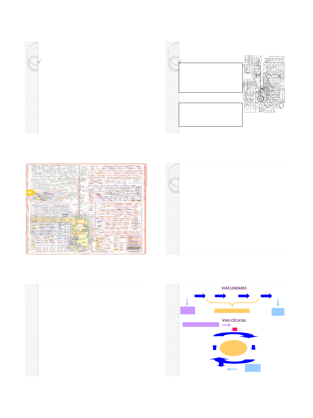 02/03/2022 1 INTRODUÇÃO AO METABOLISMO CELULAR BIOQUÍMICA METABÓLICA E CLÍNICA 3º PERÍODO Prof.ª Me. JANAÍNA LOPES CÂMARA Introdução ao Metabolismo Metabolismo – é o conjunto das reações bioquímicas que ocorrem em um organismo Metabolismo energético parte do metabolismo que diz respeito ao armazenamento e utilização de energia Metabolismo de lipídios diz respeito a síntese e degradação de lipídios Metabolismo de glicídios diz respeito a síntese e degradação açúcares A unidade do metabolismo é a via metabólica: ✓Cada via metabólica tem uma função Para que serve na célula? ✓Cada via metabólica tem sua regulação Como é ligada e desligada? ✓Cada via metabólica tem suas conexões Com que outras vias se conecta? Mapa metabólico v v Tipos de metabolismo Energético: fornece e armazena energia. ✓ Glicose (participa da respiração celular) produzindo energia na forma de ATP. ✓ Lipídios e carboidratos também participam do metabolismo energético. Plástico ou de Construção ✓ Relacionado à formação de novas células gerando crescimento ou renovação de tecidos. ✓ As proteínas e os lipídios atuam nesse metabolismo (membranas celulares são lipoprotéicas). Metabolismo de controle. ✓ O DNA controla todas as atividades celulares e também produz o RNA, o qual produz as proteínas, como as enzimas, que aceleram as reações do metabolismo. Conjunto altamente organizado e complexo de reações bioquímicas, catalisadas e reguladas por enzimas. Estas reações se organizam em sequências enzimáticas denominadas VIAS METABÓLICAS. O metabolismo celular, apesar de ser muito complexo, possui vias metabólicas centrais. Metabolismo Celular Ti p o s d e V ia s M et ab ó lic a s S B C D P Substrato Inicial Intermediários Metabólicos Produto Final B S C D P E Substrato Inicial Intermediários Metabólicos Produto Final 1 2 3 4 5 6 02/03/2022 2 Algumas vias metabólicas centrais: ❖ Glicólise - oxidação da glicose para obter ATP; ❖ Ciclo de Krebs - oxidação do acetil-CoA para obter energia; ❖ Fosforilação oxidativa - síntese de ATP a partir da energia liberada pelo transporte de elétrons na cadeia respiratória; ❖ Via das pentoses-fosfato - síntese de pentoses e obtenção de poder redutor para reações anabólicas. ❖ Ciclo da uréia - eliminação de NH4 + sob formas menos tóxicas; ❖ -oxidação dos ácidos graxos - transformação de ácidos graxos em acetil-CoA, para utilização no ciclo de Krebs; ❖ Gliconeogênese - síntese de glicose a partir de moléculas mais pequenas, para utilização no cérebro. Vias Metabólicas Organização em vias metabólicas As vias consistem numa sequência de passos catalisados por enzimas; Enzimas podem encontra-se separadas ou formar complexos multienzimáticos ou formar sistemas associados a membranas. Enzimas Separadas Complexo multienzimático Sistema ligado à membrana As vias metabólicas são reguladas em 3 níveis: 1- Controle alostérico reversível: Ex: A primeira reação de muitas vias de biossíntese sofre inibição alostérica pelo último produto da via; 2- Regulação hormonal: coordenam as relações metabólicas entre tecidos diferentes; 3- Controle da velocidade de uma dada reação enzimática pela regulação da concentração celular da enzima responsável pela mesma: Em qualquer tempo, a concentração de uma enzima é o resultado de um equilíbrio entre a sua velocidade de síntese e sua velocidade de degradação. Regulação do Metabolismo S C D R Enzima 3 Enzima 2 Enzima 1 Enzima 6 Enzima 5 D Q Enzima 4 Síntese e degradação de uma molécula não pode ocorrer simultaneamente numa mesma célula ou tecido; Para que as rotas sejam controladas devem utilizar enzimas distintas e compartimentos celulares diferentes. Outra rota metabólica Compartimento A Compartimento B PP Regulação do Metabolismo ➢Rotas oxidativas de substratos energéticos; ➢Rotas de armazenamento e mobilização de substratos energéticos; ➢Rotas biossintéticas; ➢Rotas de detoxificação e excreção de resíduos. Rotas Metabólicas Termodinâmica Energia (Calor) Trabalho (movimento) Máquina à vapor Leis: 1ª Lei: Princípio da conservação da energia: A energia não pode ser criada nem destruída. Pode somente mudar a forma ou o local em que ela se apresenta 2ª Lei: Princípio da “desordem crescente” Nos processos espontâneos há uma tendência a aumentar o grau de desordem. o universo sempre tende para a desordem crescente: em todos os processos, naturais a entropia do universo aumenta. “Termodinâmica é o conjunto de princípios que regem as transformações de energia” 7 8 9 10 11 12 02/03/2022 3 Anabolismo e catabolismo A energia utilizada pelo o ser humano para manter suas atividades celulares, provém da modificação das moléculas celulares. Esse processo nos chamamos de metabolismo. Reações de síntese: São aquelas onde partículas simples são unidas, para forma compostos mais complexos. As reações onde as moléculas de aminoácidos se unem para forma as proteínas é uma reação de anabolismo. Reações de degradação: São aquelas que partículas mas complexas são quebradas e transformada em compostos simples. As reações de degradação que ocorre na molécula de glicogênio para forma a glicose é uma reação catabólica. Metabolismo Celular Catabolismo Anabolismo Energia Energia Reações endergônicas e exergônicas ➢ A reação química é mudança em que um ou mais compostos químicos, os reagentes, formam novos tipos de compostos, os produtos. ➢ Reações endergônicas: São aquelas que a quantidade de energia presente nas ligações químicas do produto, são maiores que as do reagente. ➢ Reações exergônicas: São aquelas que a quantidade de energia presentes nas ligações químicas dos reagente é maior do que as do produto . Mas seria muito complicado pra célula se ela usasse diretamente essas fontes para conseguir