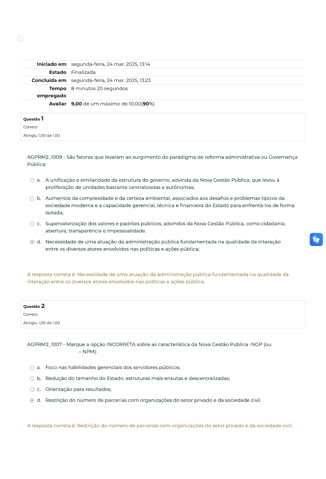 ✓ New Public Management ✓ Atividade Avaliativa 02: Revisão da tentativa | EGPCE https://curso.egp.ce.gov.br/mod/quiz/review.php?atte... 1 of 5 3/24/25, 13:23 ✓ rent seeking × Atividade Avaliativa 02: Revisão da tentativa | EGPCE https://curso.egp.ce.gov.br/mod/quiz/review.php?atte... 2 of 5 3/24/25, 13:23 ✓ ✓ Atividade Avaliativa 02: Revisão da tentativa | EGPCE https://curso.egp.ce.gov.br/mod/quiz/review.php?atte... 3 of 5 3/24/25, 13:23 ✓ ✓ Atividade Avaliativa 02: Revisão da tentativa | EGPCE https://curso.egp.ce.gov.br/mod/quiz/review.php?atte... 4 of 5 3/24/25, 13:23 ✓ ✓ Atividade Avaliativa 02: Revisão da tentativa | EGPCE https://curso.egp.ce.gov.br/mod/quiz/review.php?atte... 5 of 5 3/24/25, 13:23